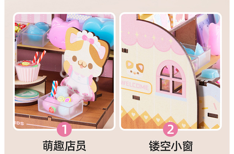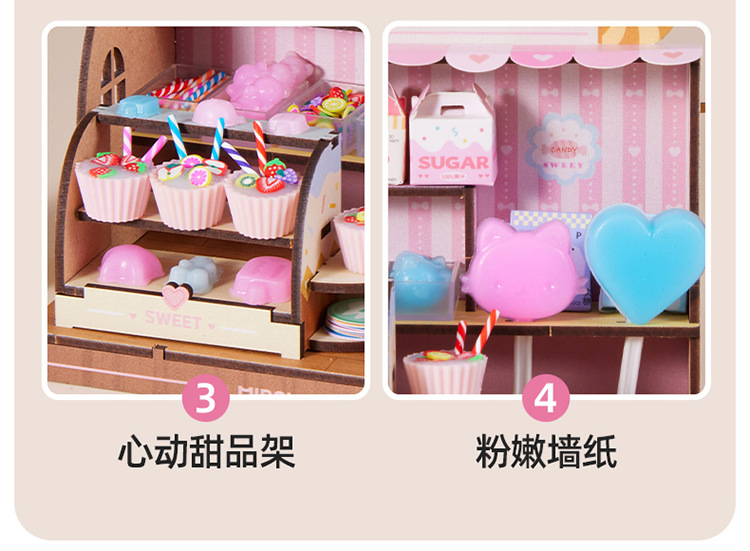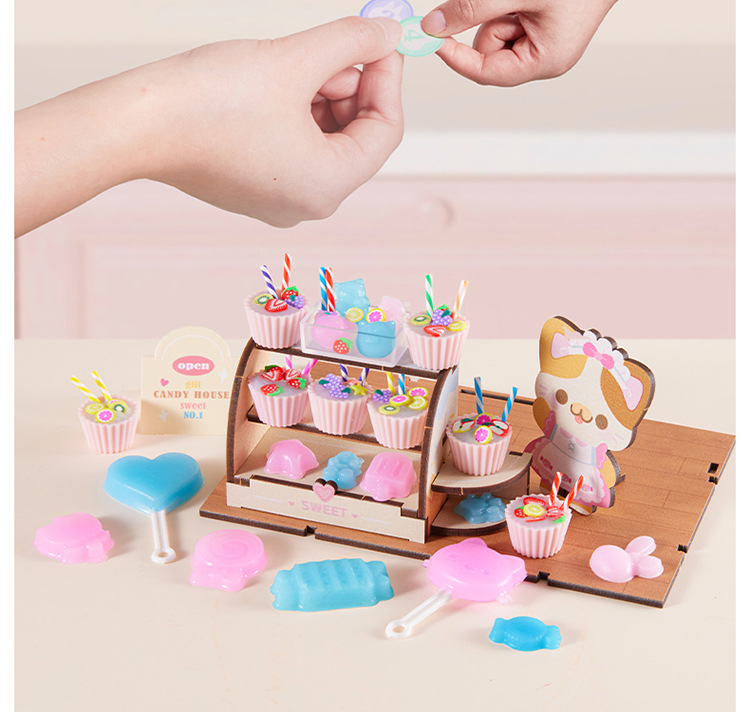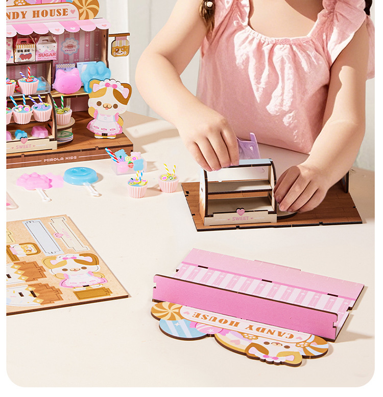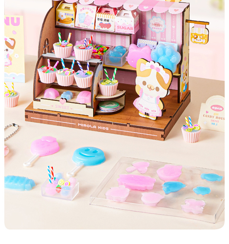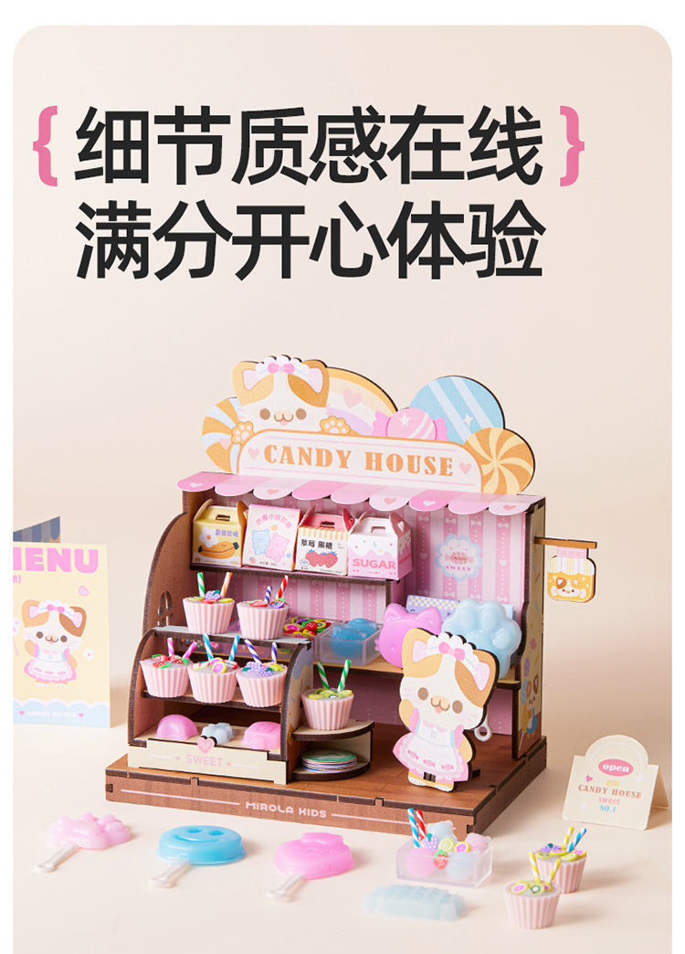 Meile 어린 시절 핀치 캔디 하우스 어린이 수제 DIY 캐빈 미니 간이 주방 소년 소녀 놀이 집 장난감스토어 가기