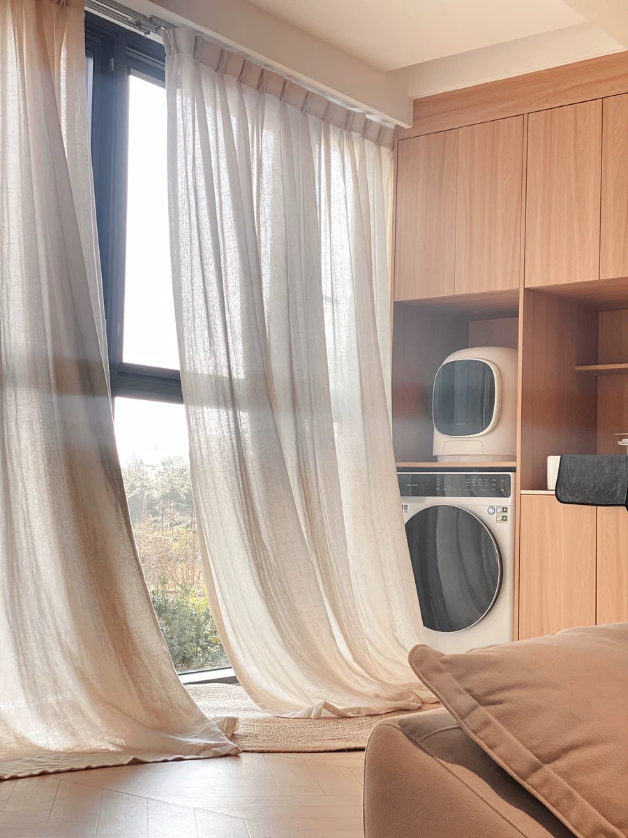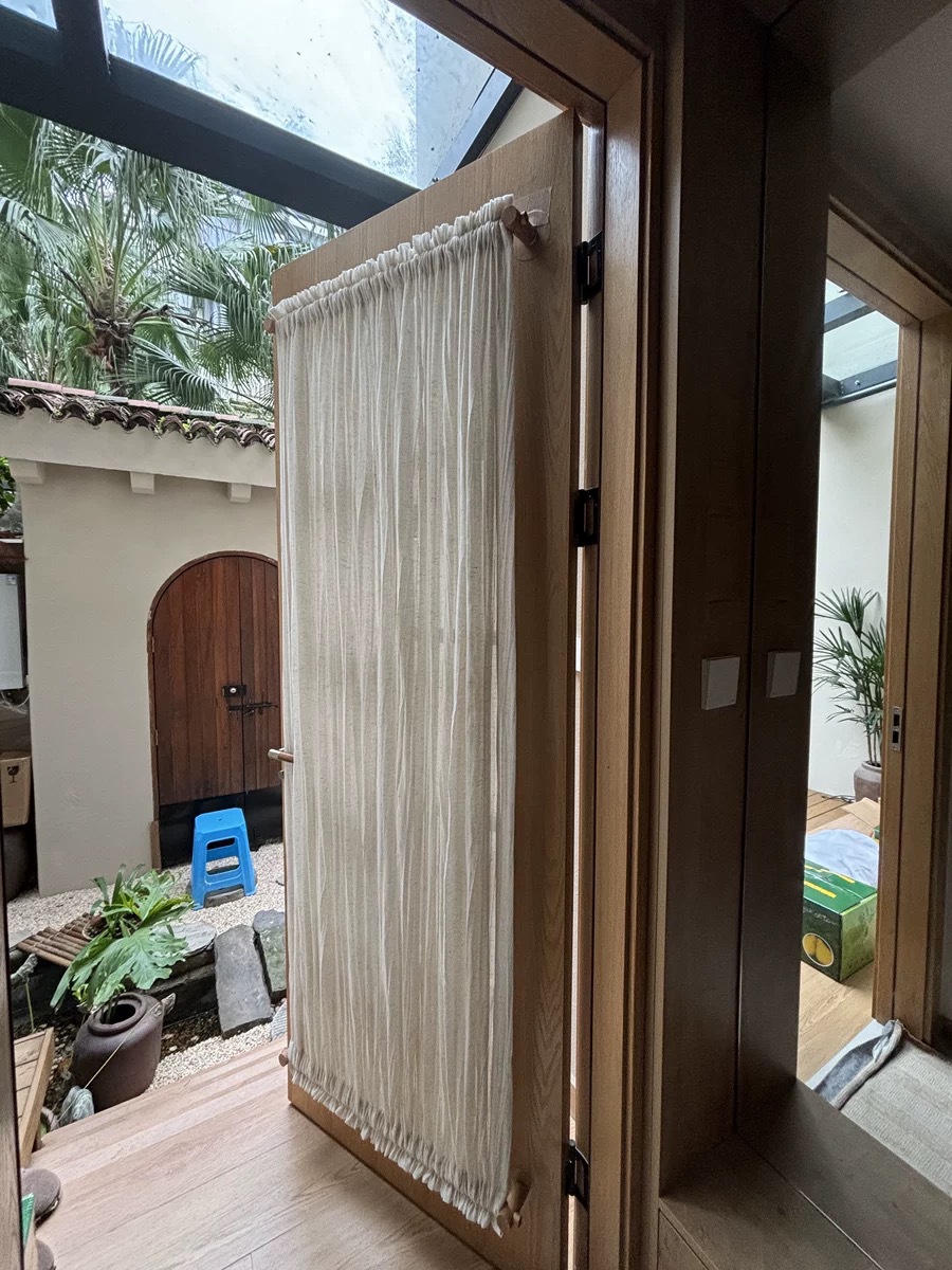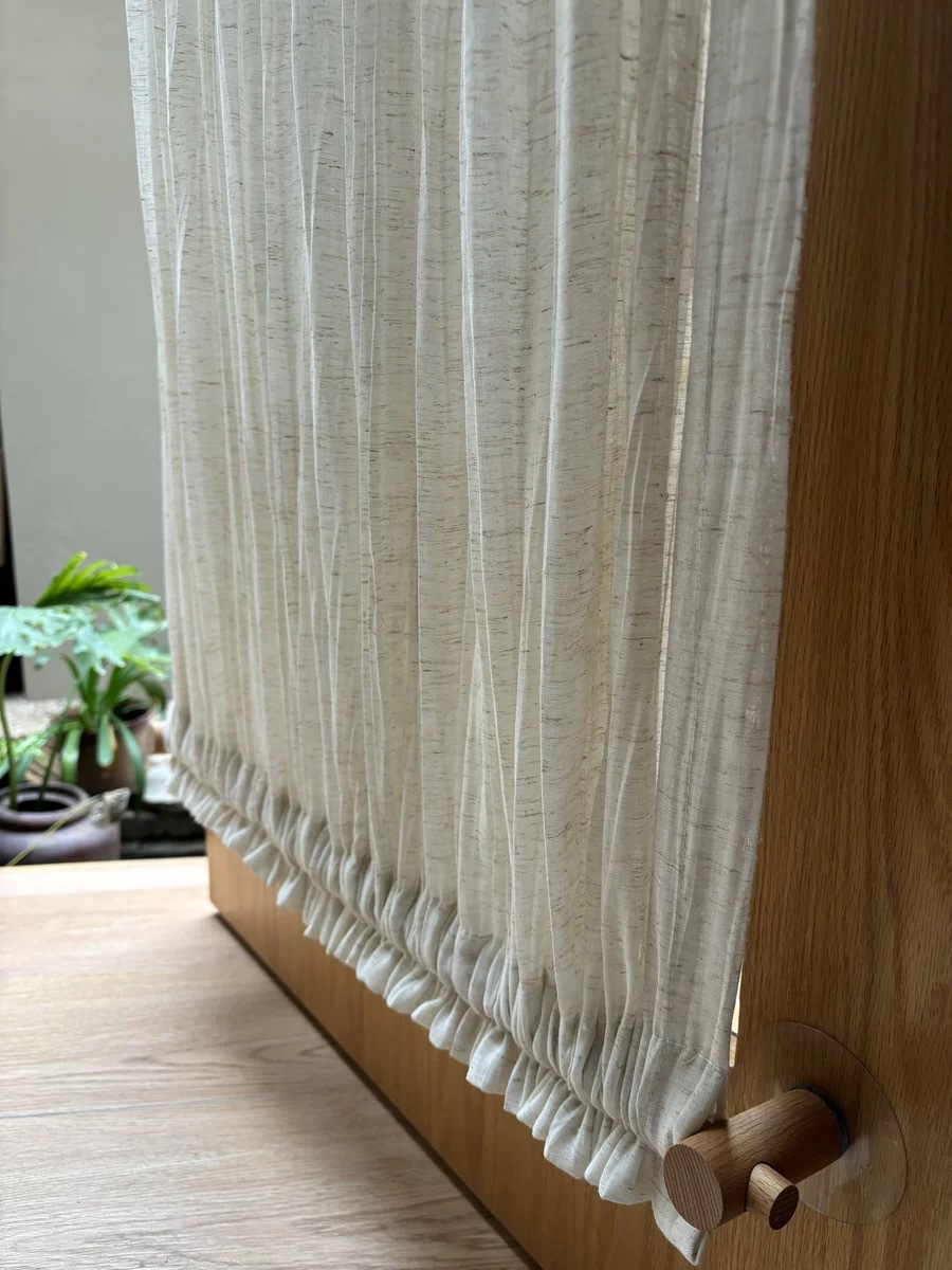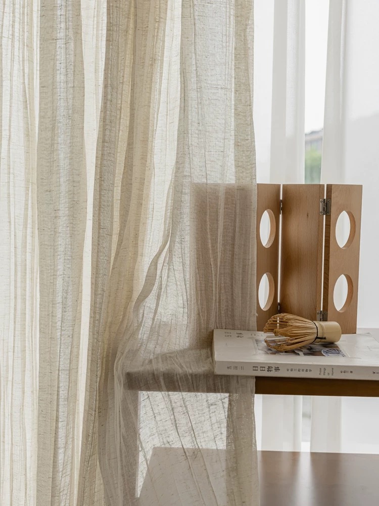 일본식 새로운 중국식 면 및 린넨 스타일 주름진 창 스크린 복고풍 거실 침실 찻집 반투명 중세 통나무 거즈 커튼