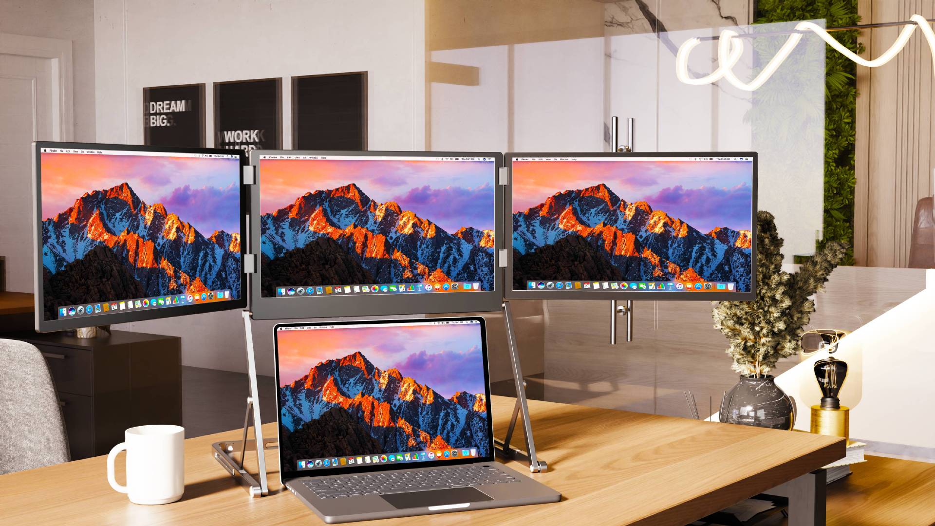 TriCreate15.6 3화면 휴대용 모니터, 노트북과 원라인 연결, 보조 사무용 LCD 화면, 고화질