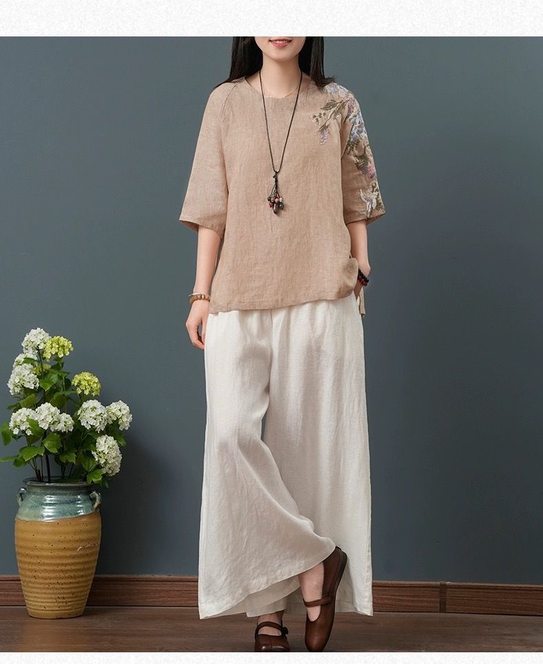 • 그레이 탑 + 대마 와이드 팬츠