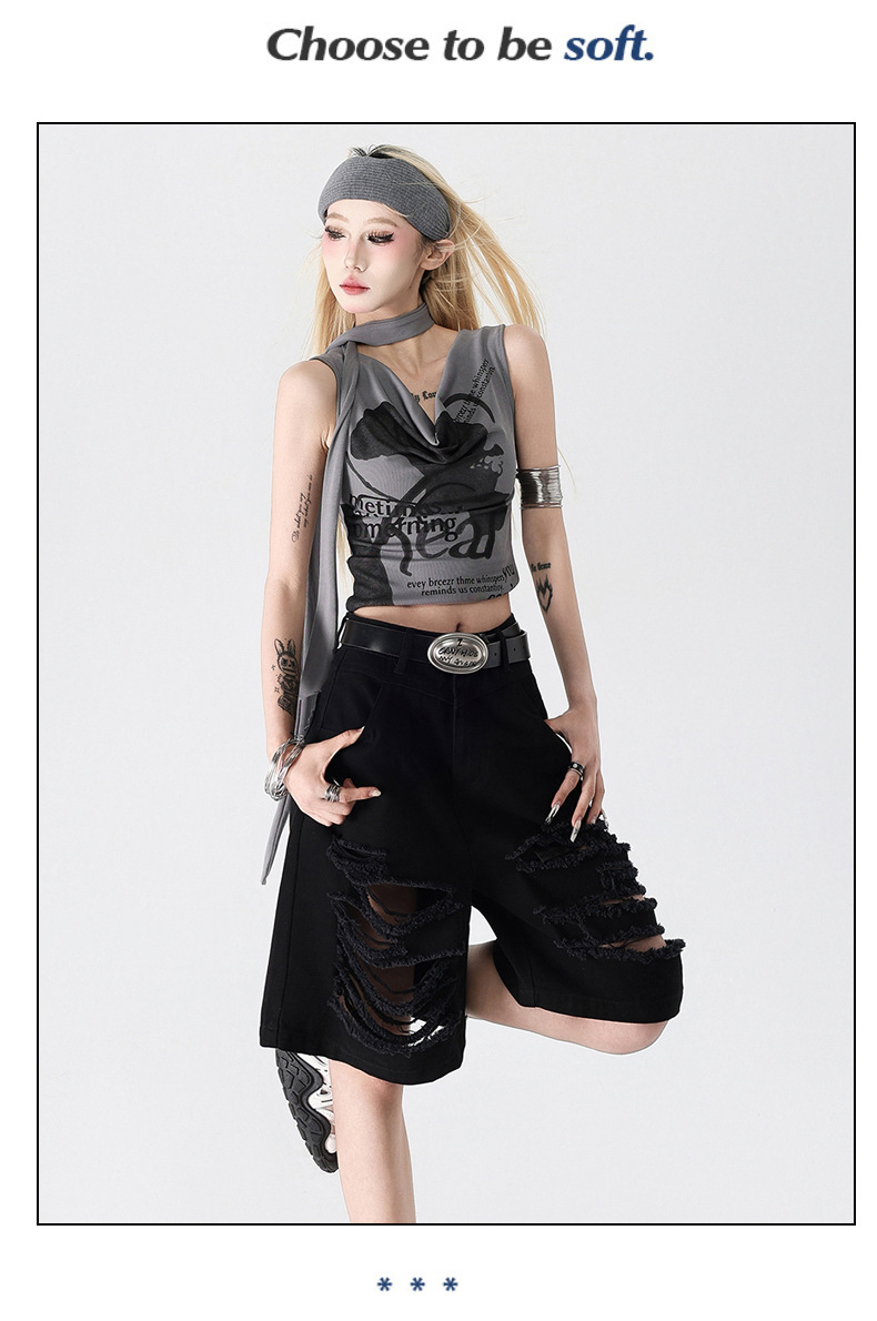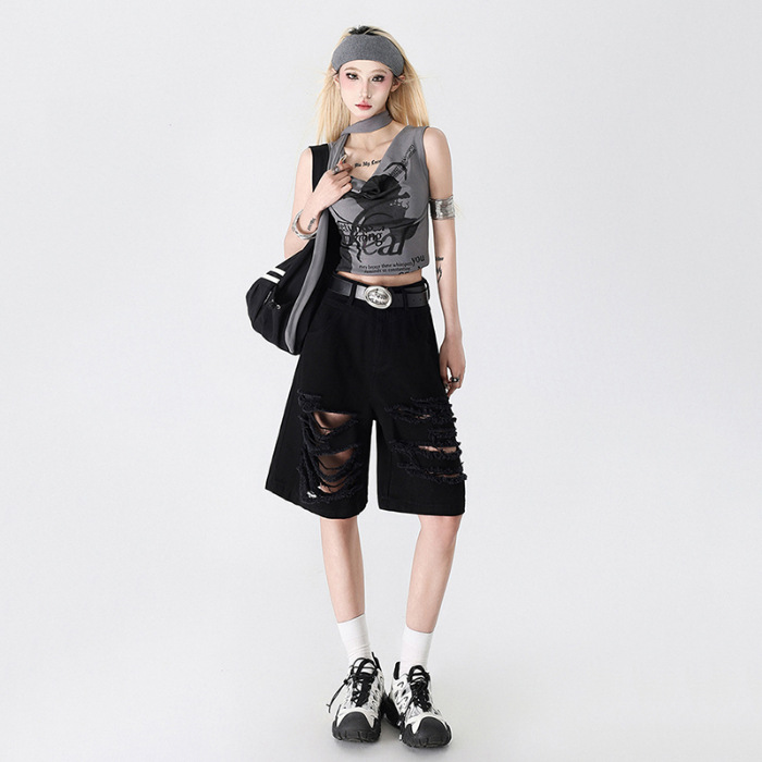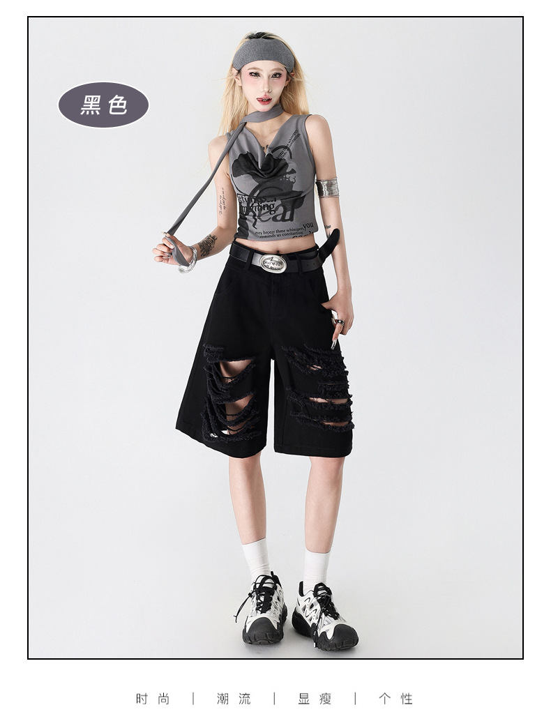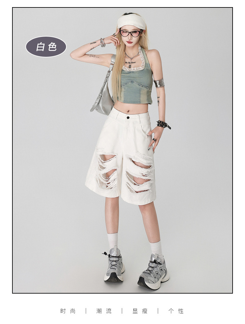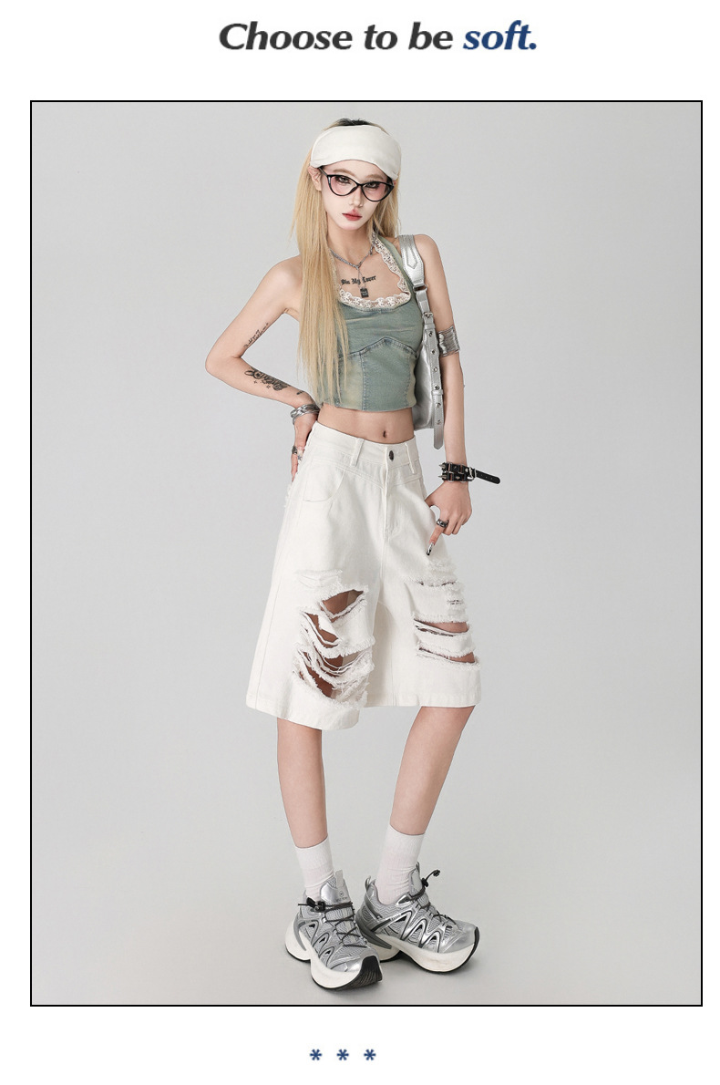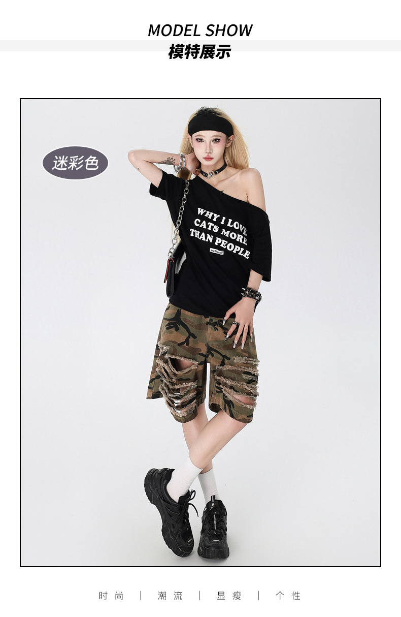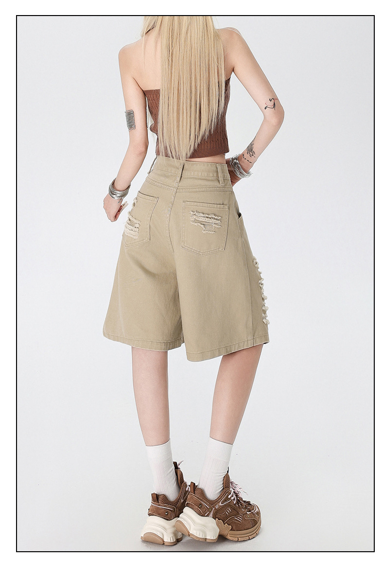 아메리칸 스타일 복고풍 디자인 청바지 여름 느슨한 스트레이트 툴링 위장 자른 포켓 반바지 데님 바지스토어 가기