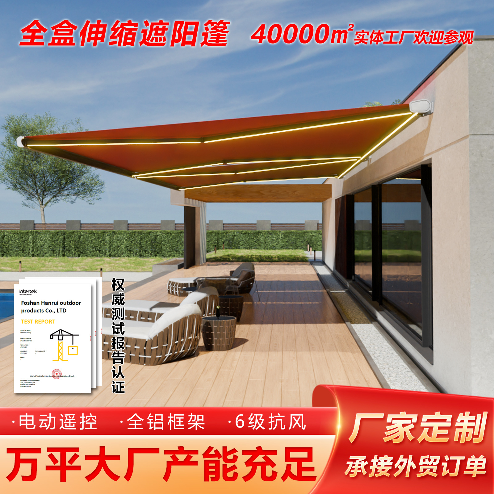 Hanrui 야외 차양 지붕은 외국 무역 공급을 지원합니다. 전체 상자 전기 차양 맞춤 제조업체스토어 가기