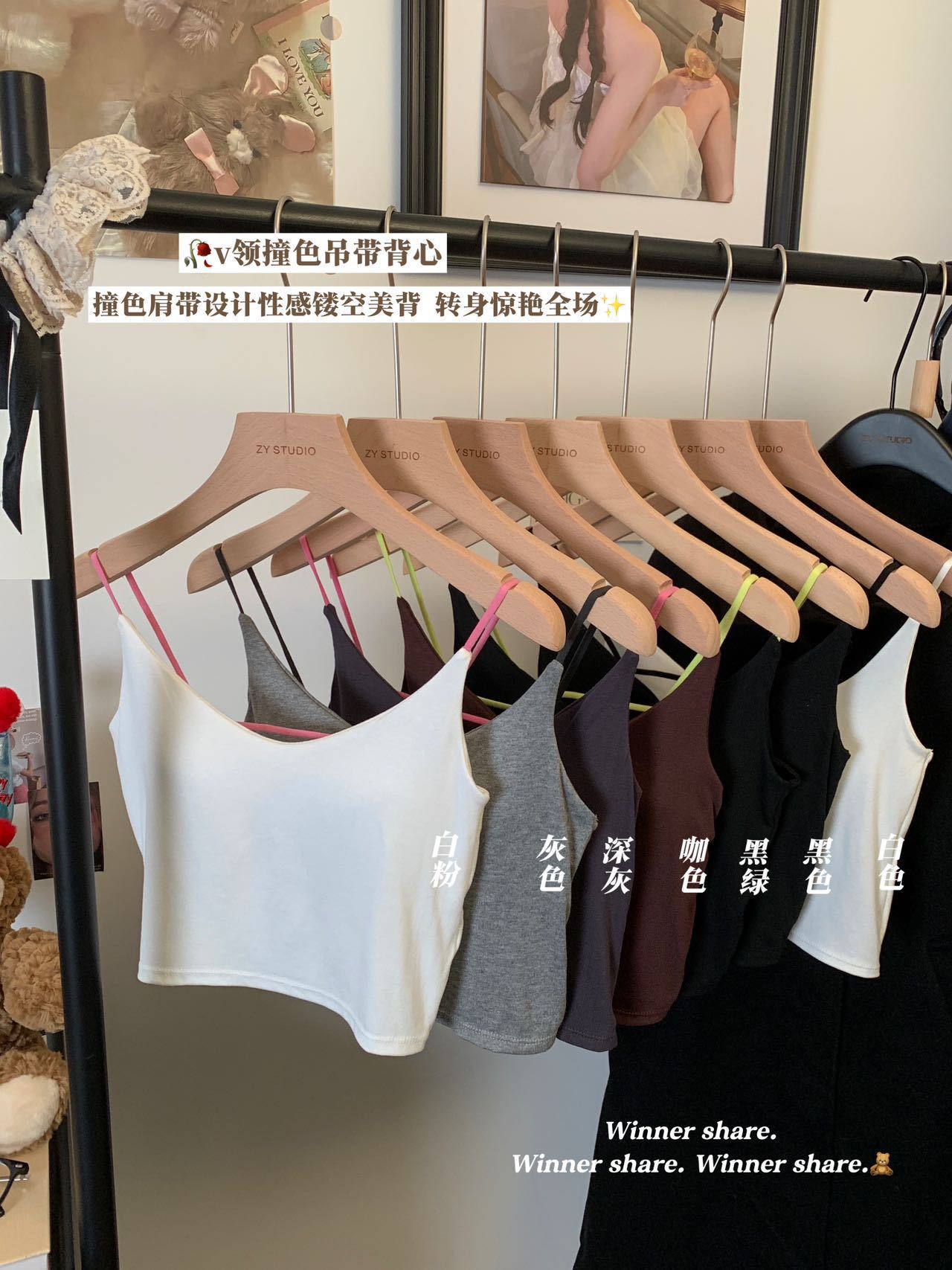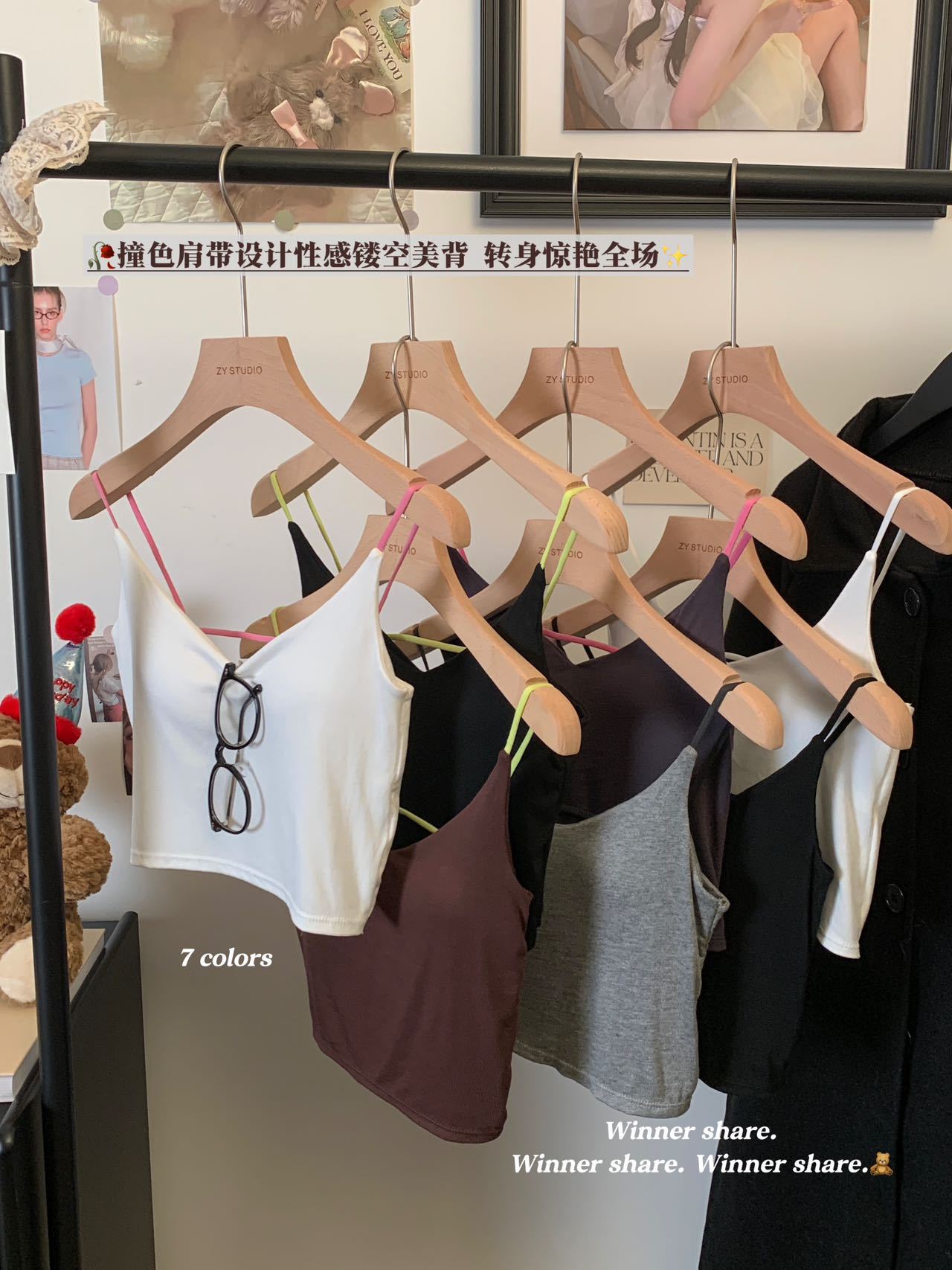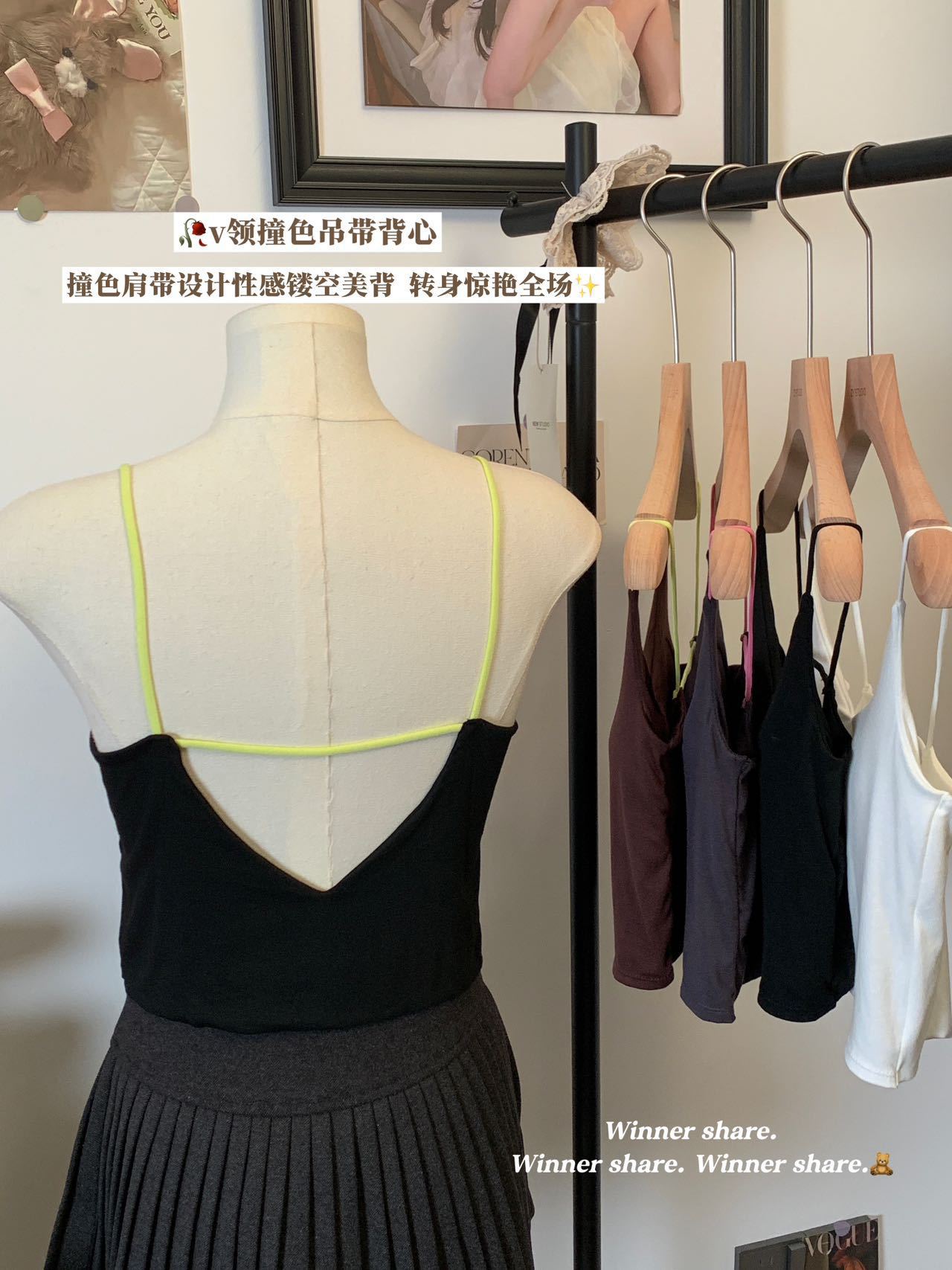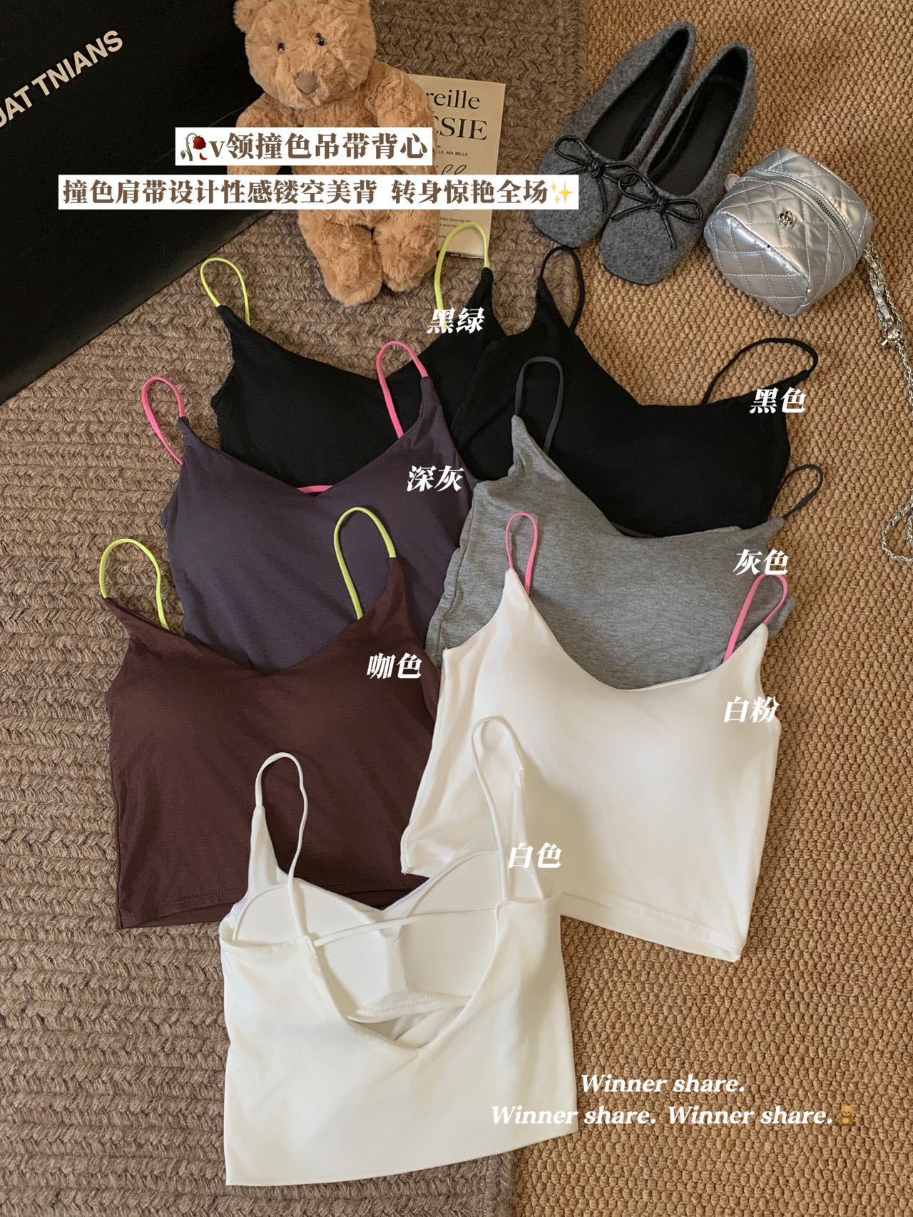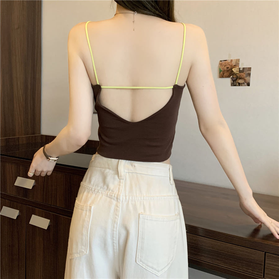 속이 빈 디자인, 대비되는 색상의 캐미솔, 여성용 브이넥 타이, 가슴 패드, 아름다운 등, 섹시하고 순수한 욕망, 여성용 아우터 탑스토어 가기