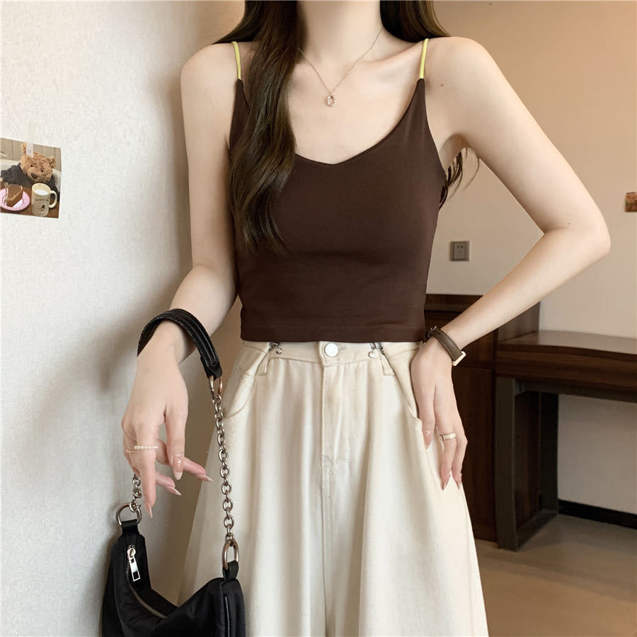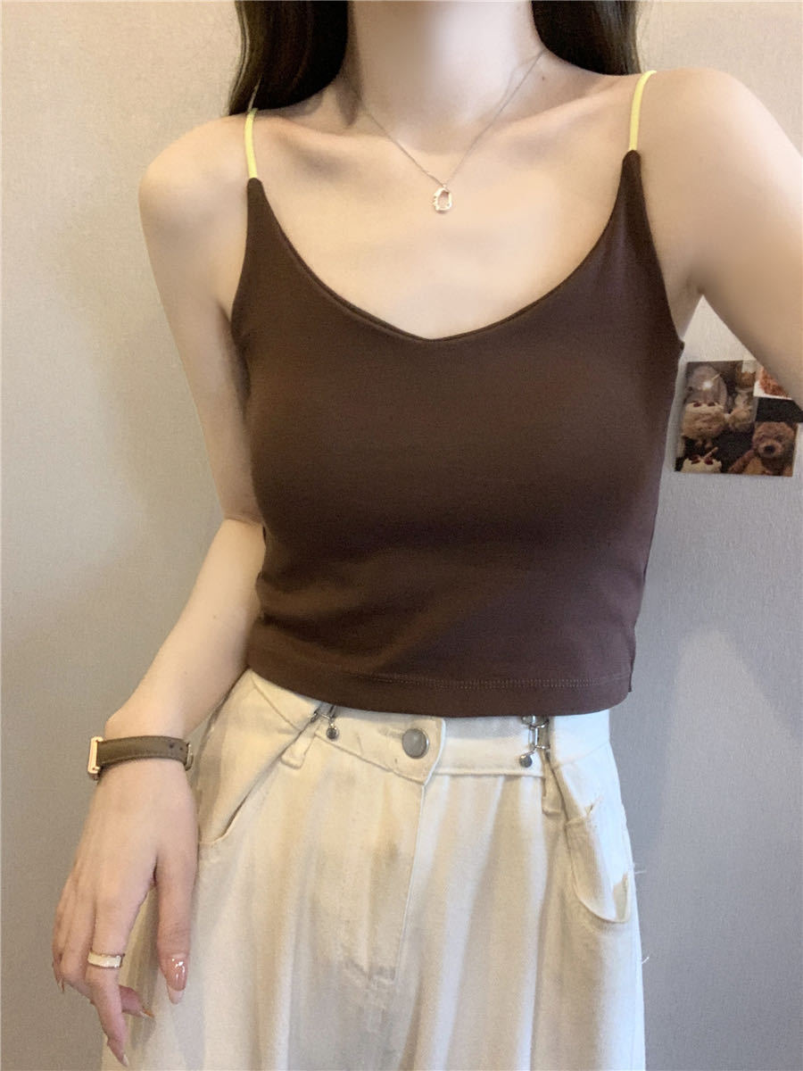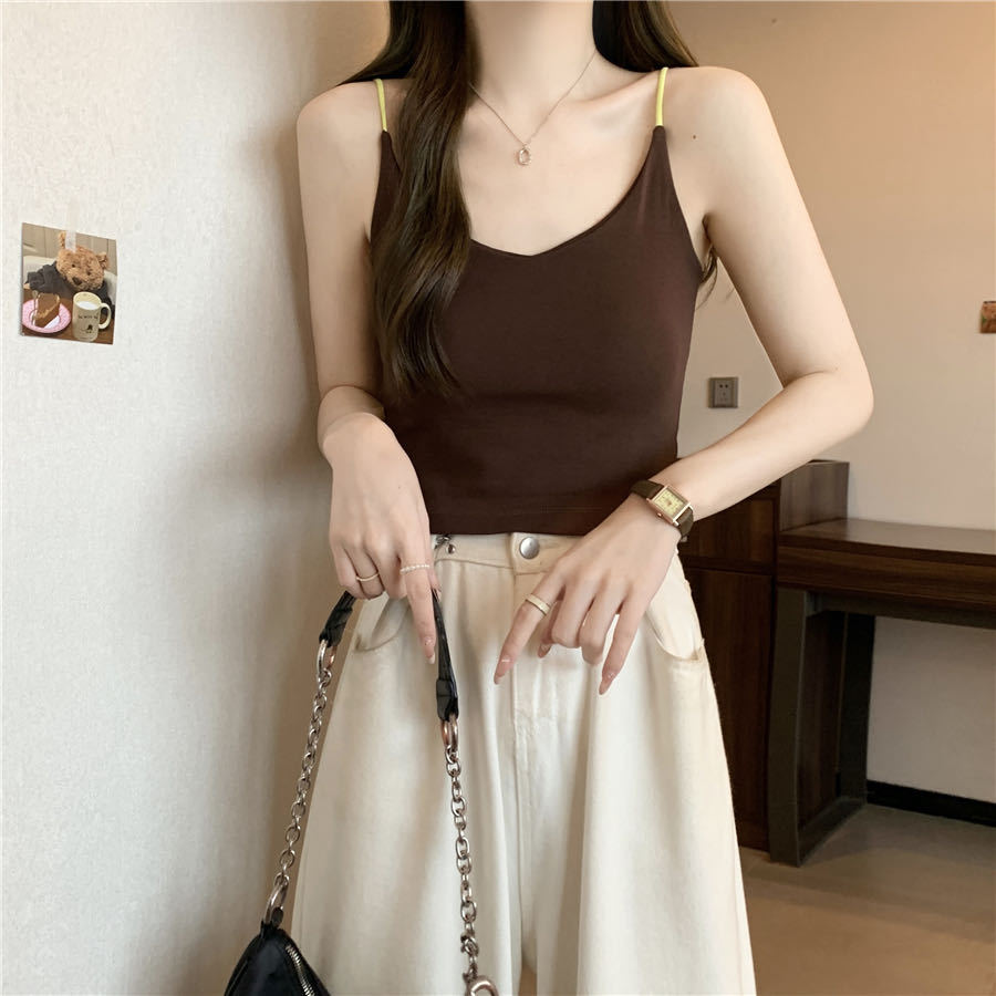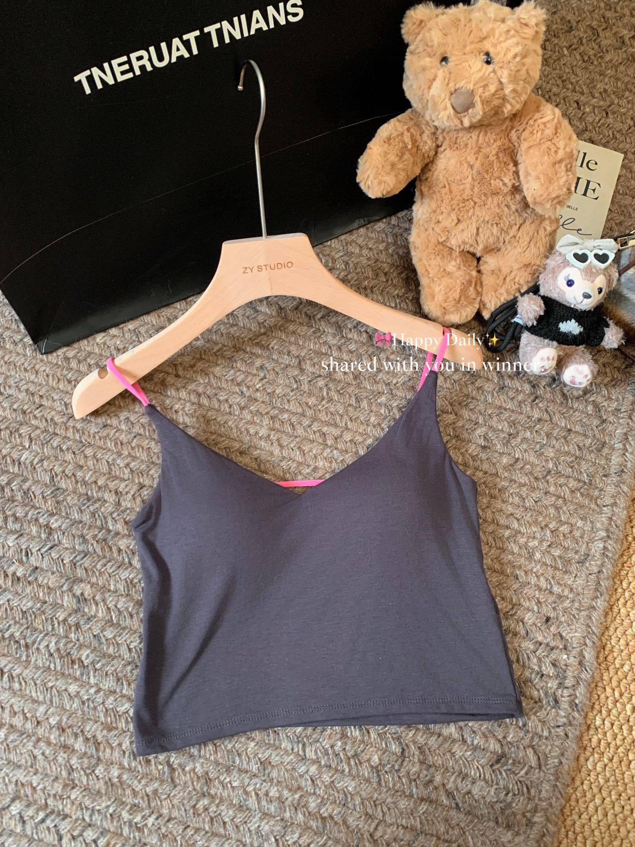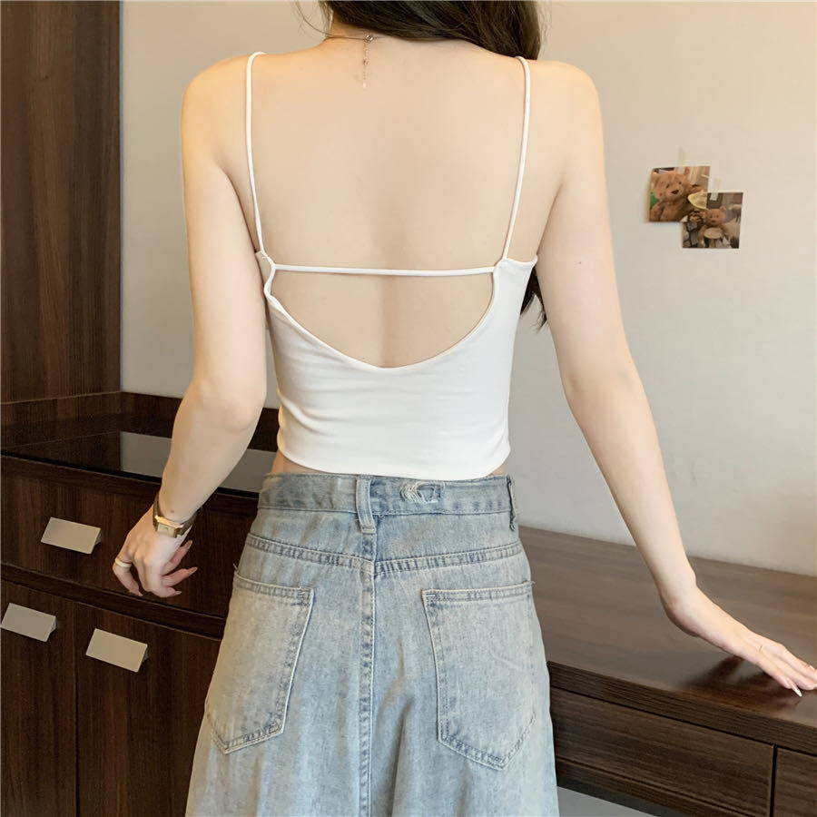 속이 빈 디자인, 대비되는 색상의 캐미솔, 여성용 브이넥 타이, 가슴 패드, 아름다운 등, 섹시하고 순수한 욕망, 여성용 아우터 탑스토어 가기