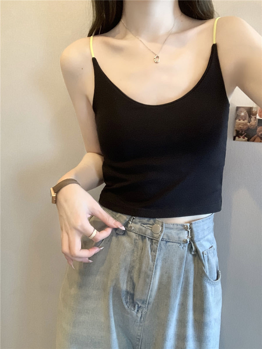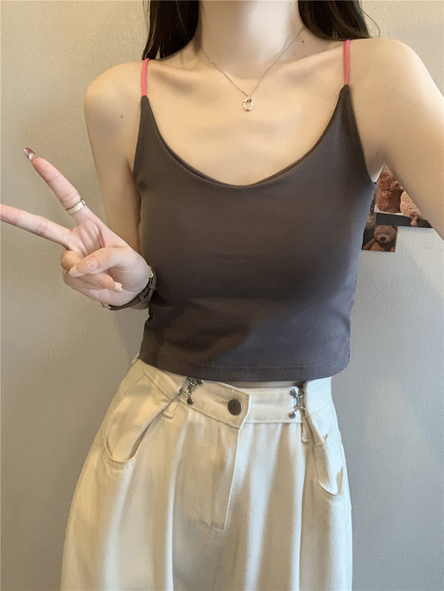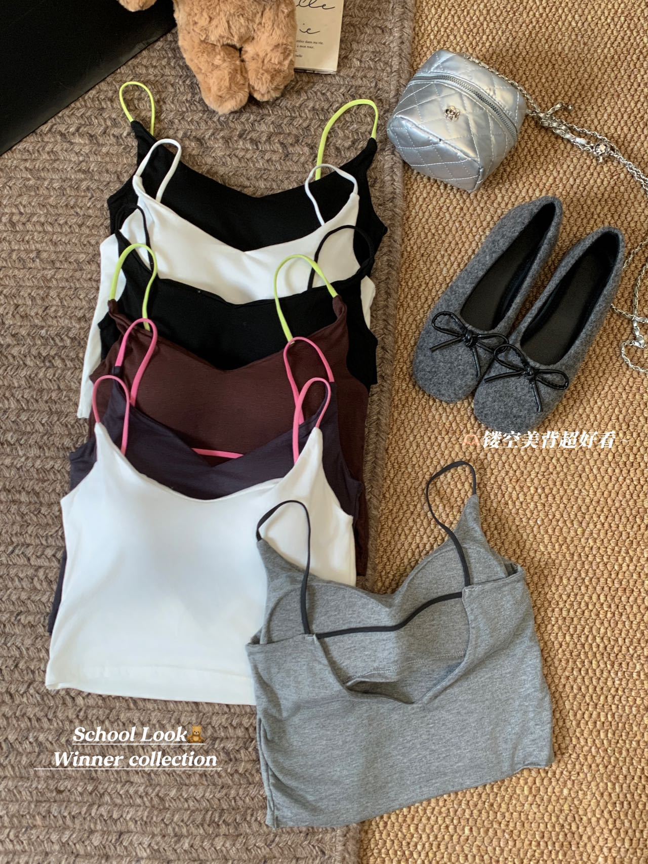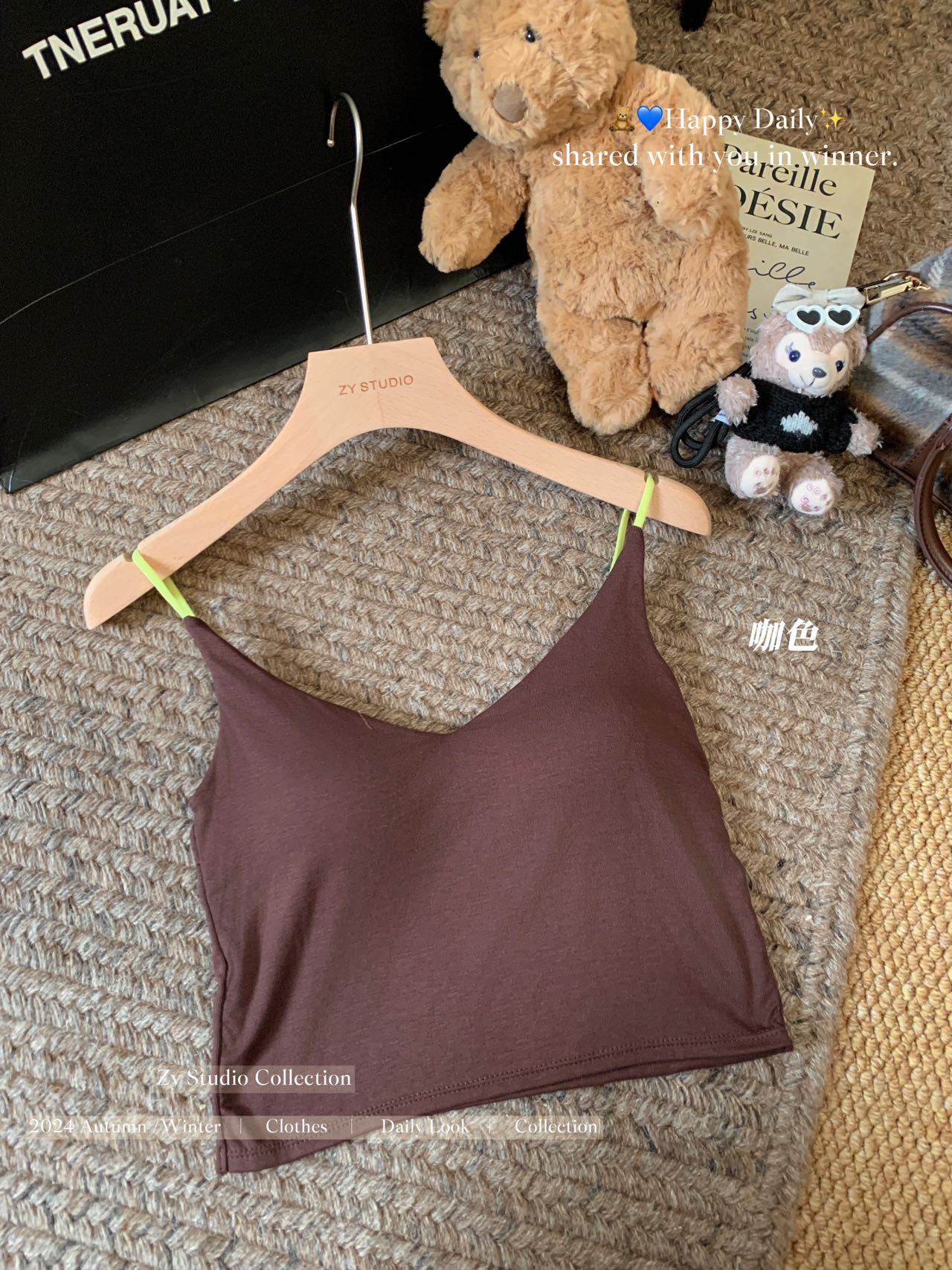속이 빈 디자인, 대비되는 색상의 캐미솔, 여성용 브이넥 타이, 가슴 패드, 아름다운 등, 섹시하고 순수한 욕망, 여성용 아우터 탑스토어 가기