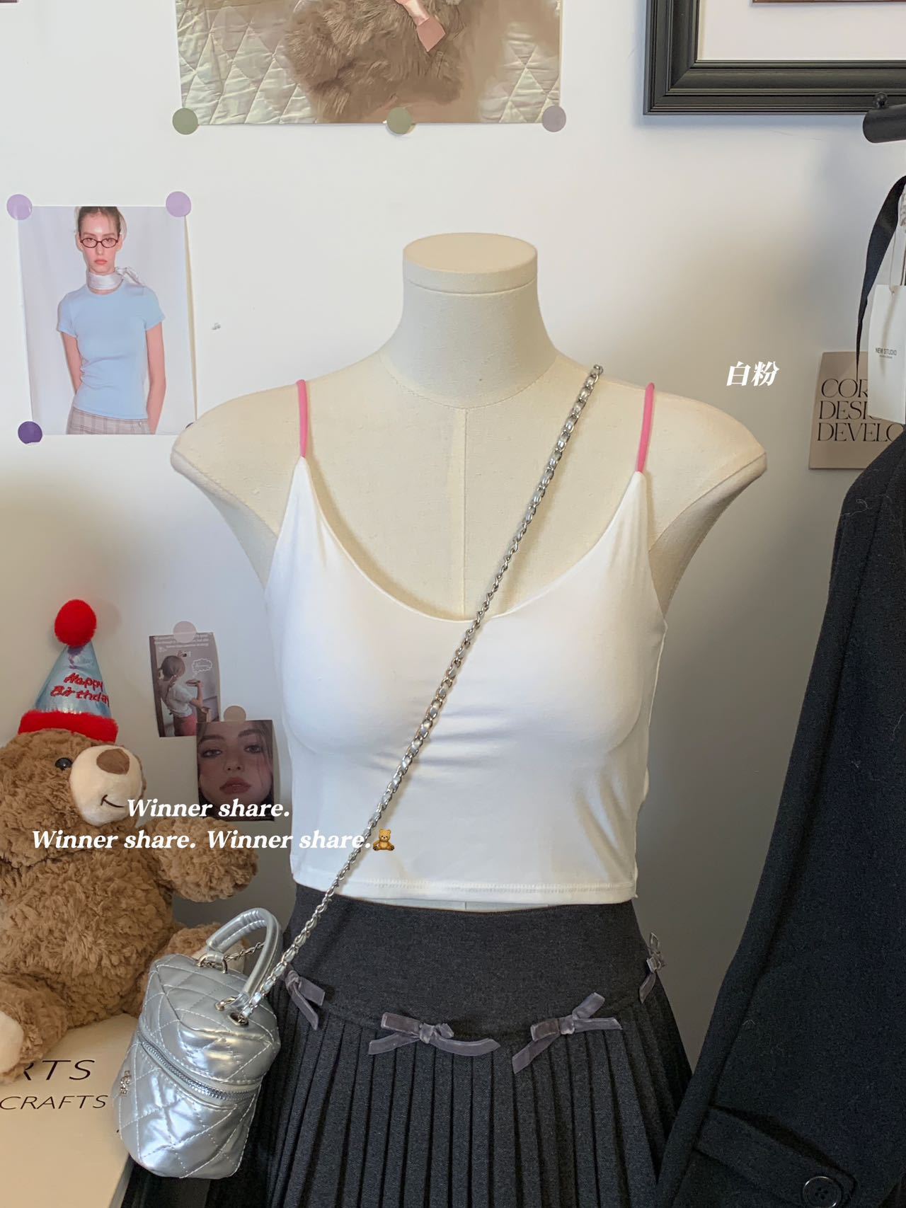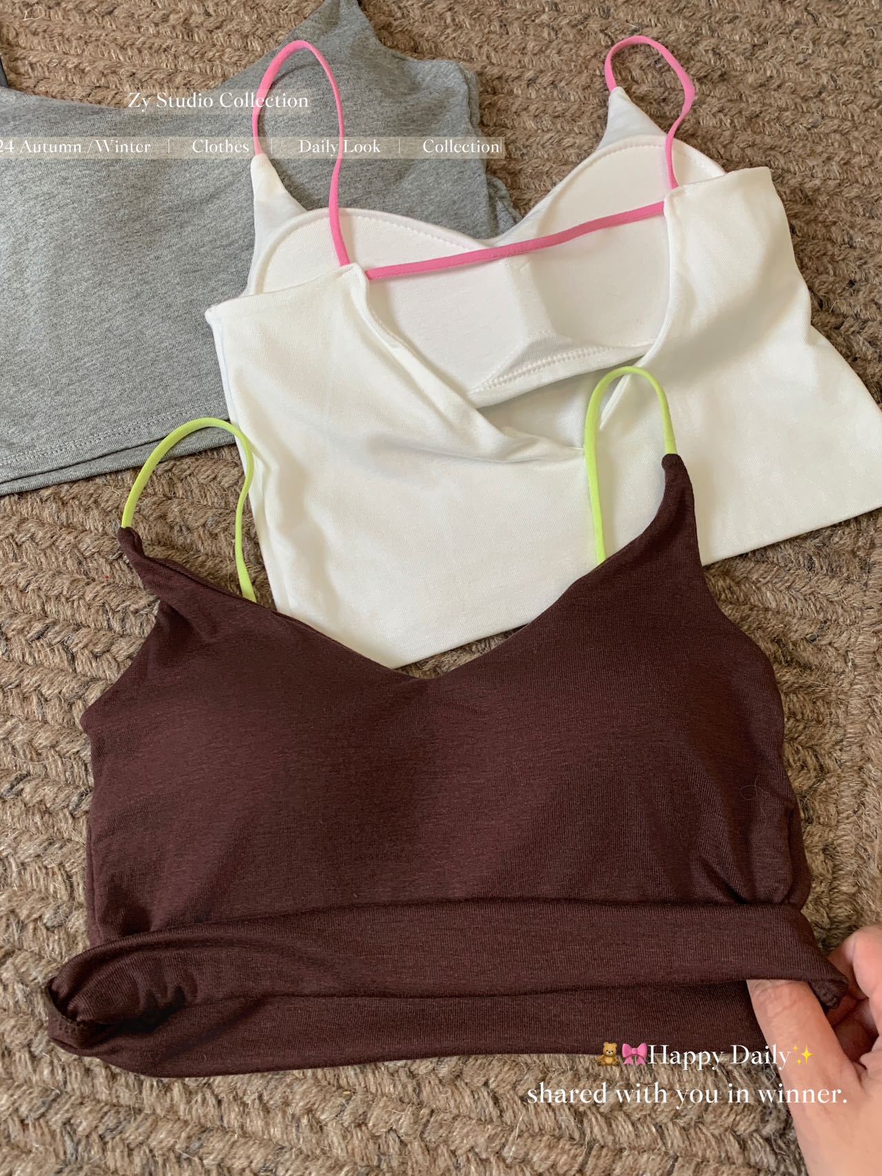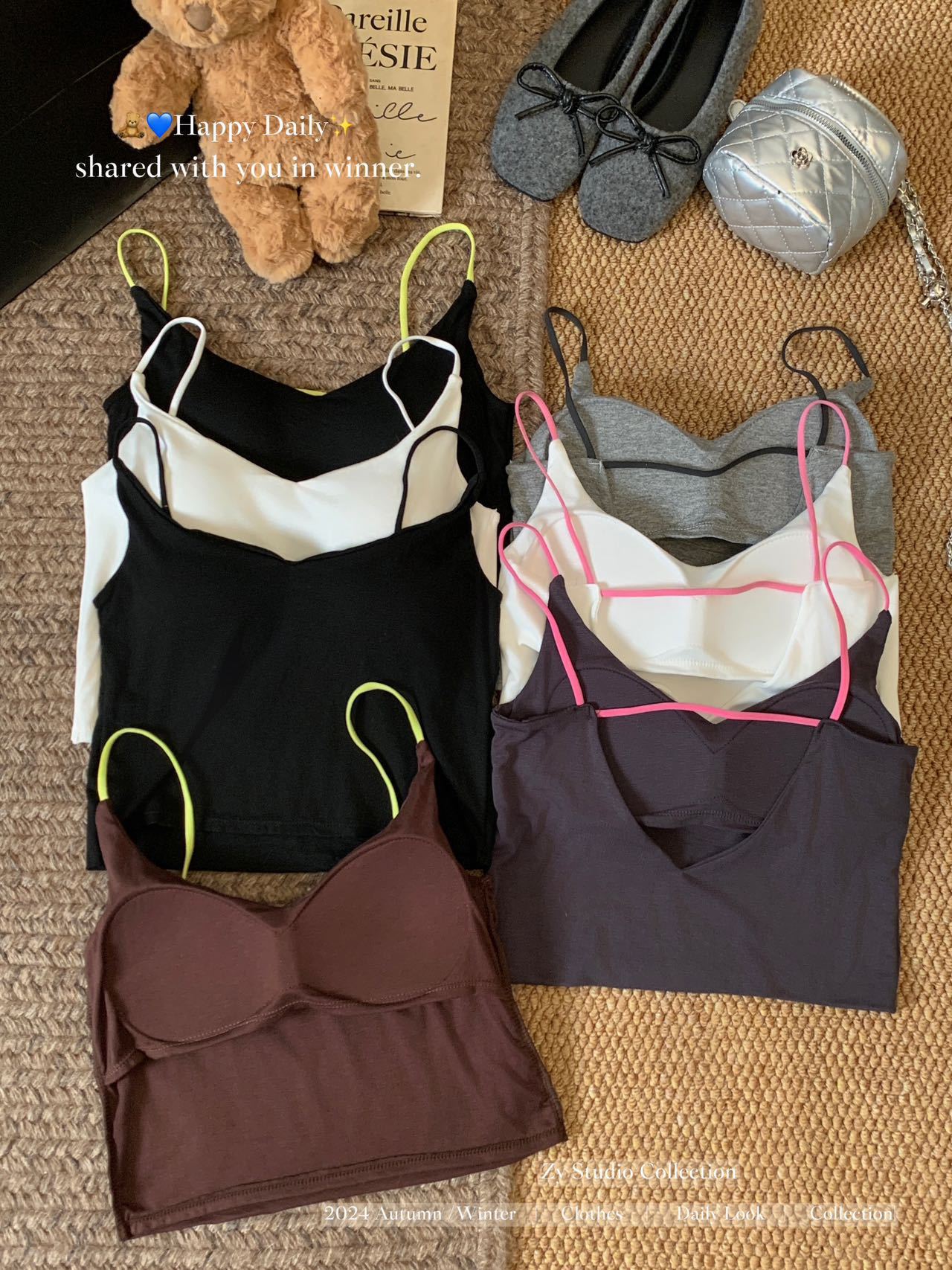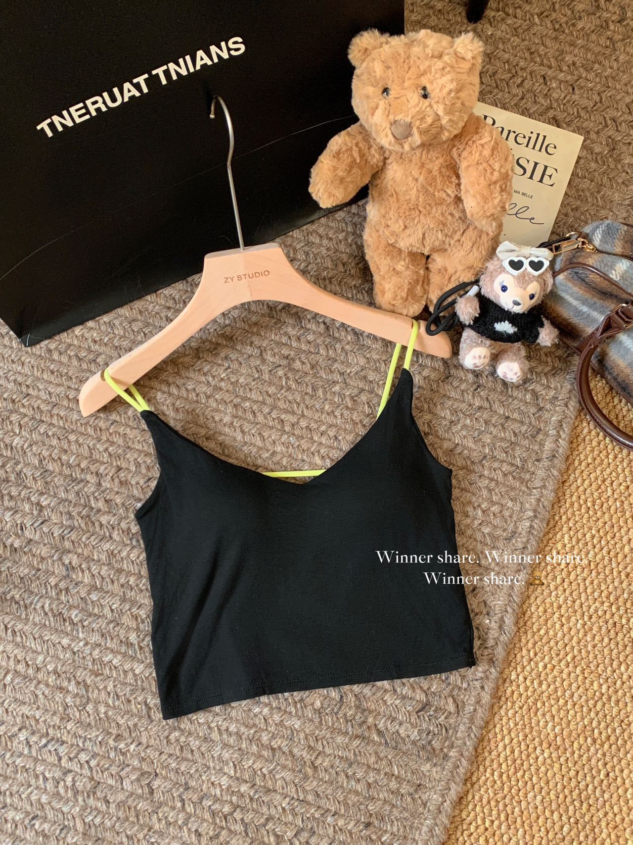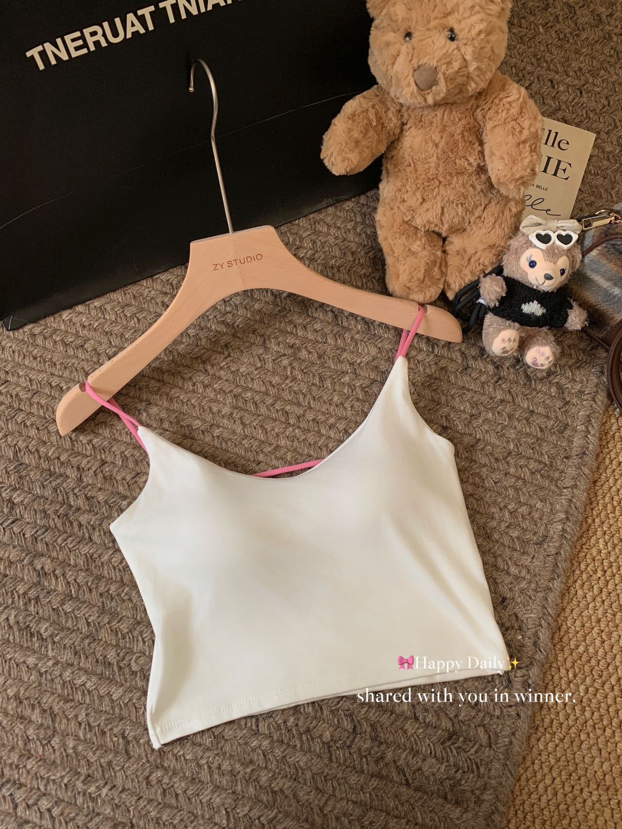 속이 빈 디자인, 대비되는 색상의 캐미솔, 여성용 브이넥 타이, 가슴 패드, 아름다운 등, 섹시하고 순수한 욕망, 여성용 아우터 탑스토어 가기