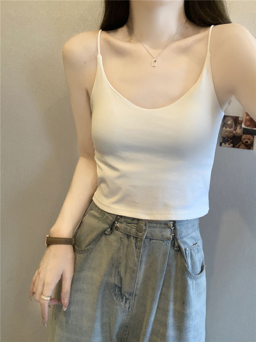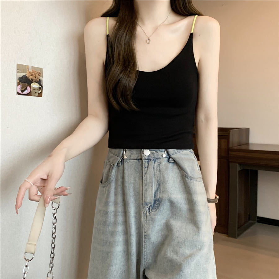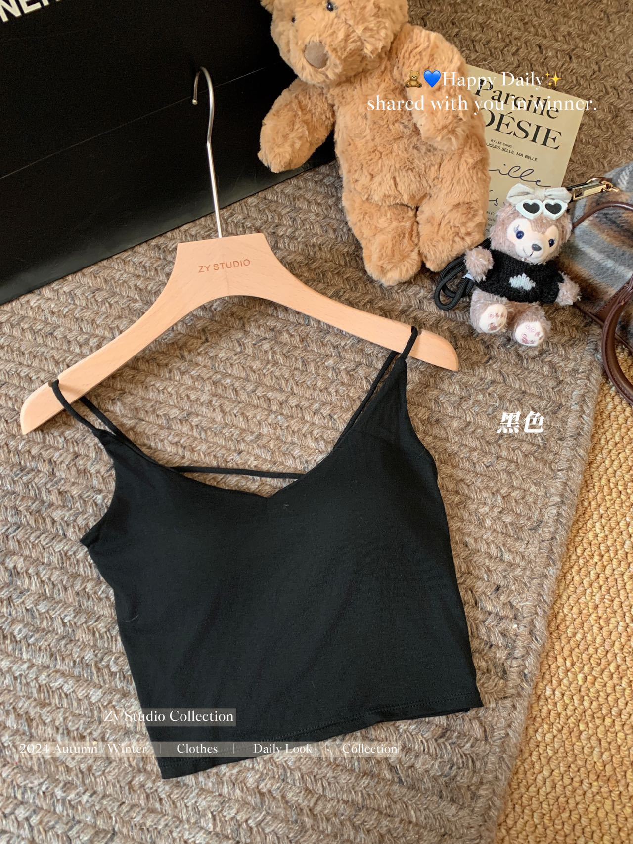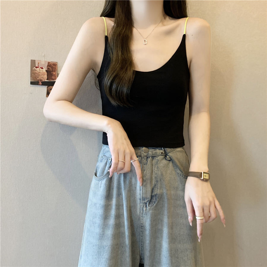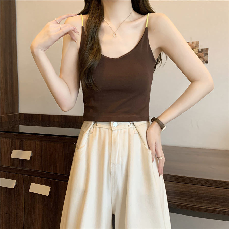 속이 빈 디자인, 대비되는 색상의 캐미솔, 여성용 브이넥 타이, 가슴 패드, 아름다운 등, 섹시하고 순수한 욕망, 여성용 아우터 탑스토어 가기