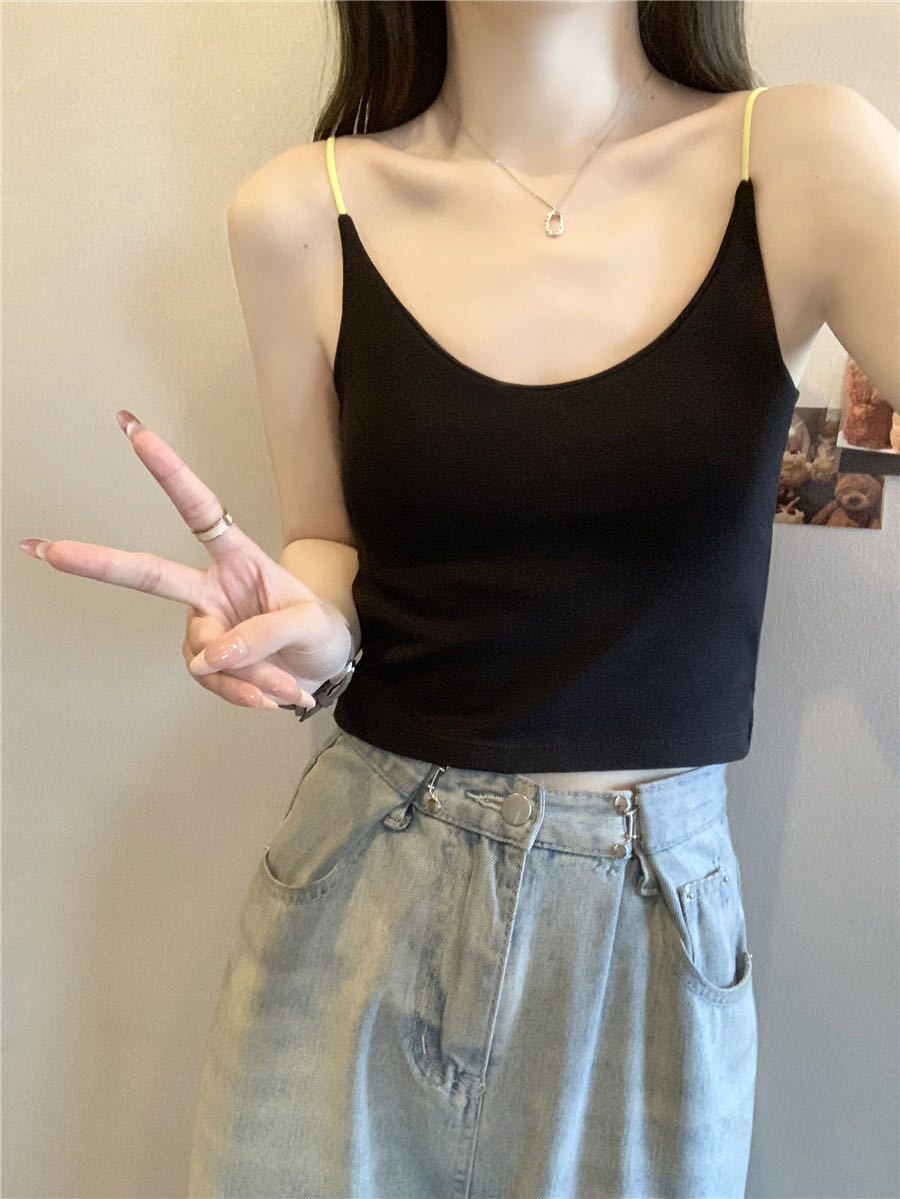 속이 빈 디자인, 대비되는 색상의 캐미솔, 여성용 브이넥 타이, 가슴 패드, 아름다운 등, 섹시하고 순수한 욕망, 여성용 아우터 탑