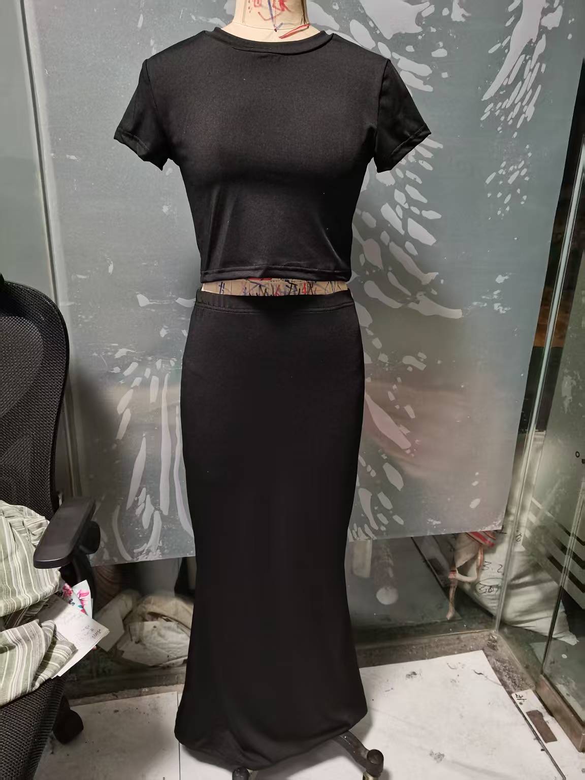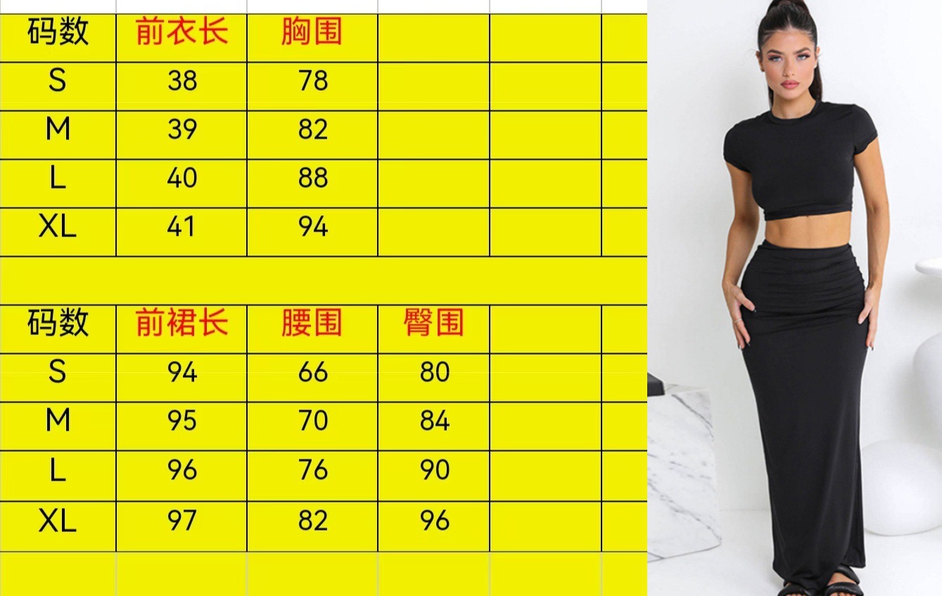 유럽과 미국 스타일 2026 봄 여름 신상 여성복 크롭 티셔츠 하이웨이스트 힙허깅 스커트 캐주얼 세트스토어 가기