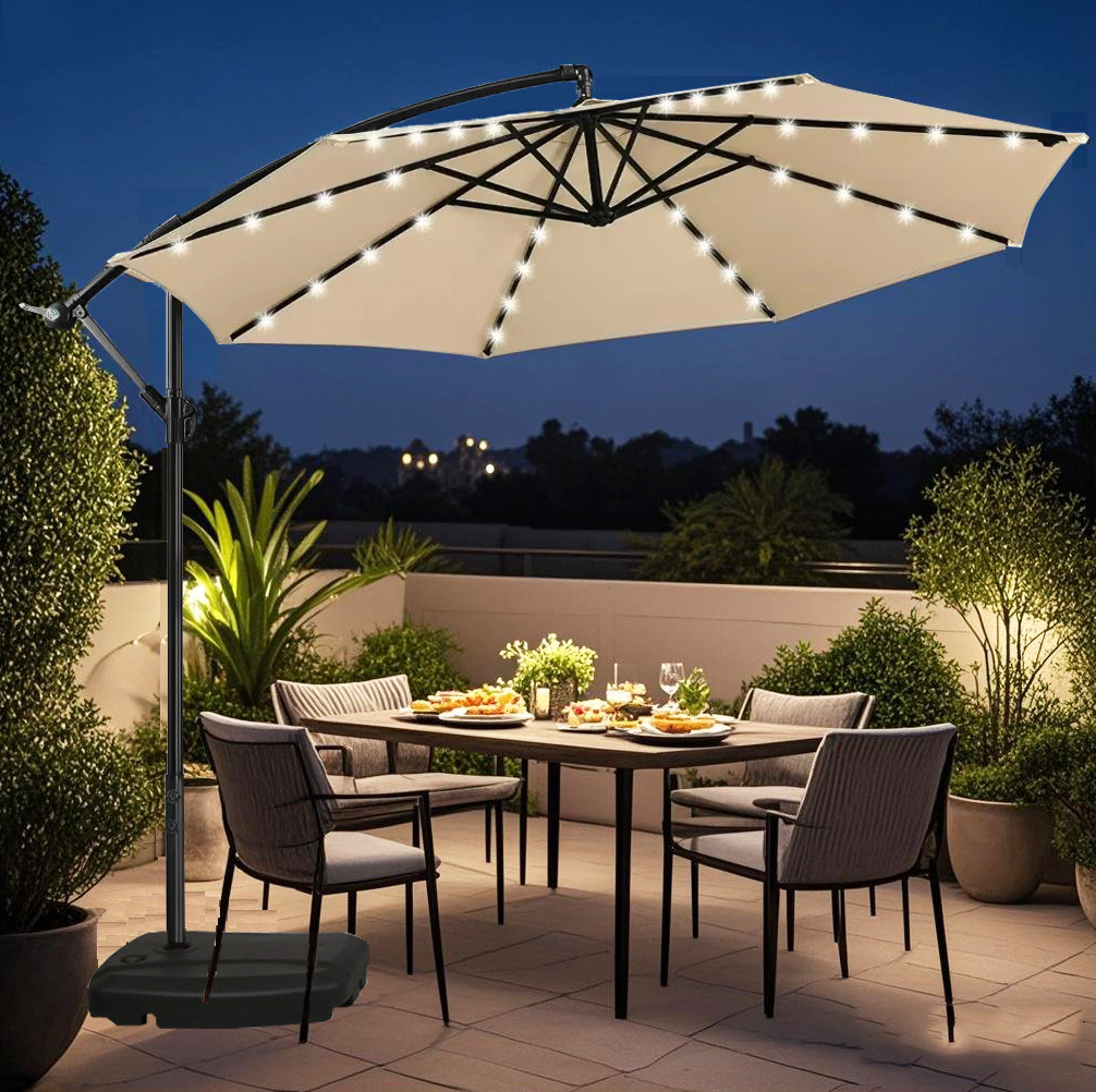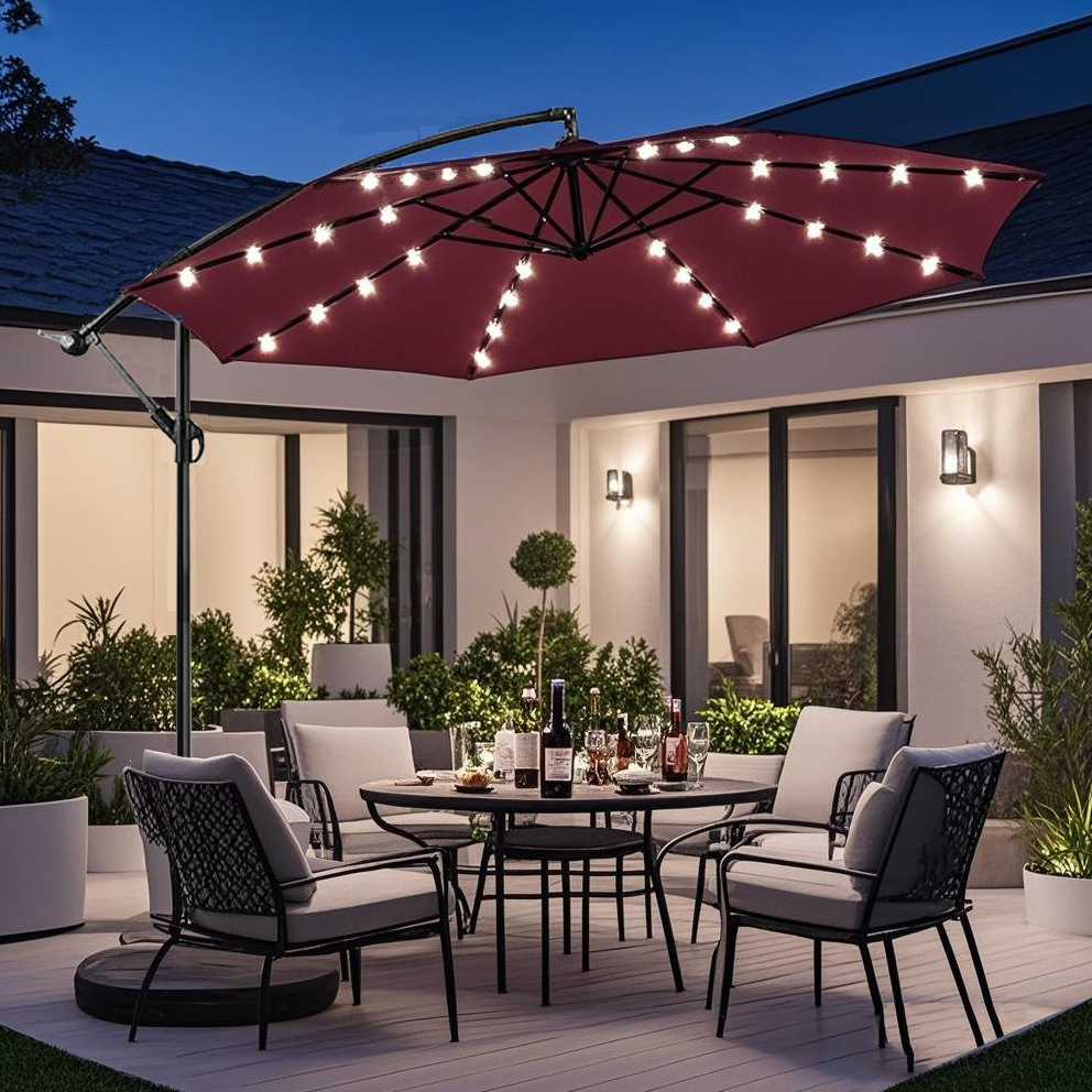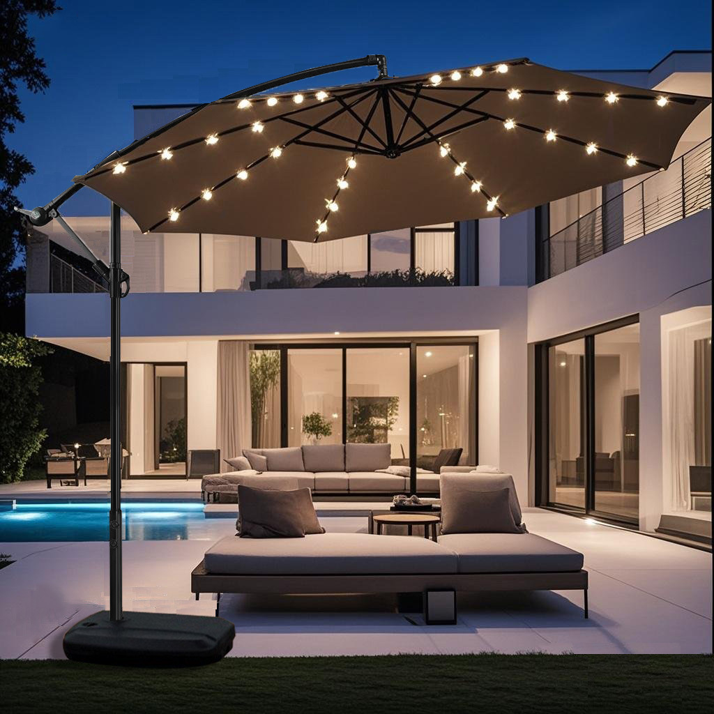 원격 제어 파라솔이있는 야외 스트링 조명 빌라 안뜰 홈 레저 발코니 스톨 태양 보호 바나나 우산 도매