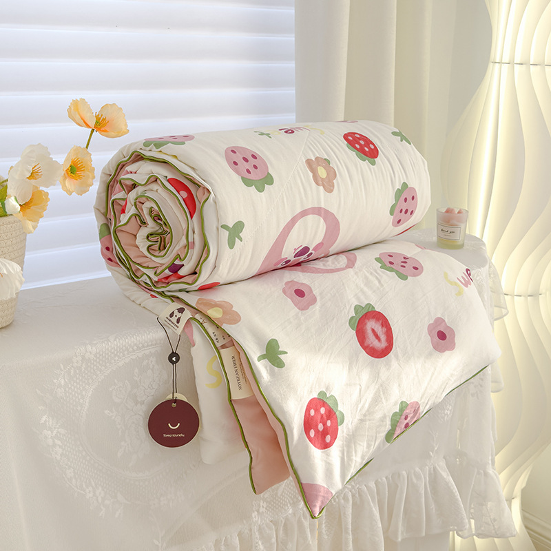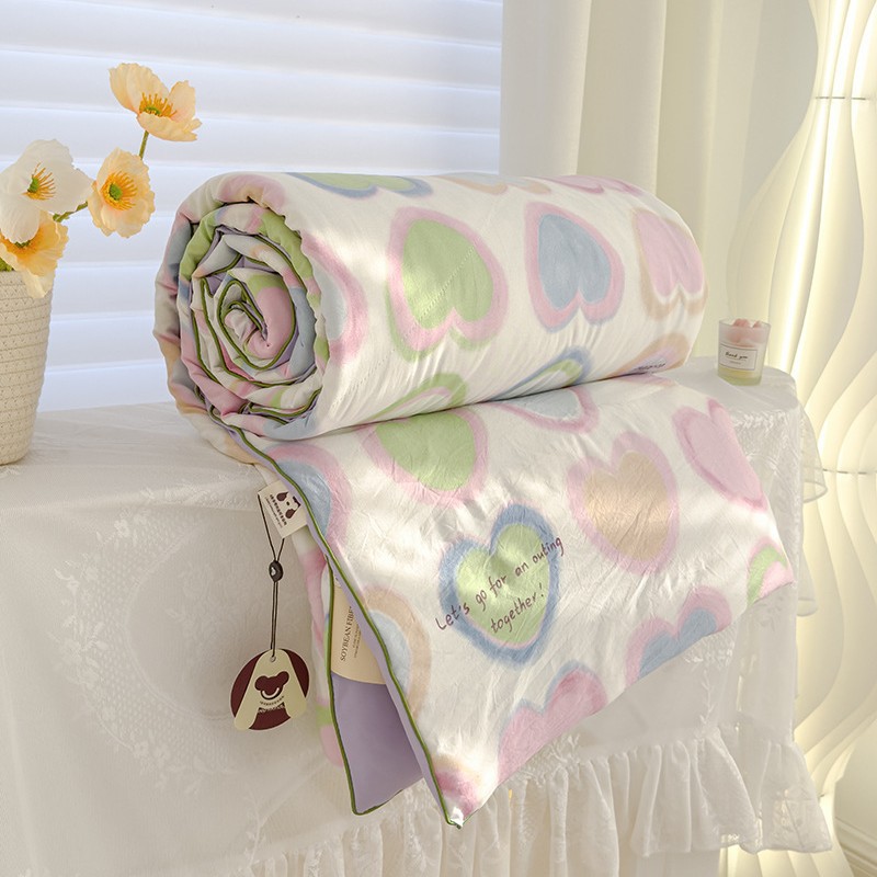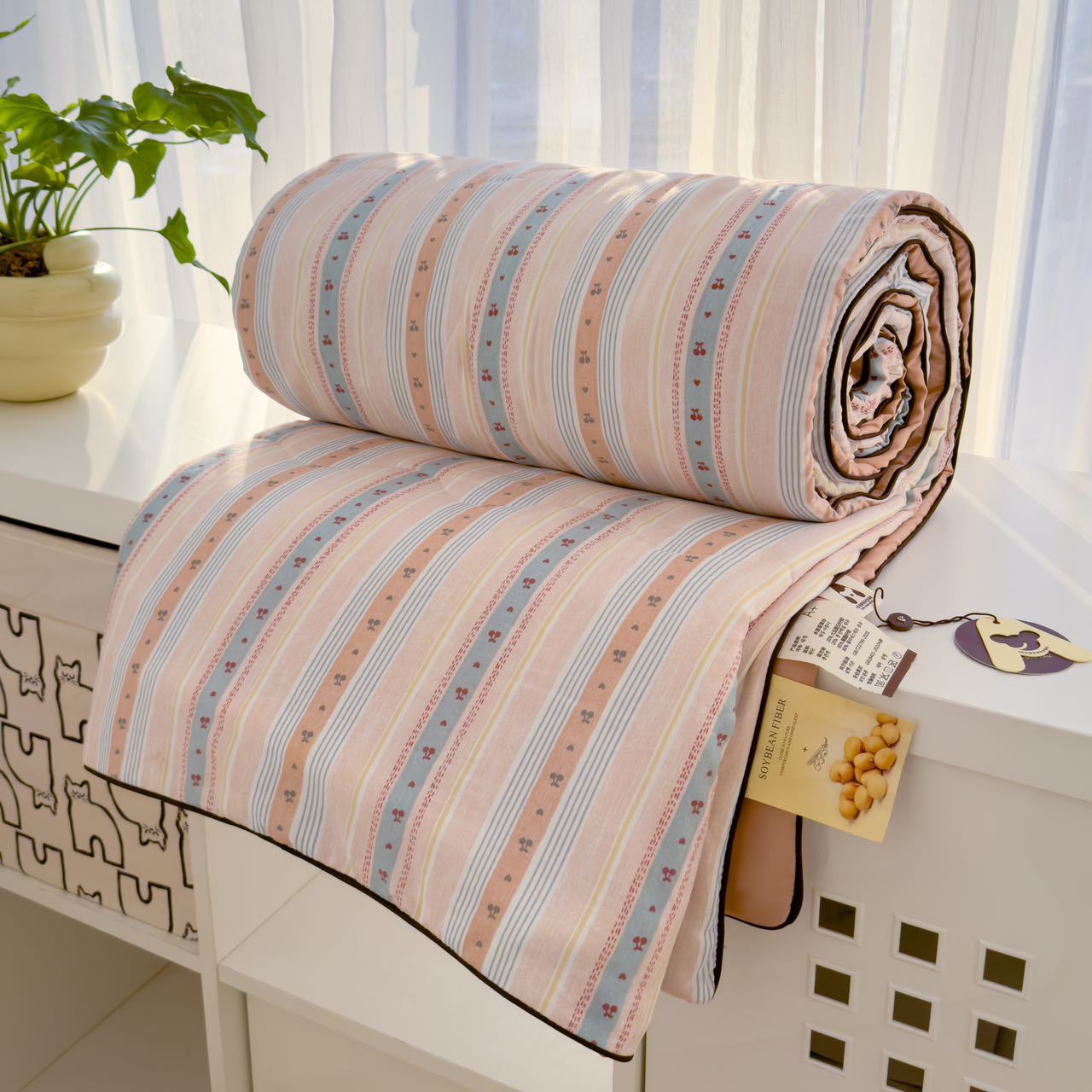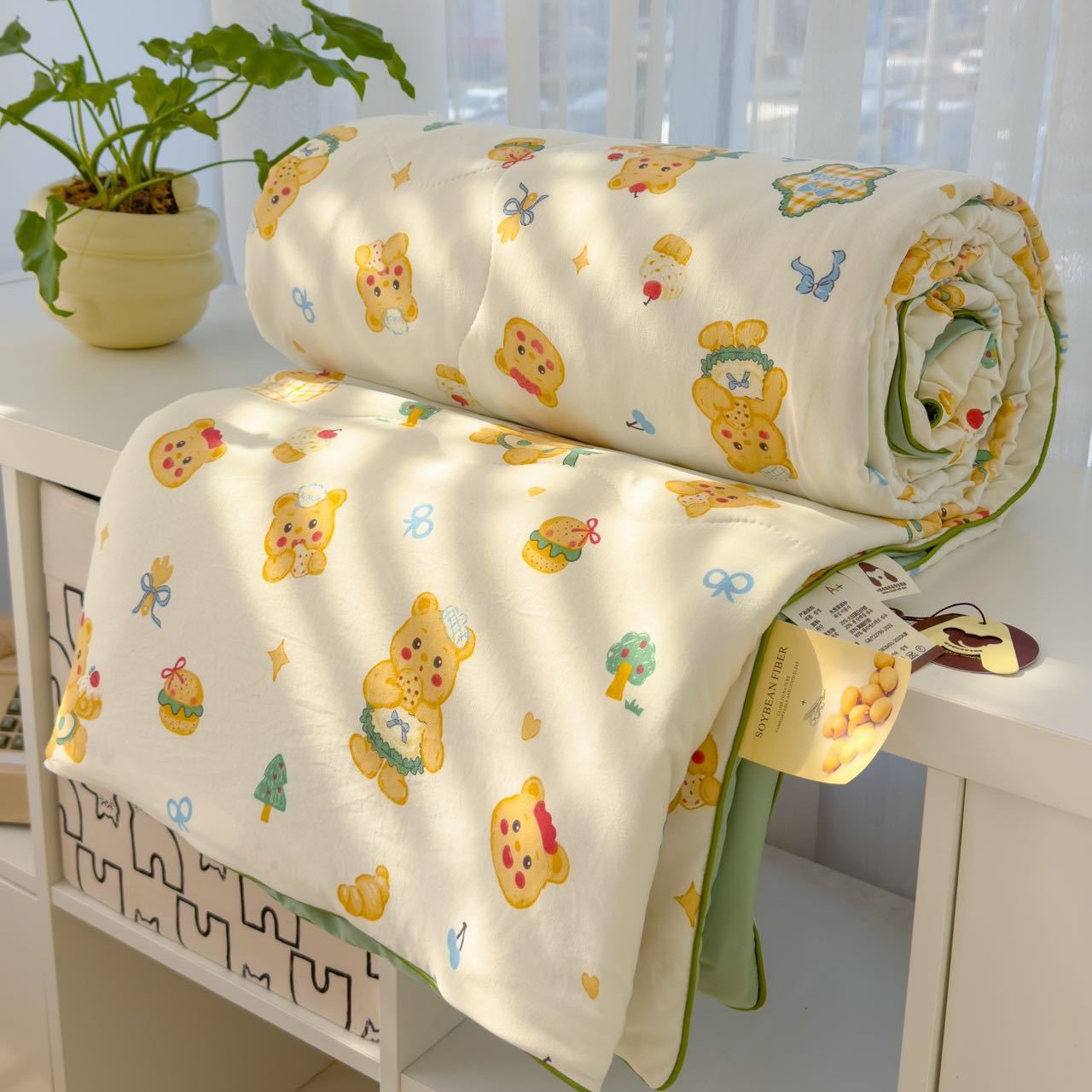 더블 레이어 거즈 콩 섬유 여름 이불, 산모 및 유아용 부드럽고 왁시한 여름 시원한 이불, 여름 에어컨 이불, 봄과 가을 세탁 가능한 얇은 이불