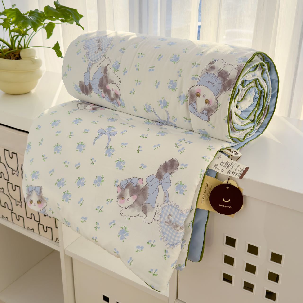더블 레이어 거즈 콩 섬유 여름 이불, 산모 및 유아용 부드럽고 왁시한 여름 시원한 이불, 여름 에어컨 이불, 봄과 가을 세탁 가능한 얇은 이불스토어 가기
