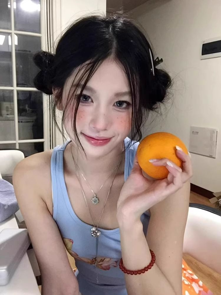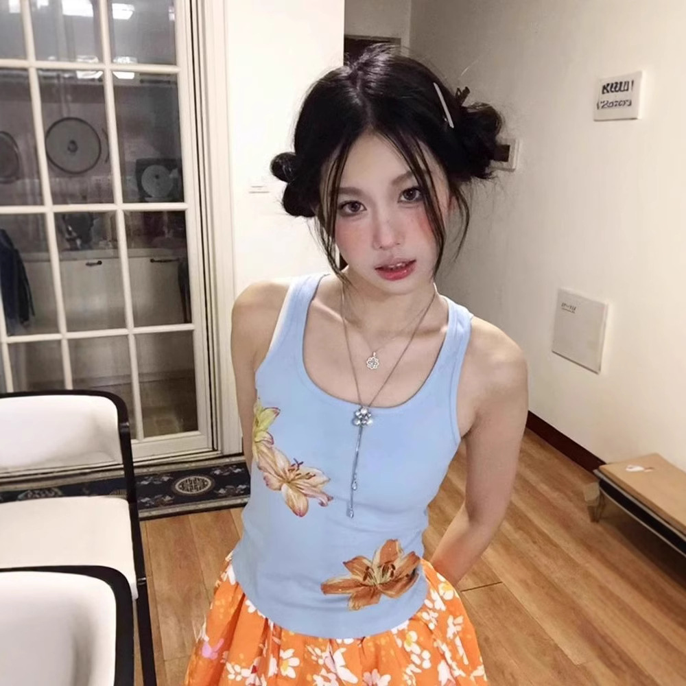 꽃 인쇄 카미 솔 여성의 여름 도파민 착용 블루 내복 외부 착용 타이트한 순수한 욕망 탑