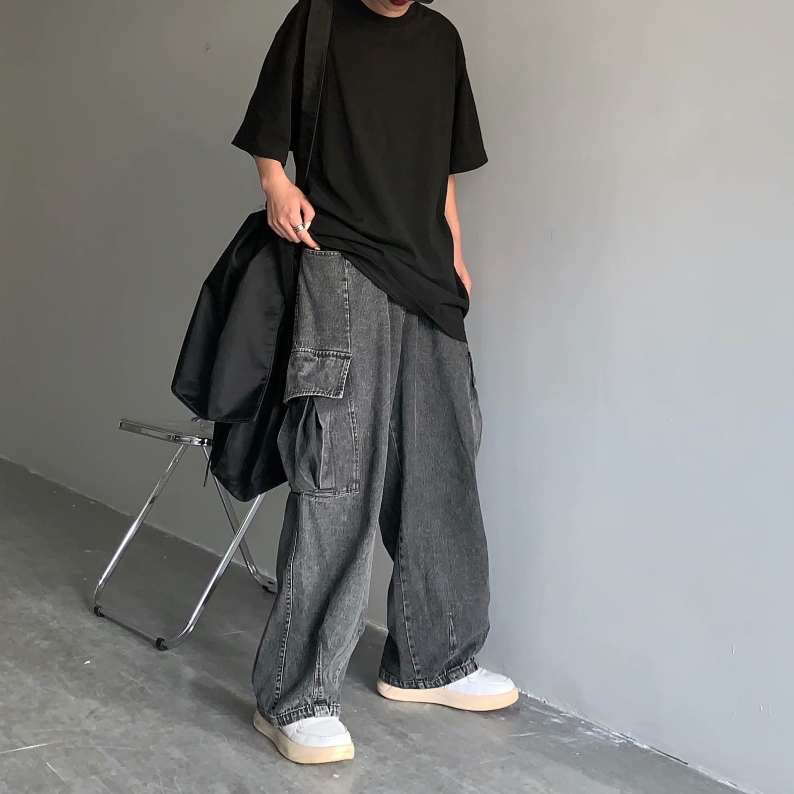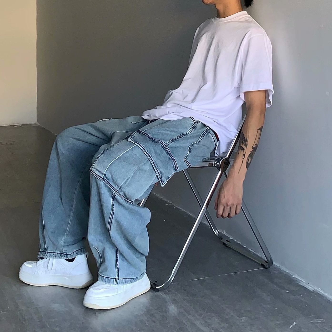 카고 바지 패션 힙합 펜던트 와이드 레그 청바지 남성 Fas스토어 가기