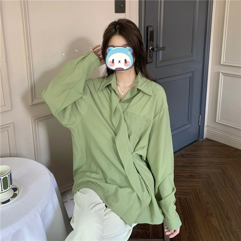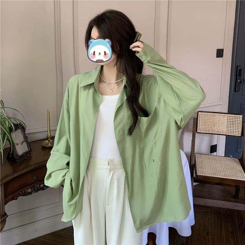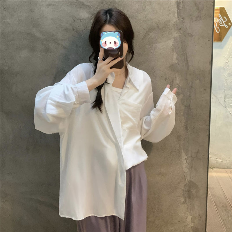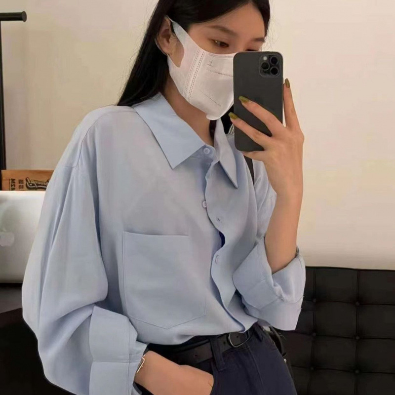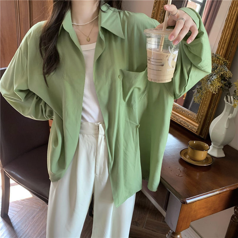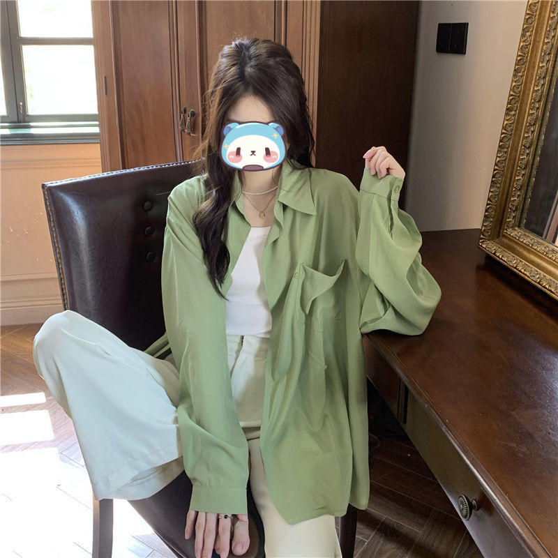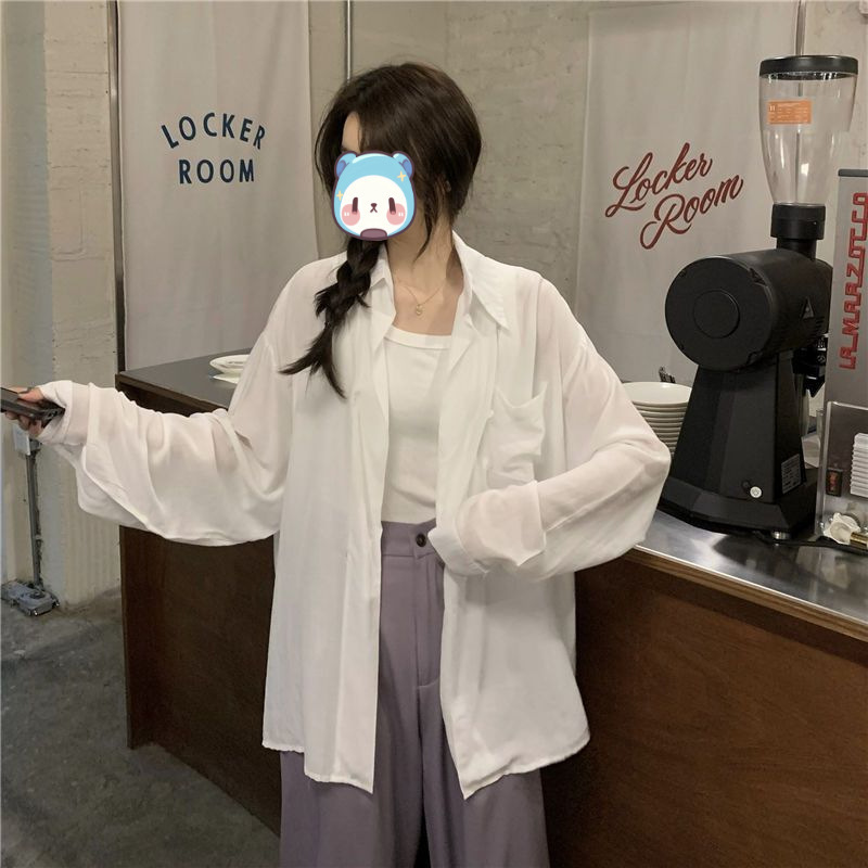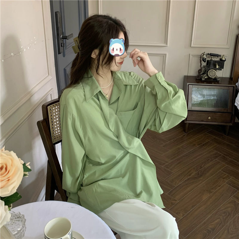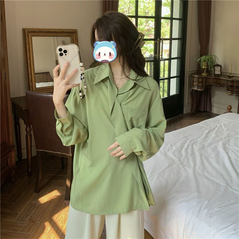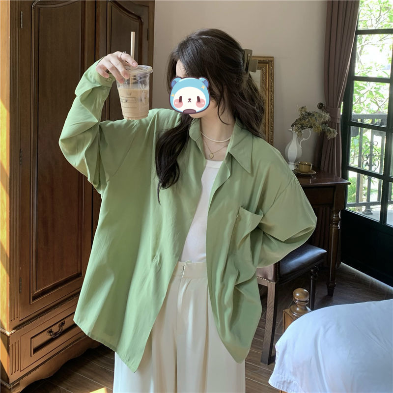 프랑스 보라색 선 스크린 셔츠 가을 새로운 느슨한 틈새 디자인 긴 소매 여성의 얇은 올 매치 폴로 칼라 셔츠