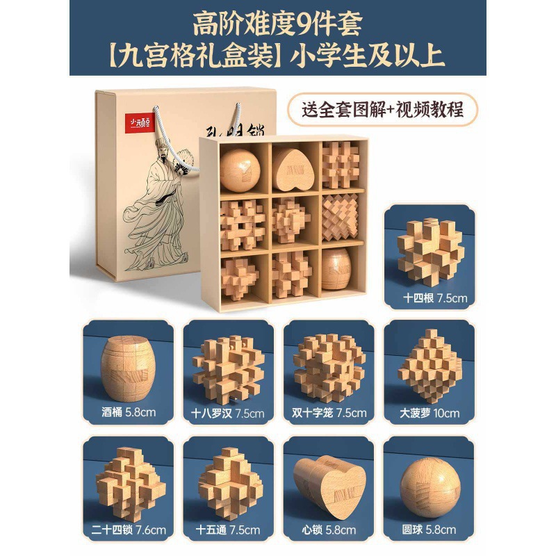 새로운 Luban Lock Kongming Lock 어린이 날 지능 잠금 선물 전체 세트 모 빌딩 블록 어린이 장난감 1 세스토어 가기