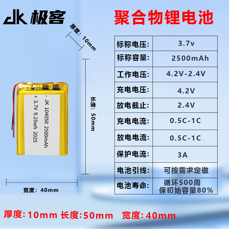 배터리 104050 폴리머 리튬 배터리 2500mAh 삼원 리튬 배터리 대용량 리튬 이온 충전지
