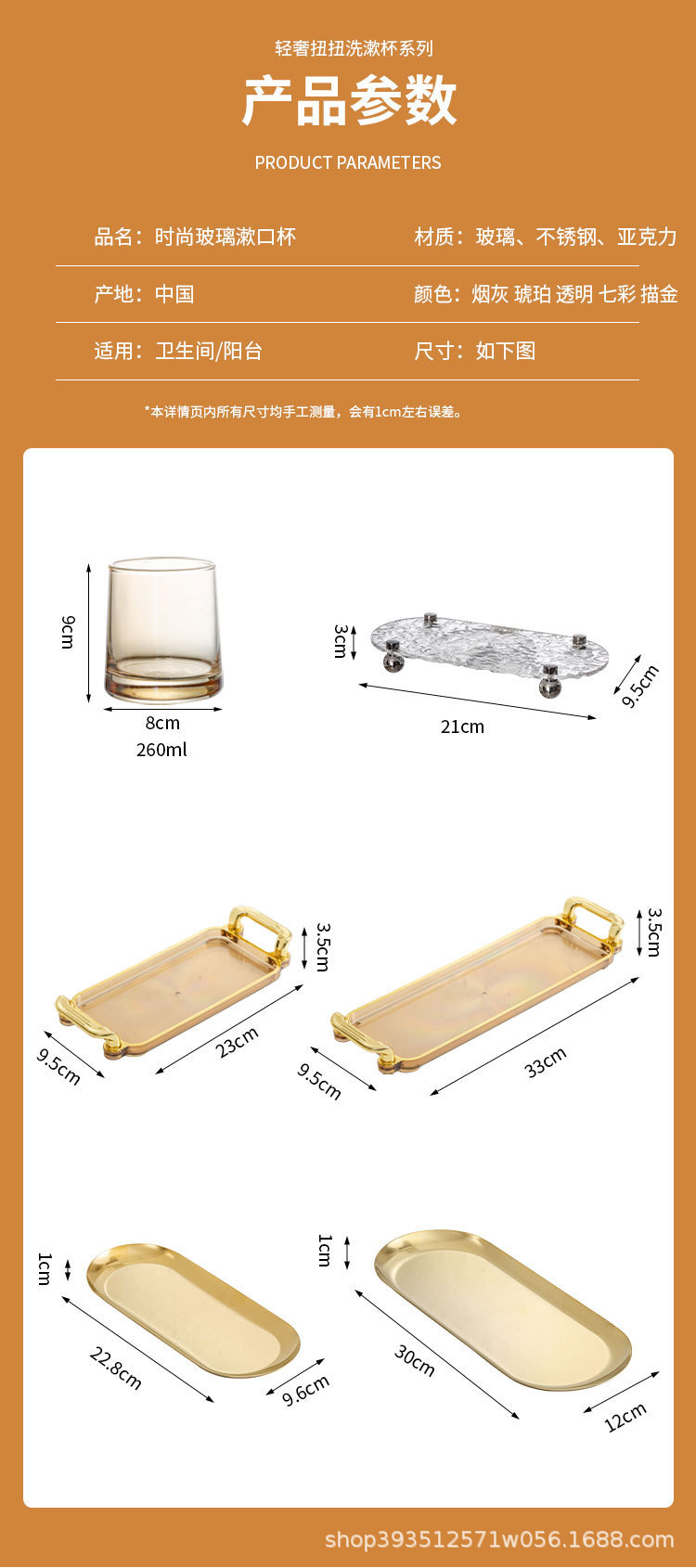 • 사다리꼴 호박색 + 회색 + 회색 금테 트레이