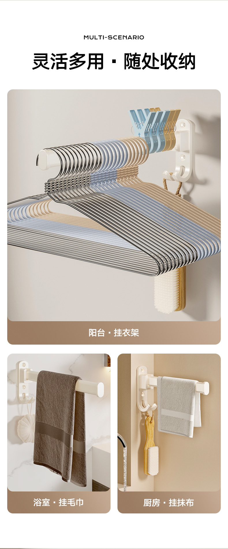 소스 공장 보관 유물 벽걸이형 펀치 없는 보관 랙 크리에이티브 의류 지지대 걸이 막대 두꺼운 가정용 의류 건조 랙스토어 가기