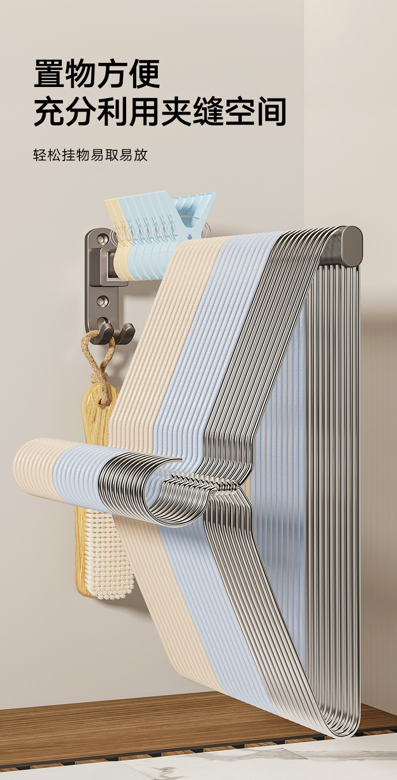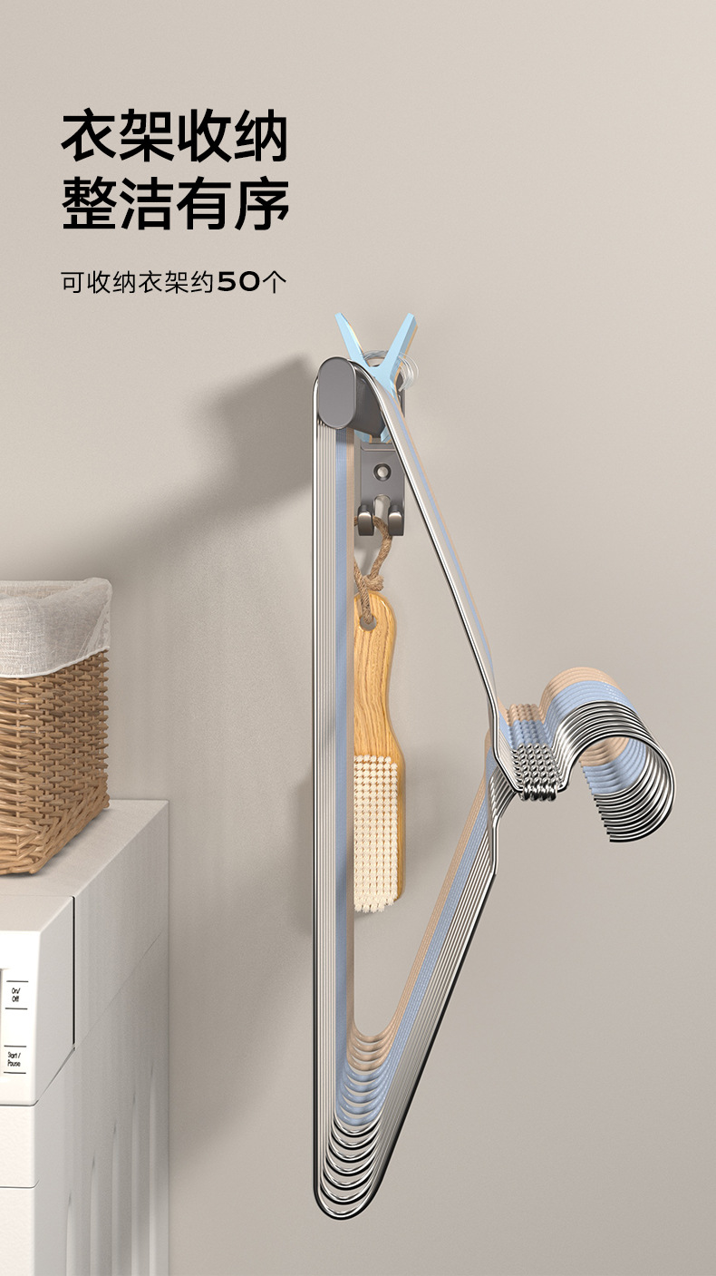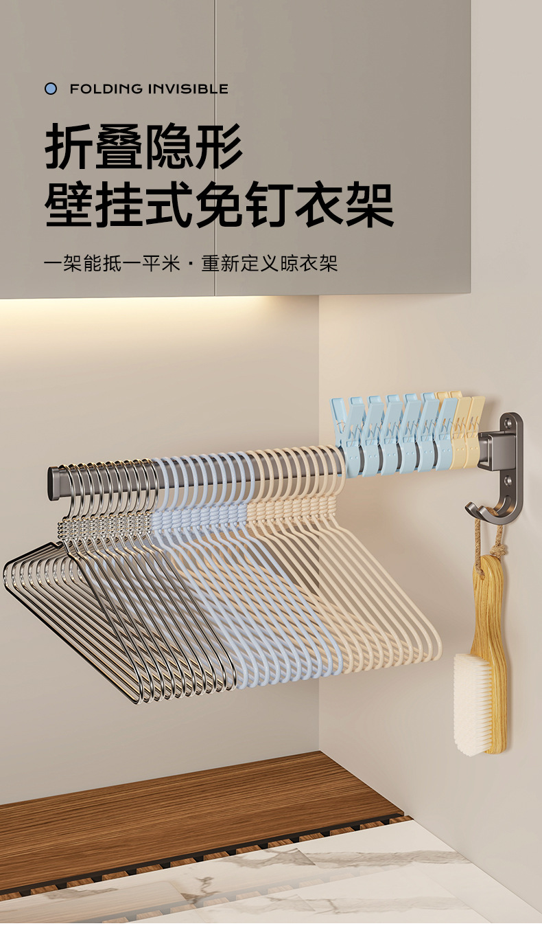 소스 공장 보관 유물 벽걸이형 펀치 없는 보관 랙 크리에이티브 의류 지지대 걸이 막대 두꺼운 가정용 의류 건조 랙