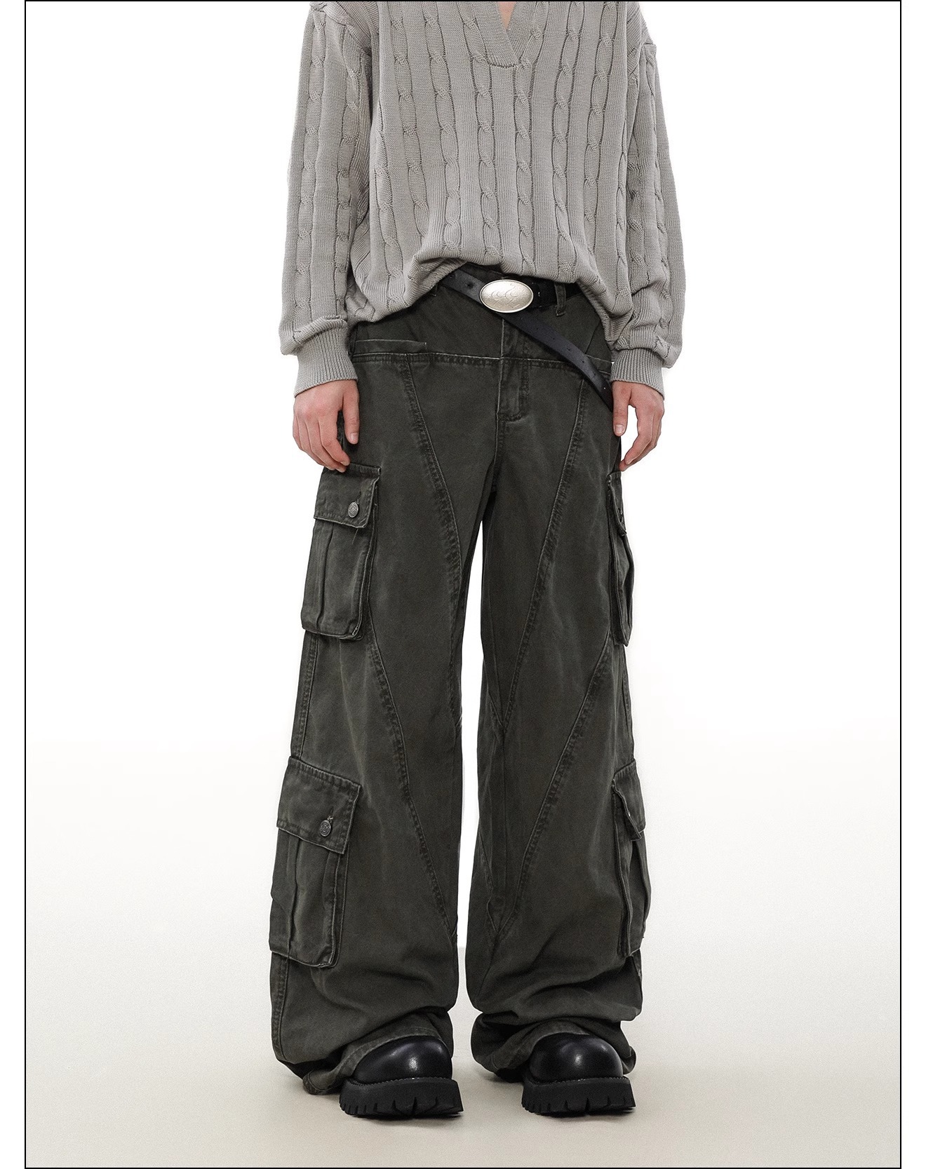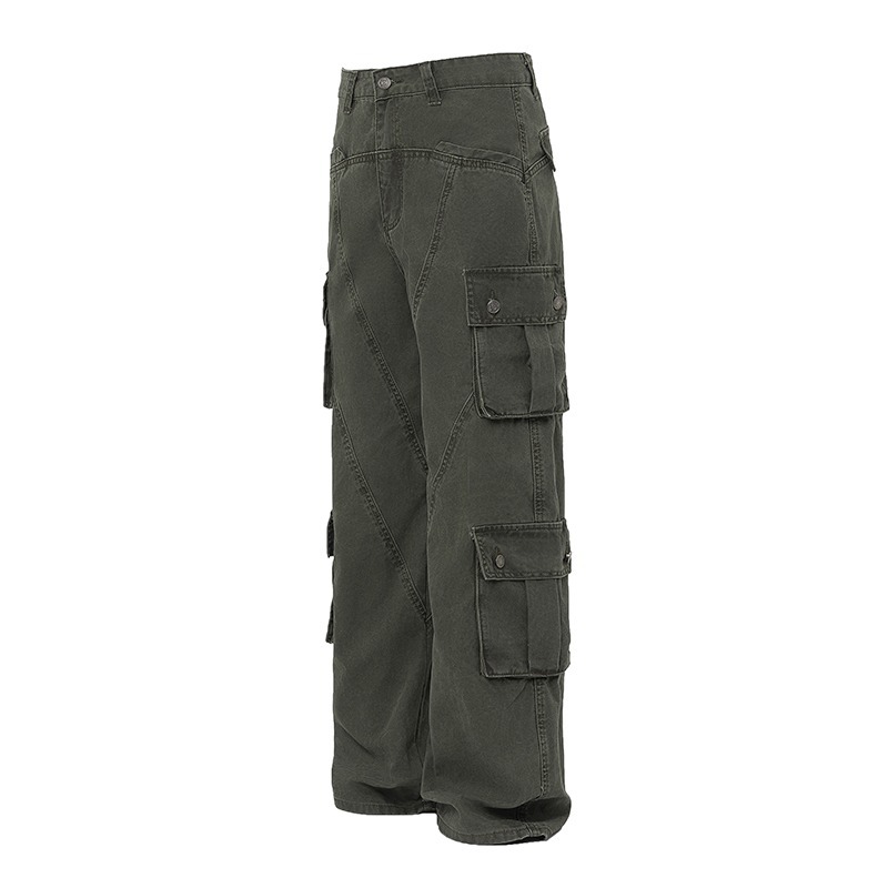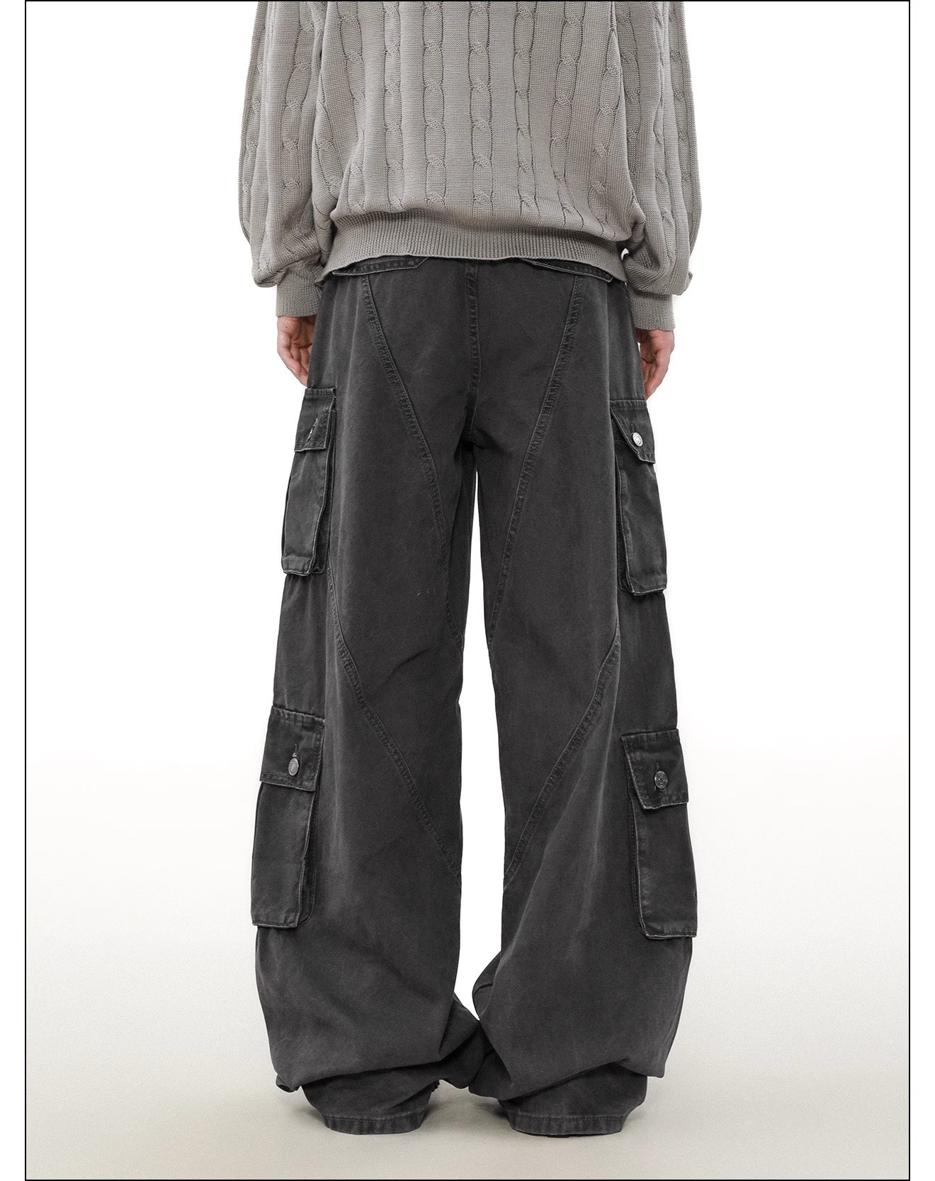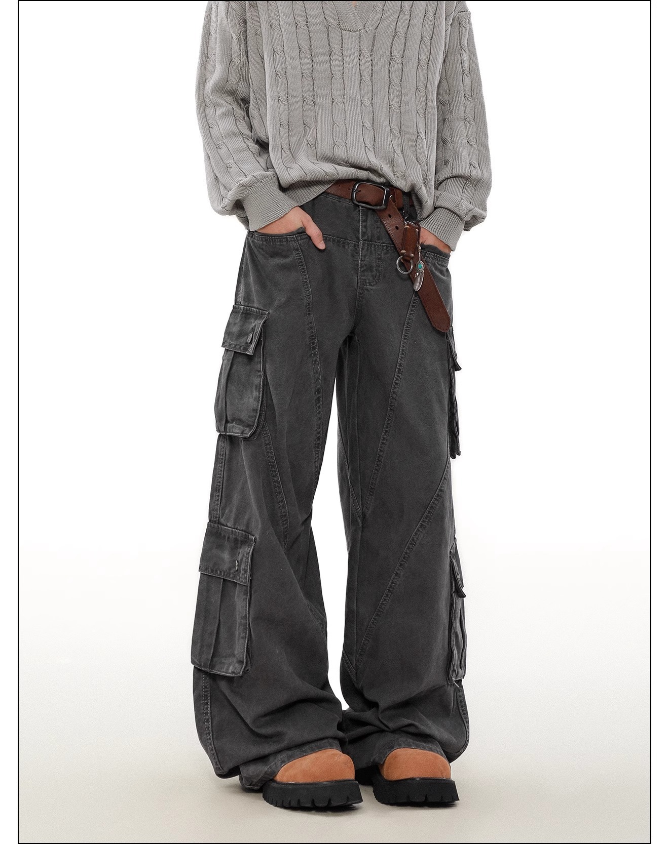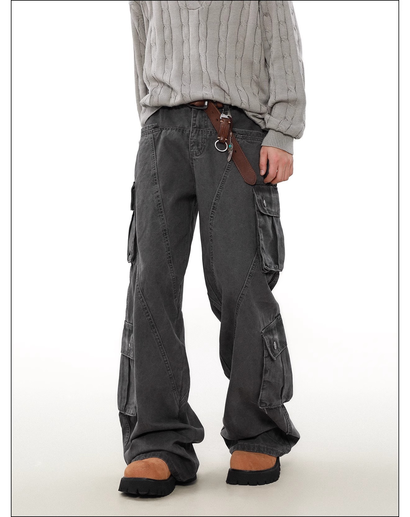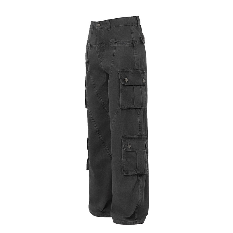 2025 남성과 여성을 위한 아메리칸 레트로 디컨스트럭티드 워크웨어 청바지, 루즈한 멀티 포켓 워싱 캐주얼 스트레이트 바이브 팬츠스토어 가기