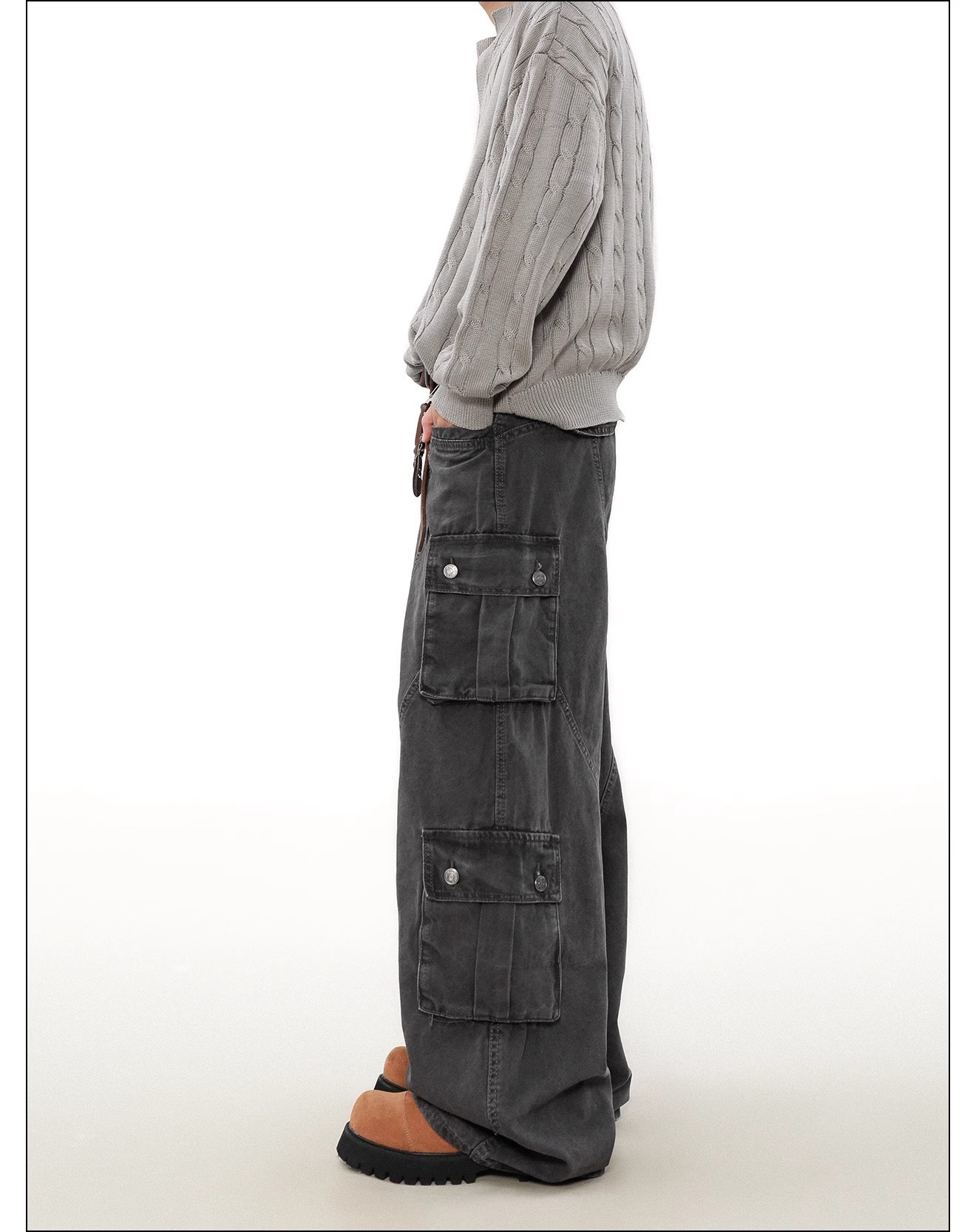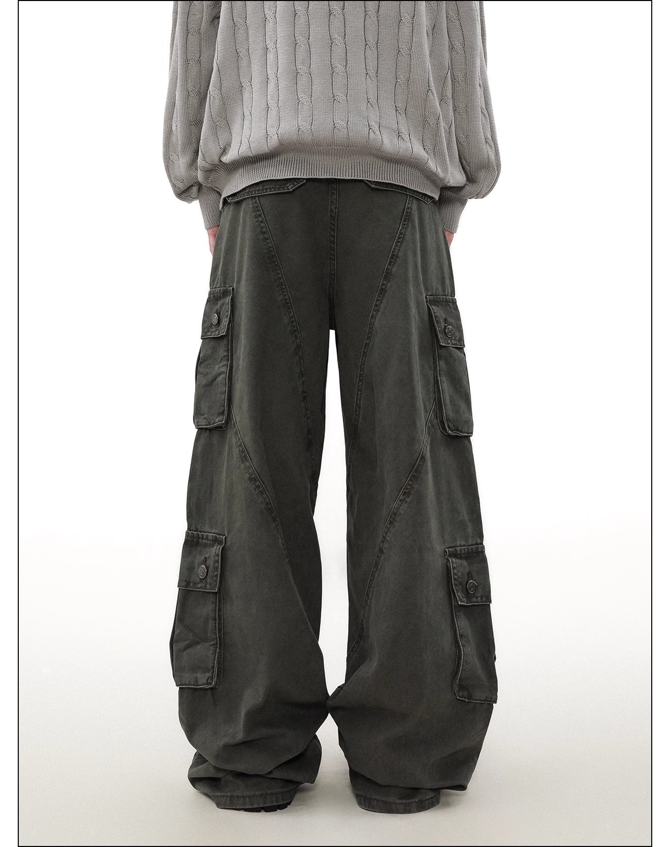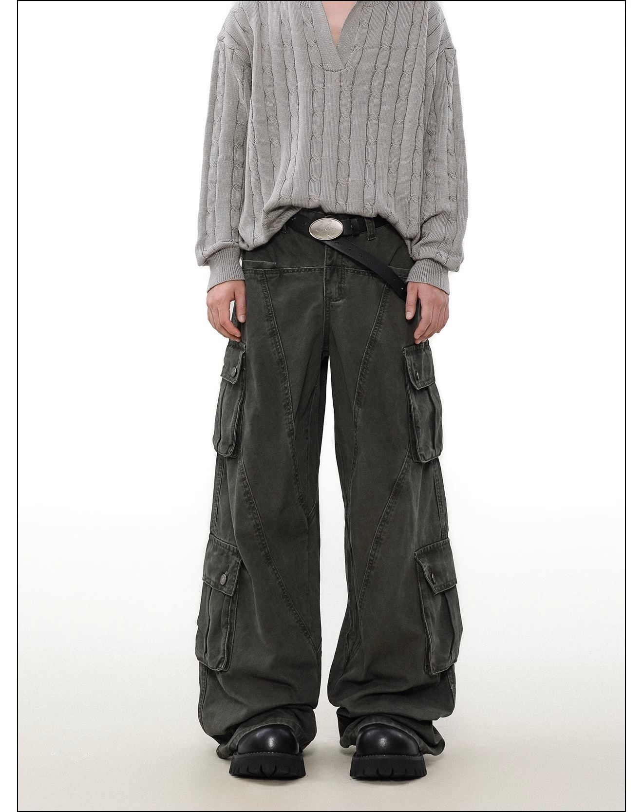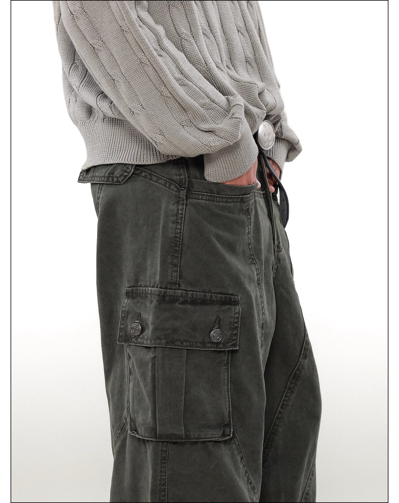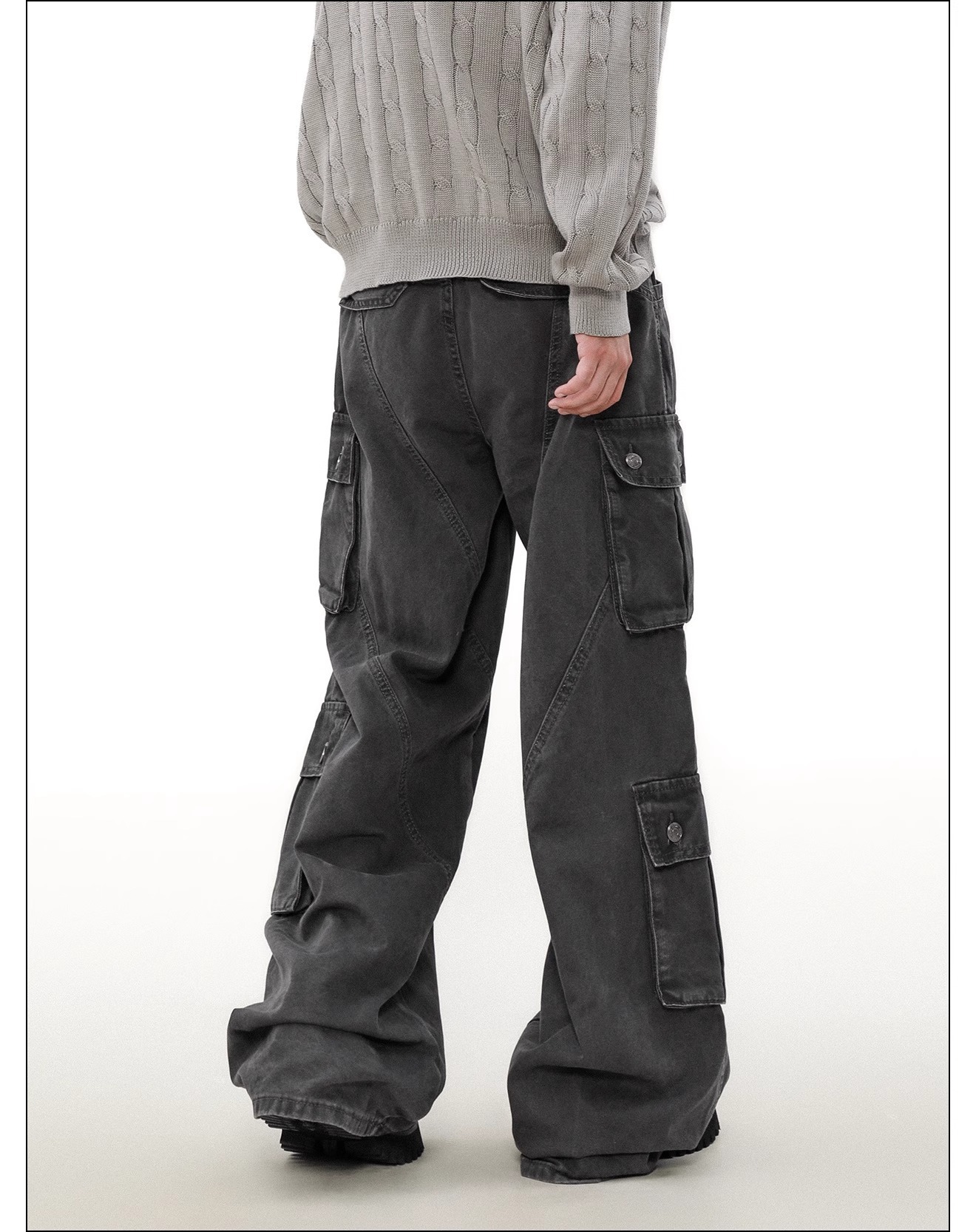 2025 남성과 여성을 위한 아메리칸 레트로 디컨스트럭티드 워크웨어 청바지, 루즈한 멀티 포켓 워싱 캐주얼 스트레이트 바이브 팬츠스토어 가기