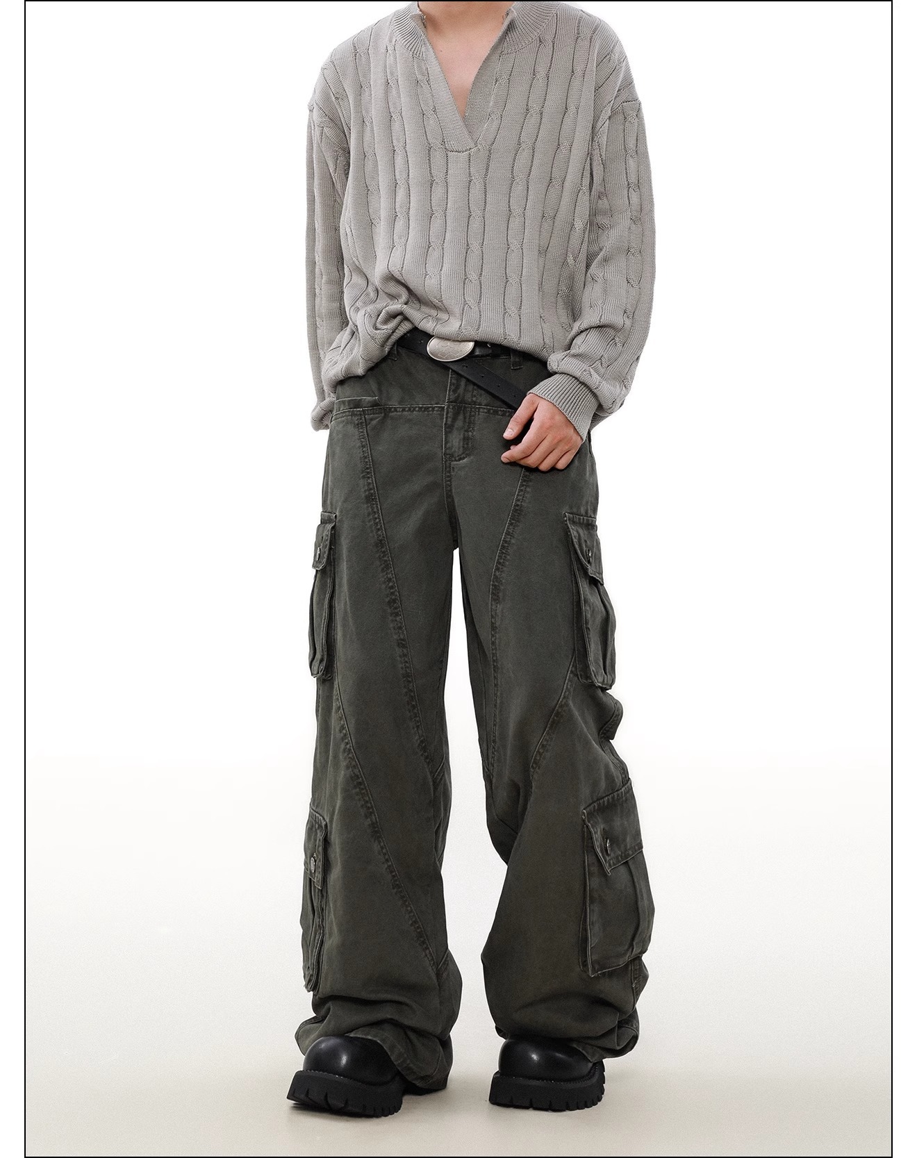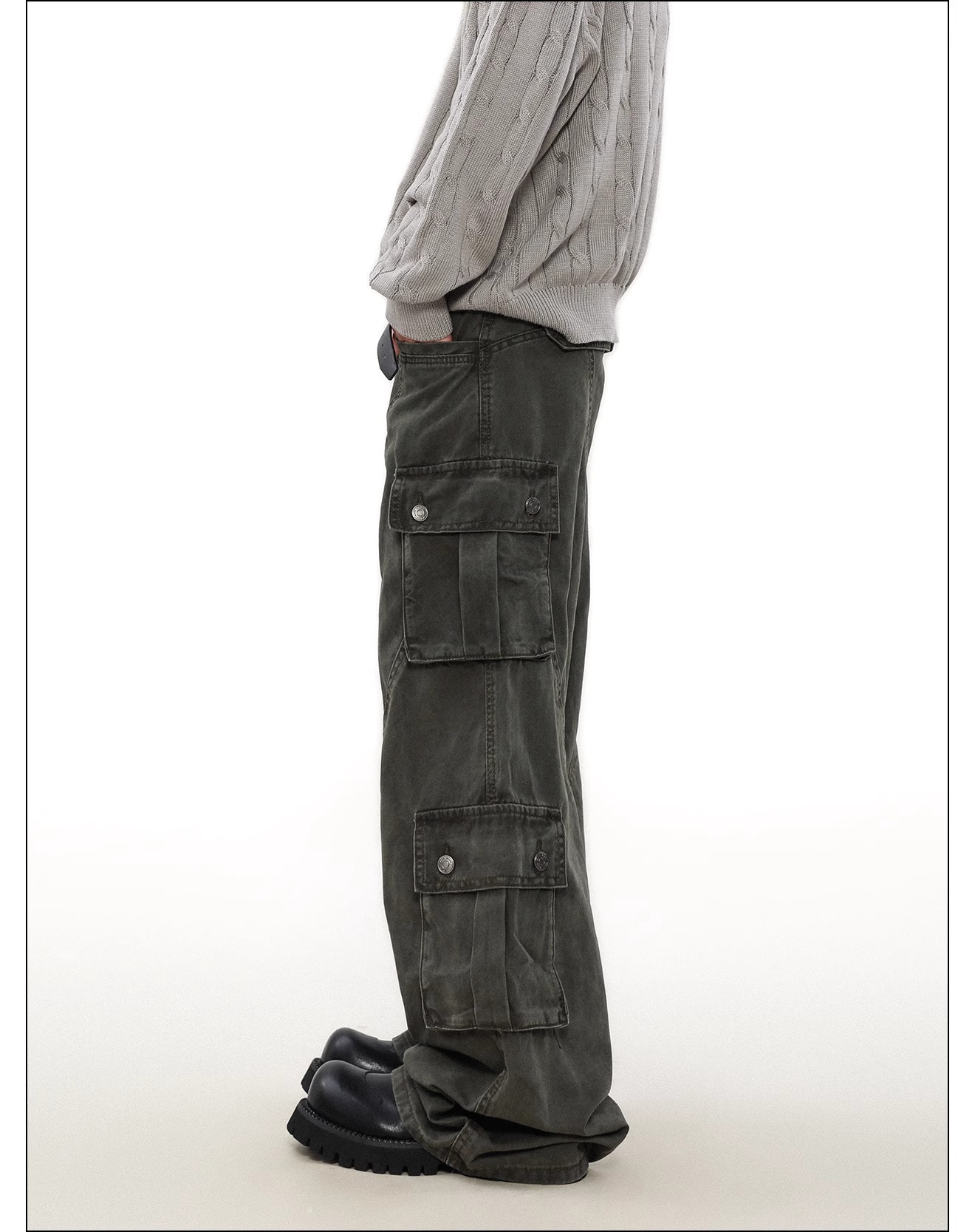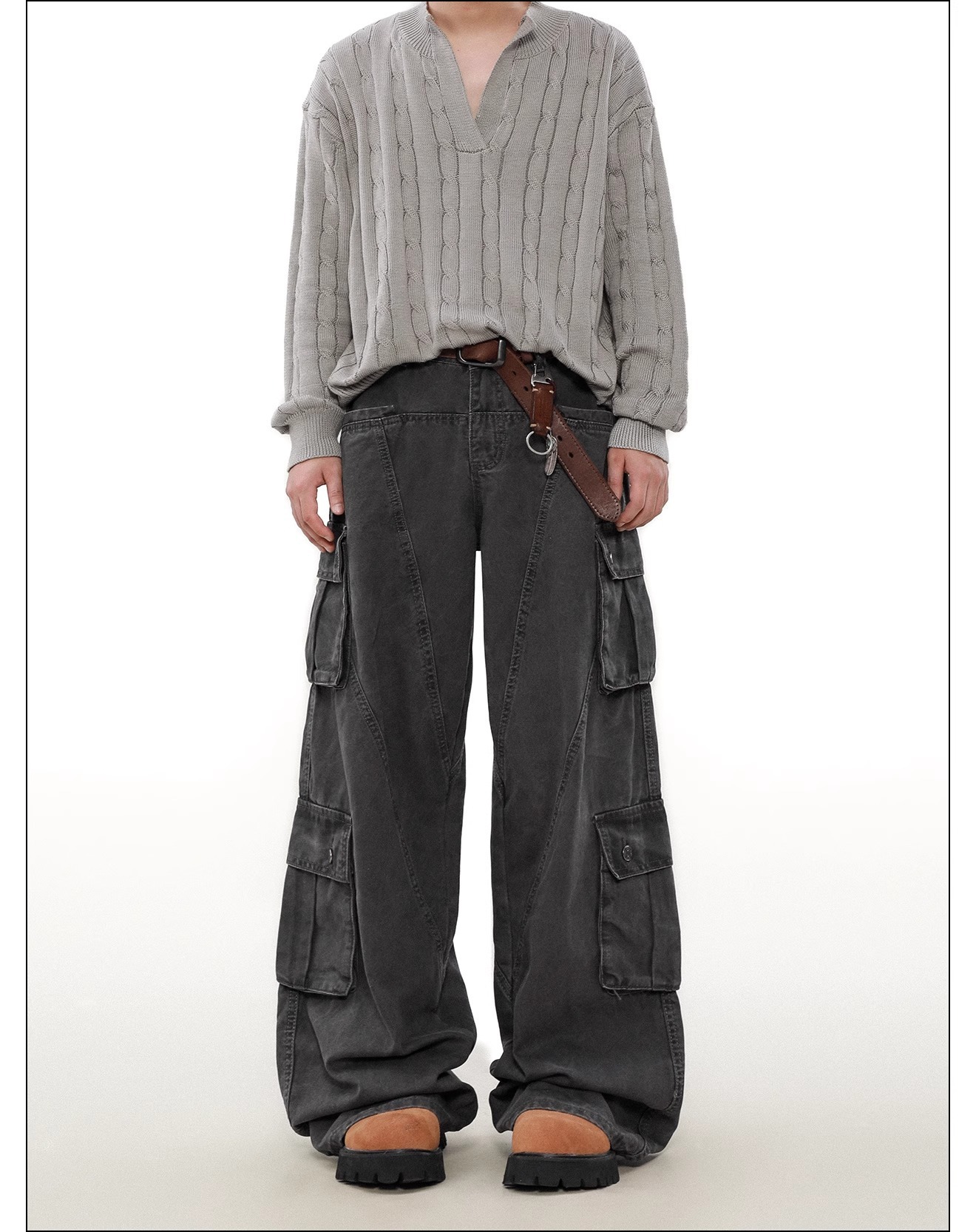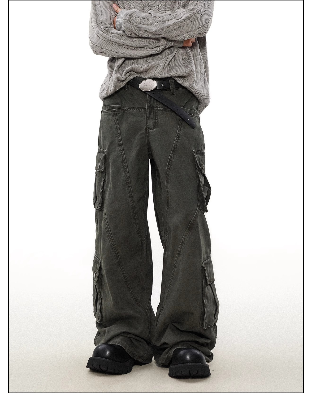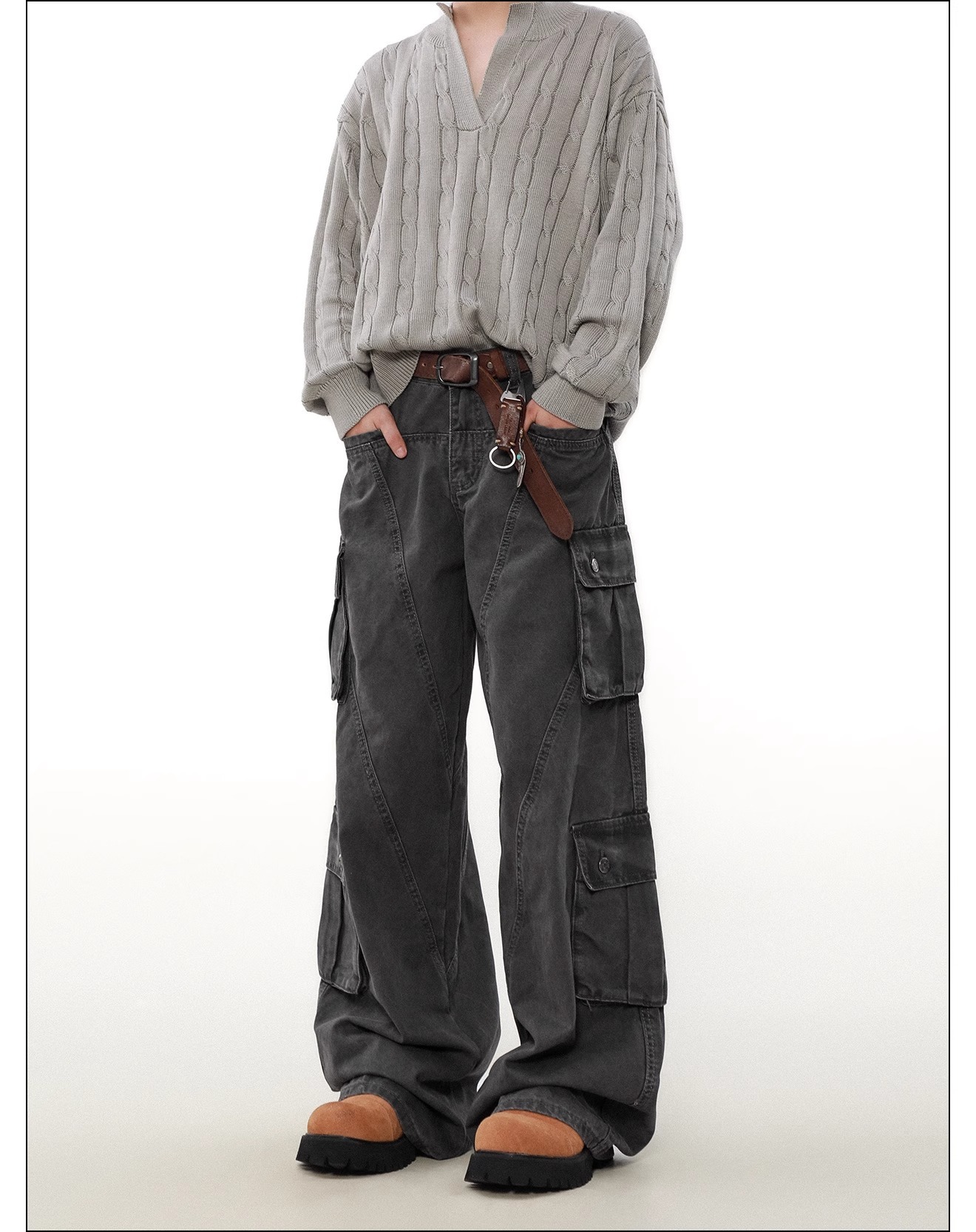 2025 남성과 여성을 위한 아메리칸 레트로 디컨스트럭티드 워크웨어 청바지, 루즈한 멀티 포켓 워싱 캐주얼 스트레이트 바이브 팬츠스토어 가기