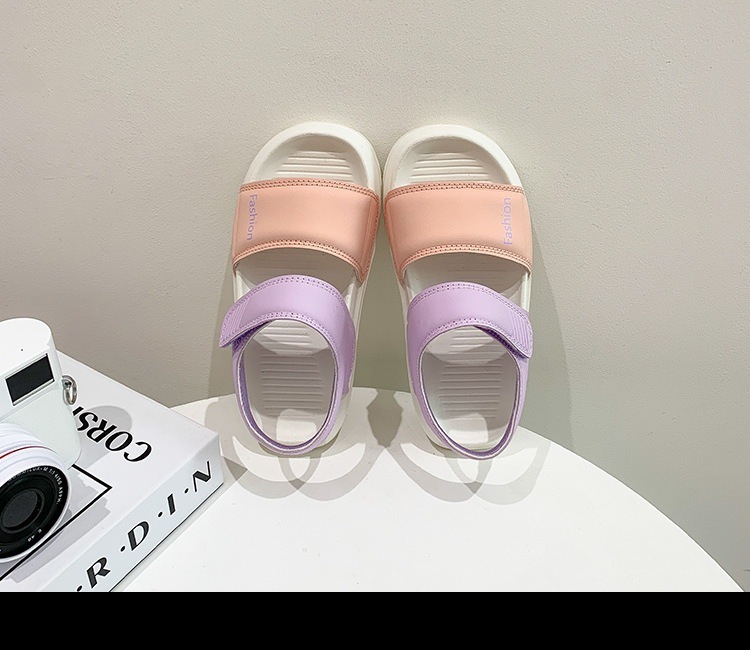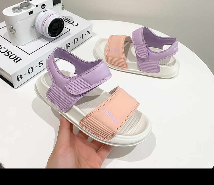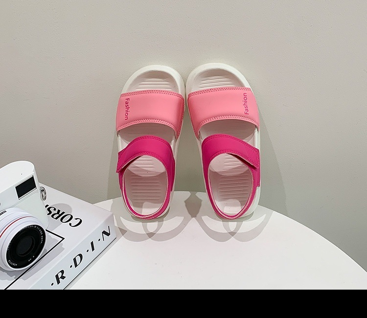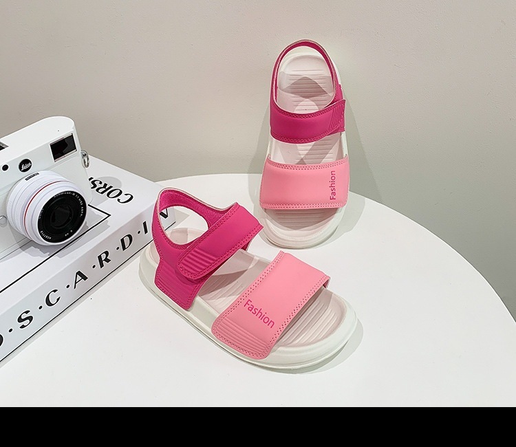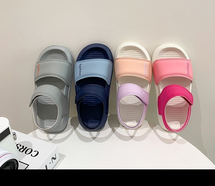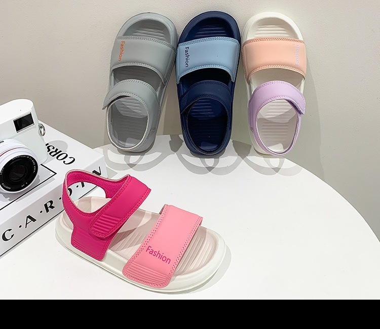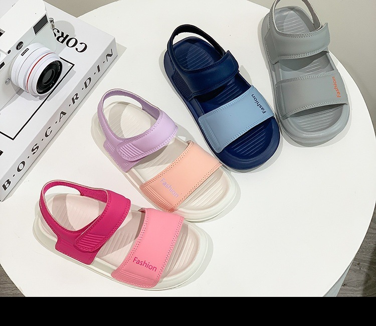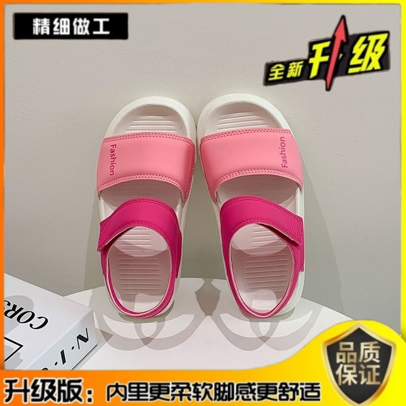 어린이 샌들 소녀 여름 신발 2024 새로운 스타일 중대형 어린이 미끄럼 방지 소프트 단독 비치 신발 어린 소녀 소년 신발스토어 가기
