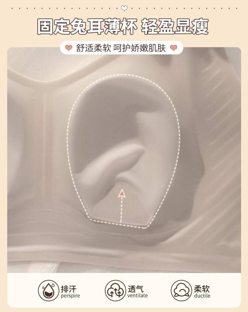 여름 얇은 추적없는 큰 가슴 작은 속옷 여성 토끼 귀 플러스 사이즈 비 강철 반지 유방 방첩 브래지어