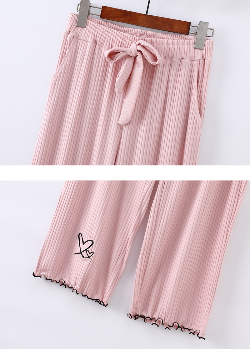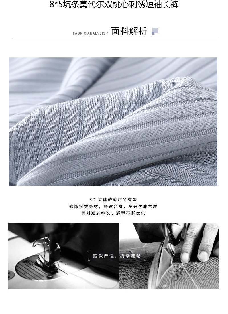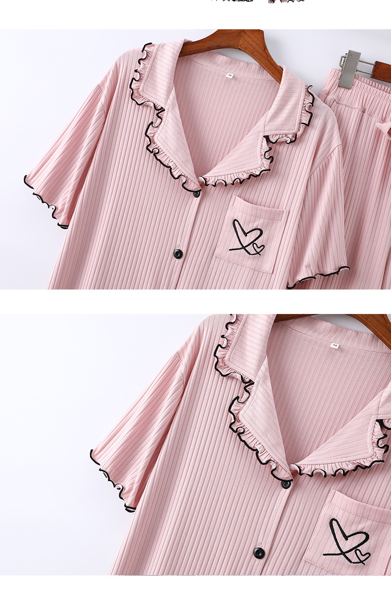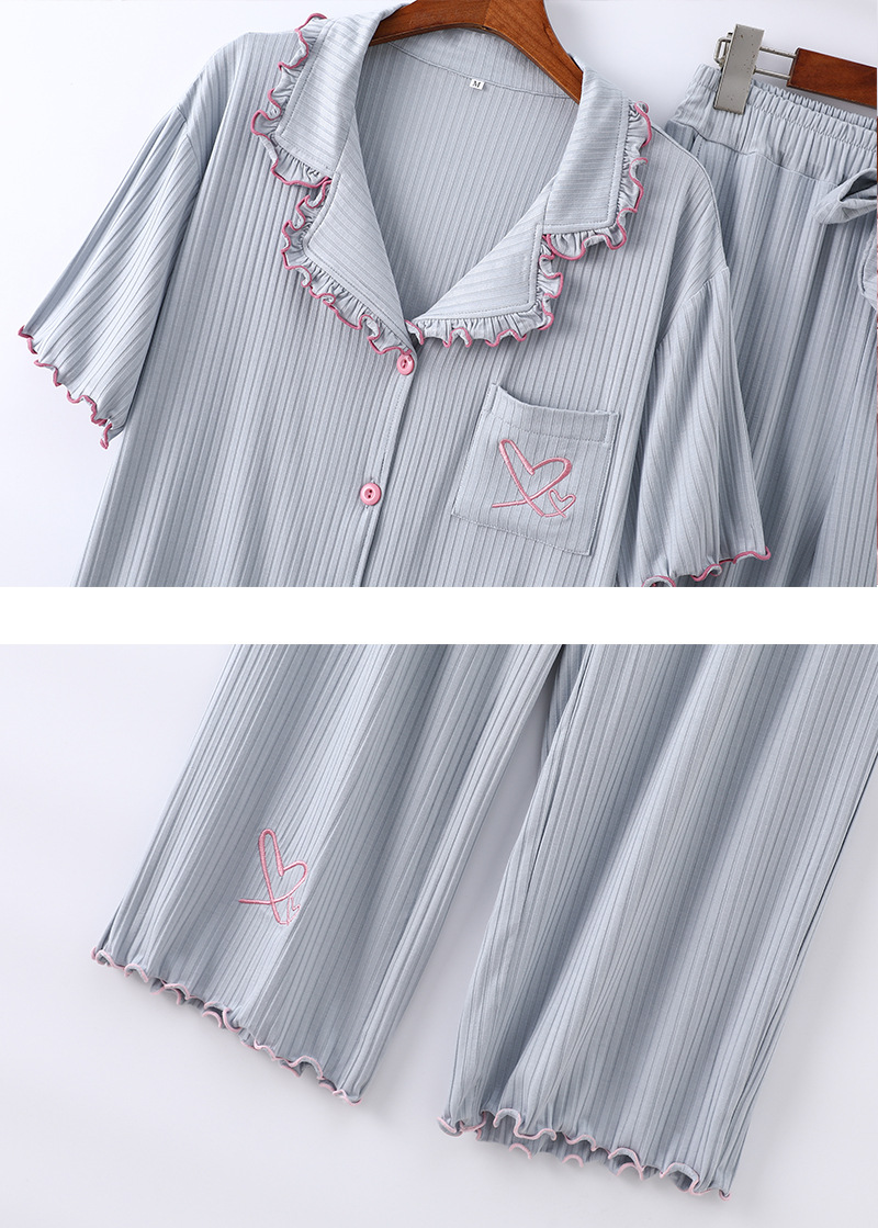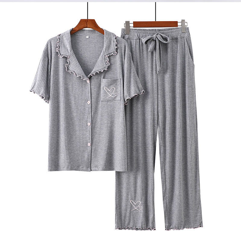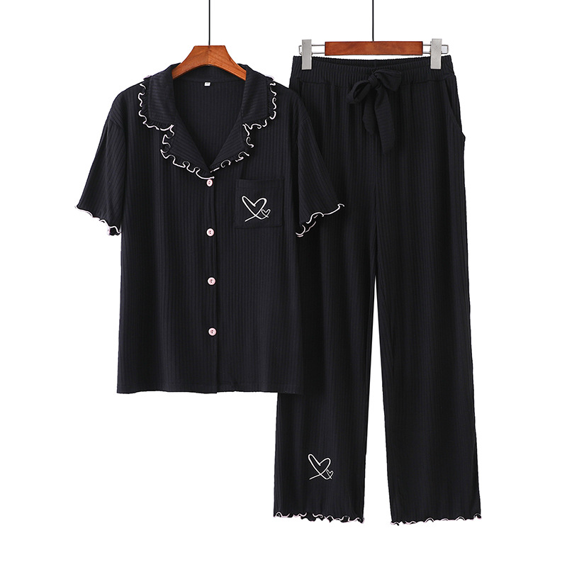 2025 여름 잠옷 여성 8*5 피트 모달 바지 짧은 소매 더블 사랑 자수 카디건 옷깃 홈 옷