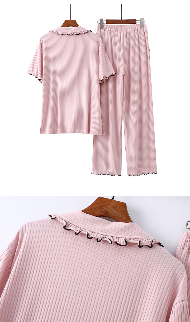 2025 여름 잠옷 여성 8*5 피트 모달 바지 짧은 소매 더블 사랑 자수 카디건 옷깃 홈 옷스토어 가기