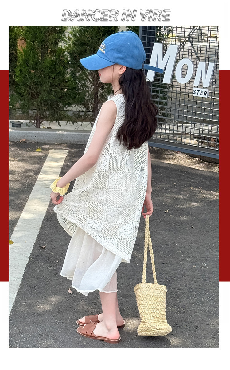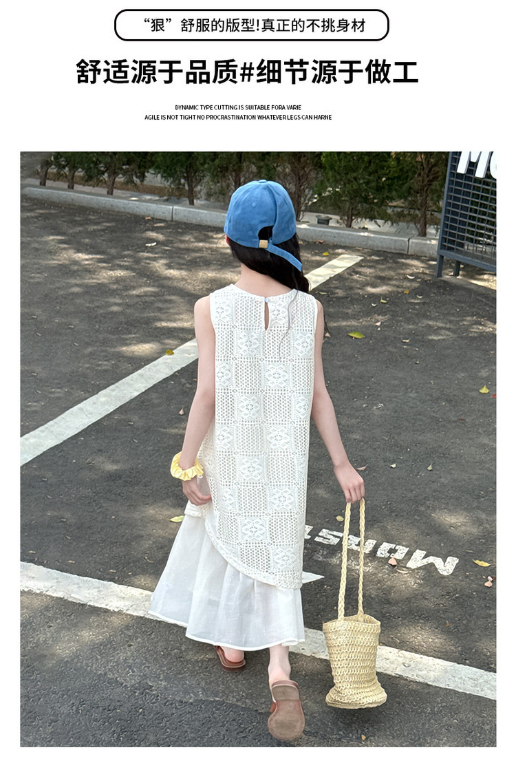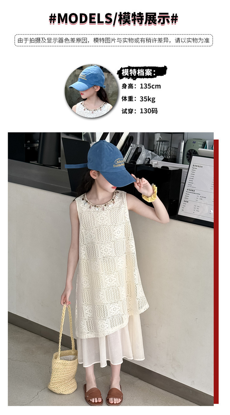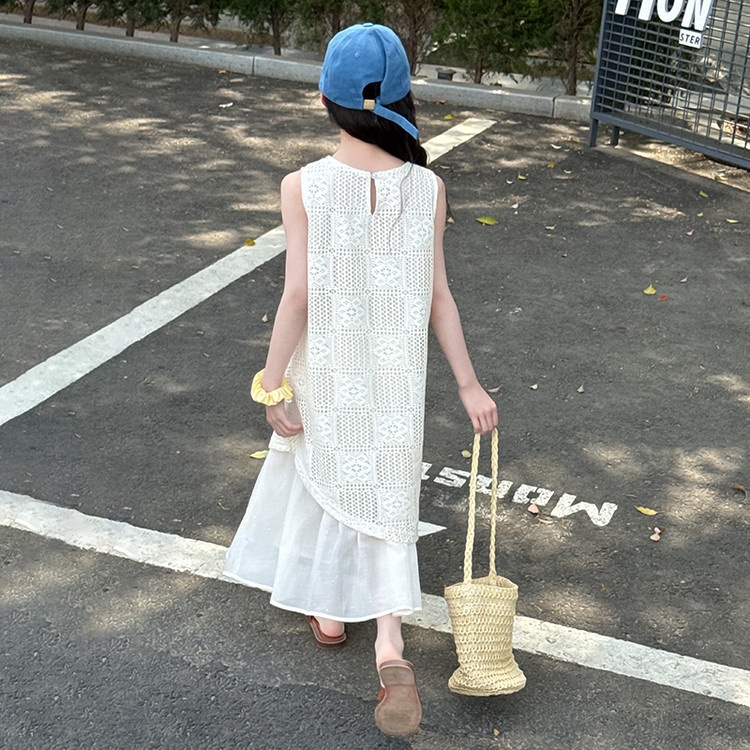 여자 드레스 2025 여름 새로운 스타일 중대형 어린이 스타일 레이스 스플 라이스 스커트 보헤미안 스타일 롱 스커트 여름스토어 가기