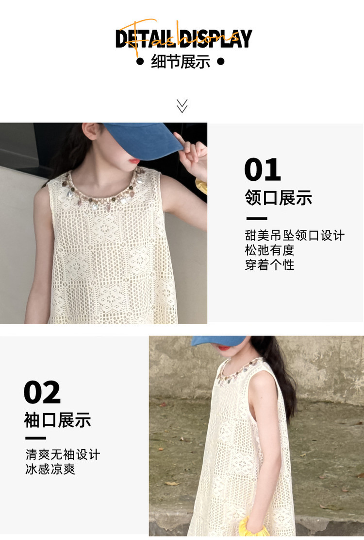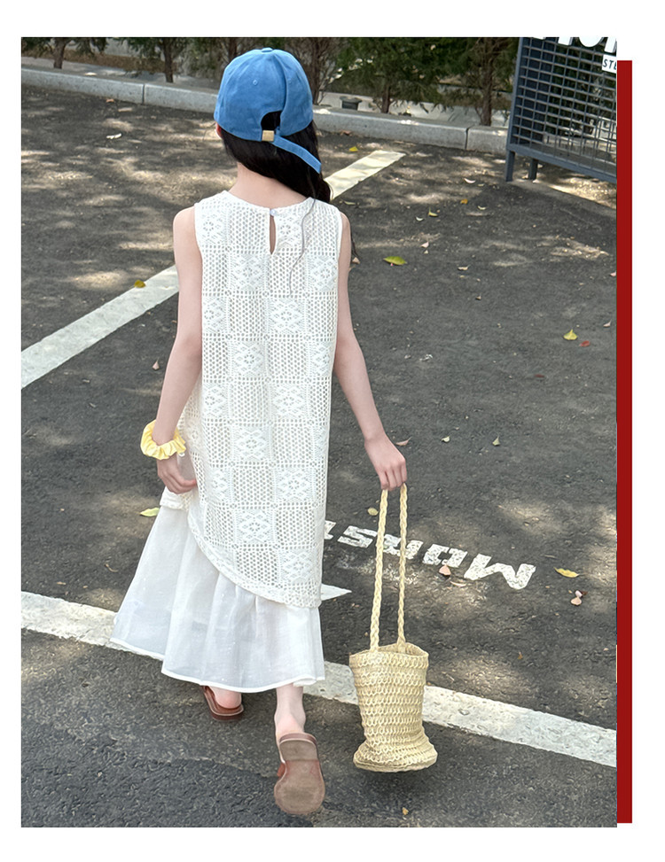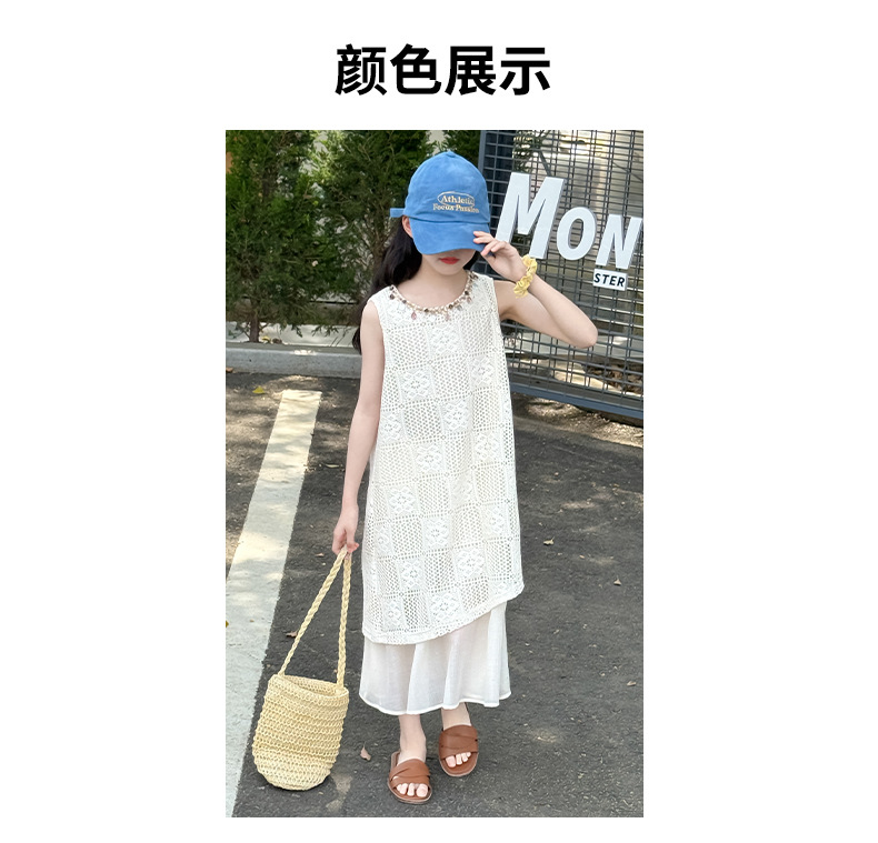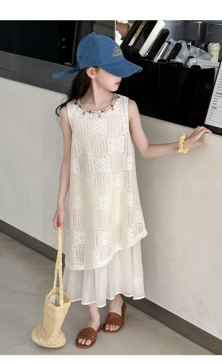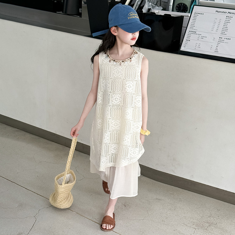 여자 드레스 2025 여름 새로운 스타일 중대형 어린이 스타일 레이스 스플 라이스 스커트 보헤미안 스타일 롱 스커트 여름스토어 가기