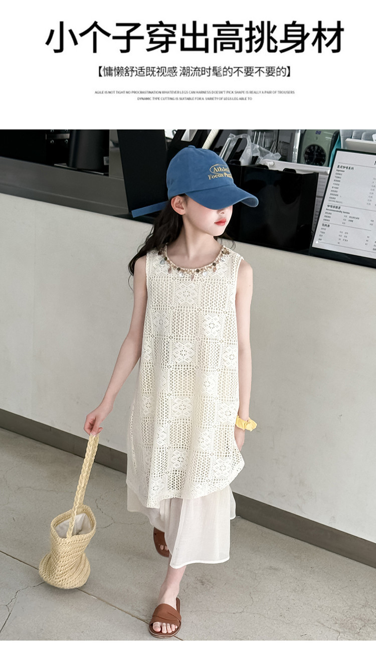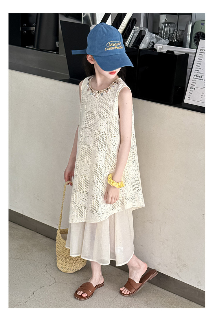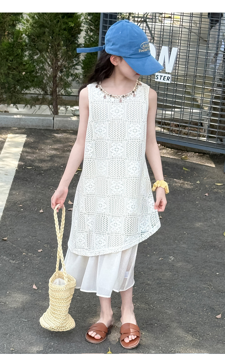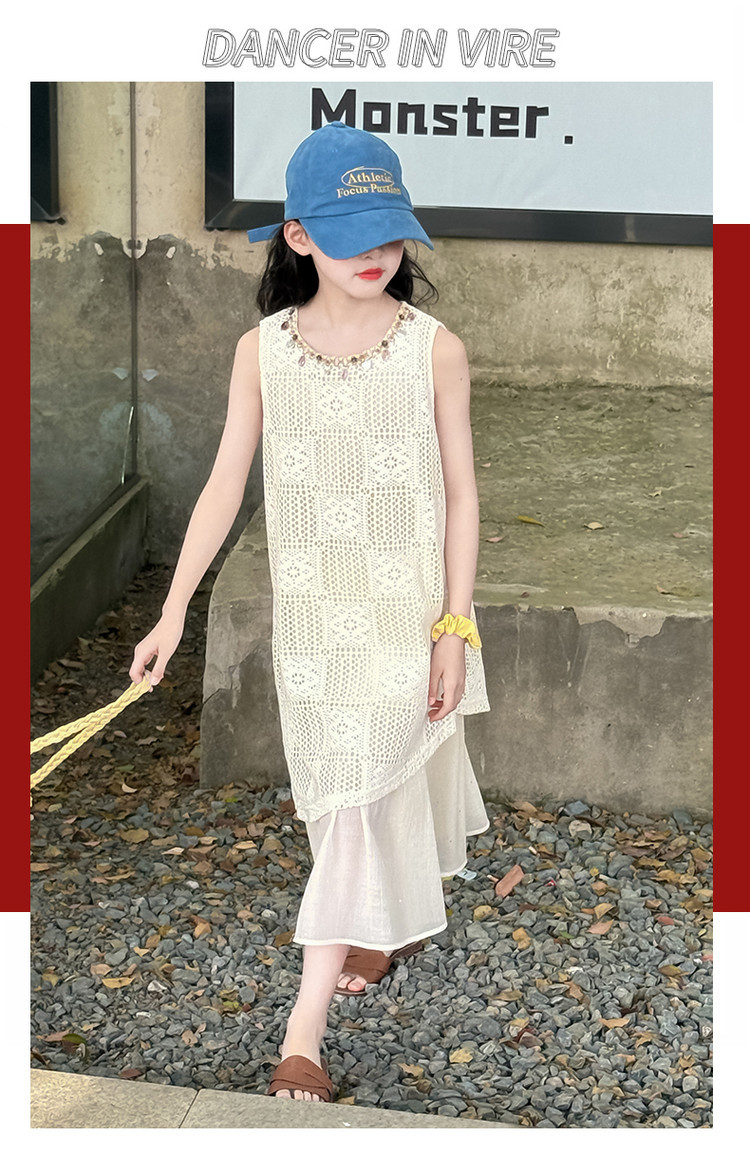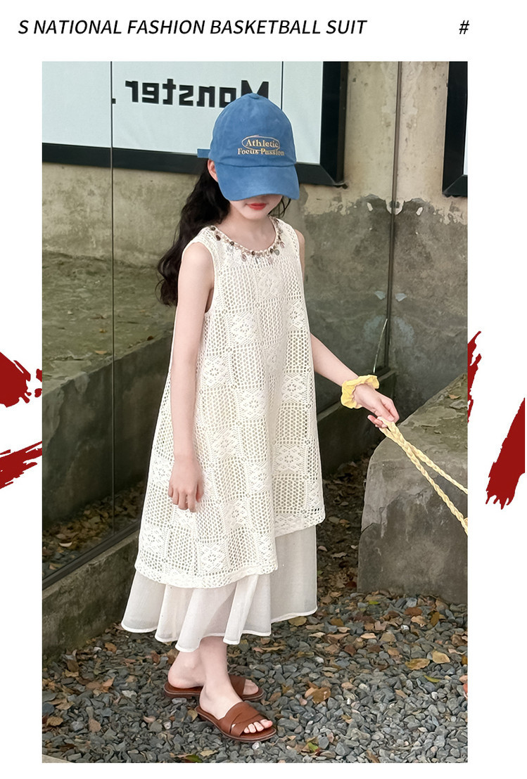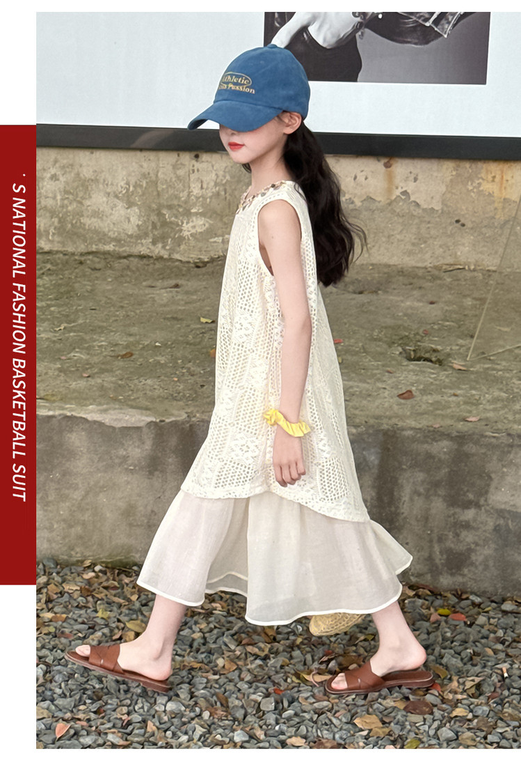 여자 드레스 2025 여름 새로운 스타일 중대형 어린이 스타일 레이스 스플 라이스 스커트 보헤미안 스타일 롱 스커트 여름