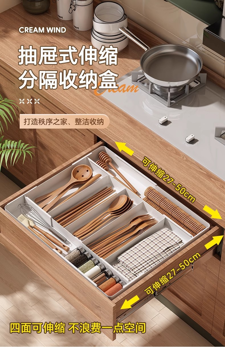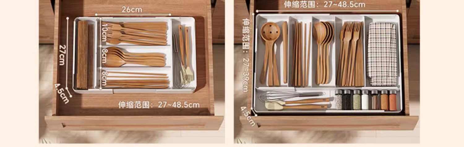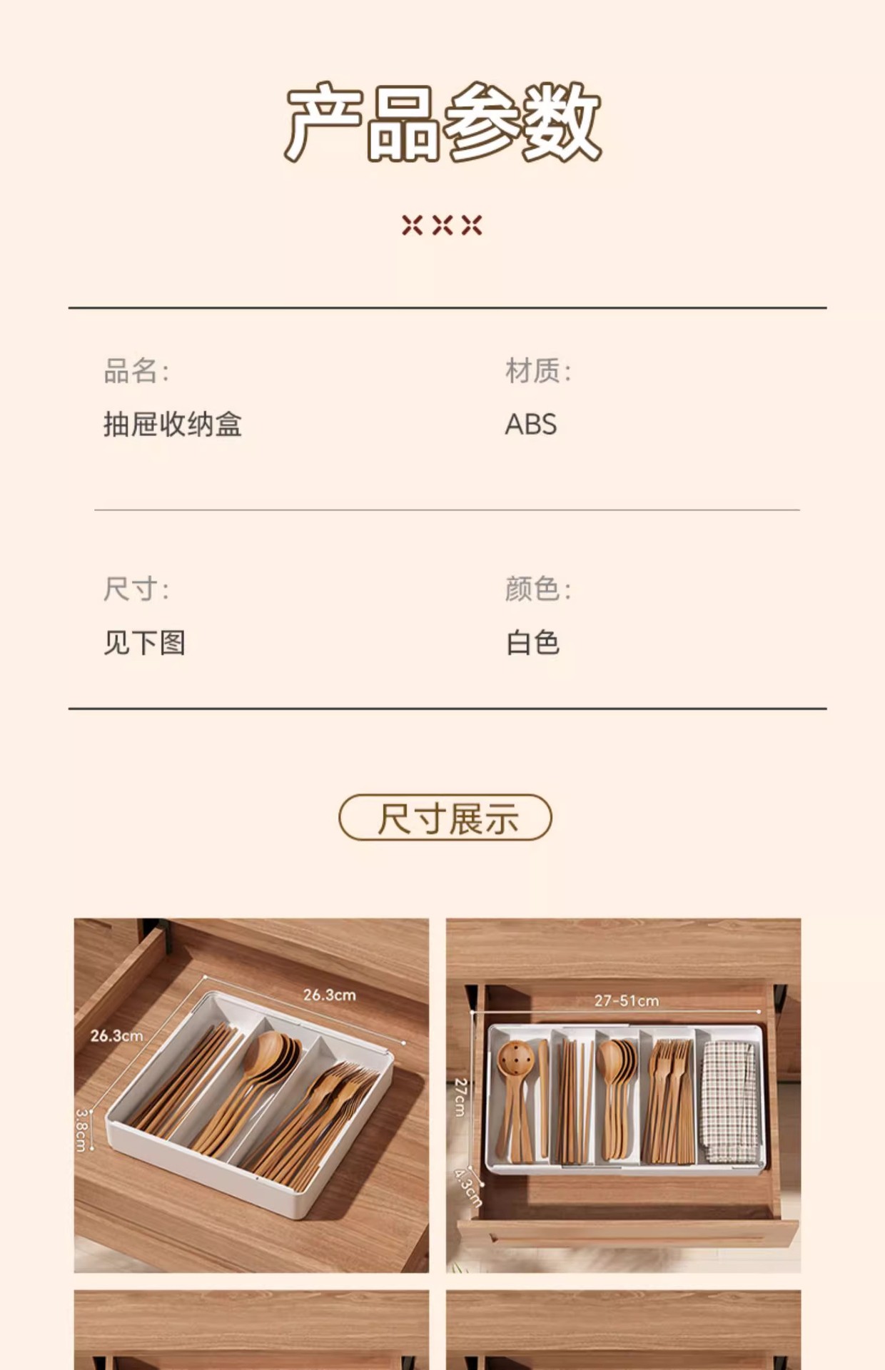 서랍 저장 상자 가정용 주방 다기능 플라스틱 개폐식 구획 잡화 식기 젓가락 숟가락 마무리 상자