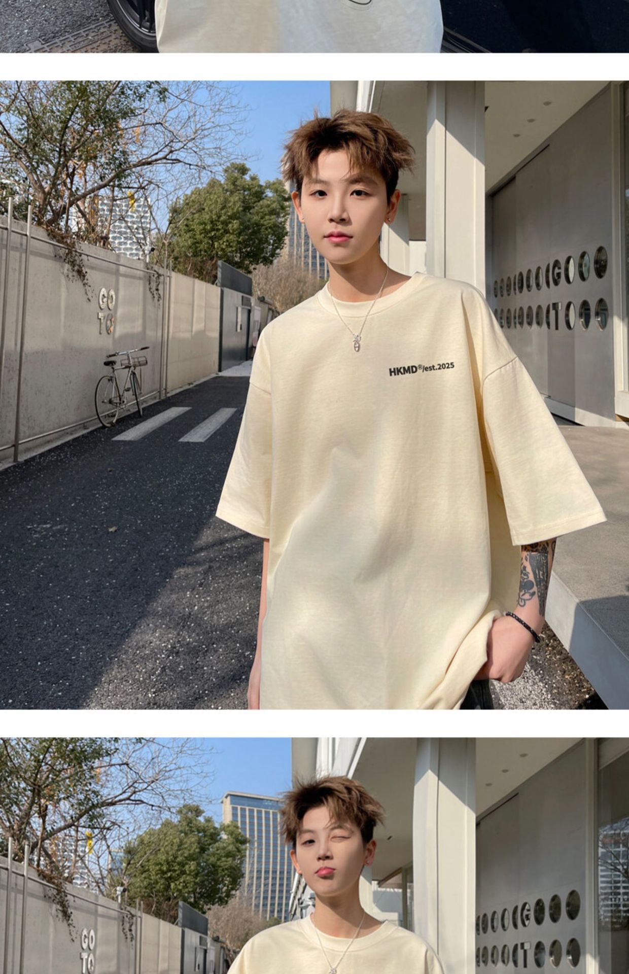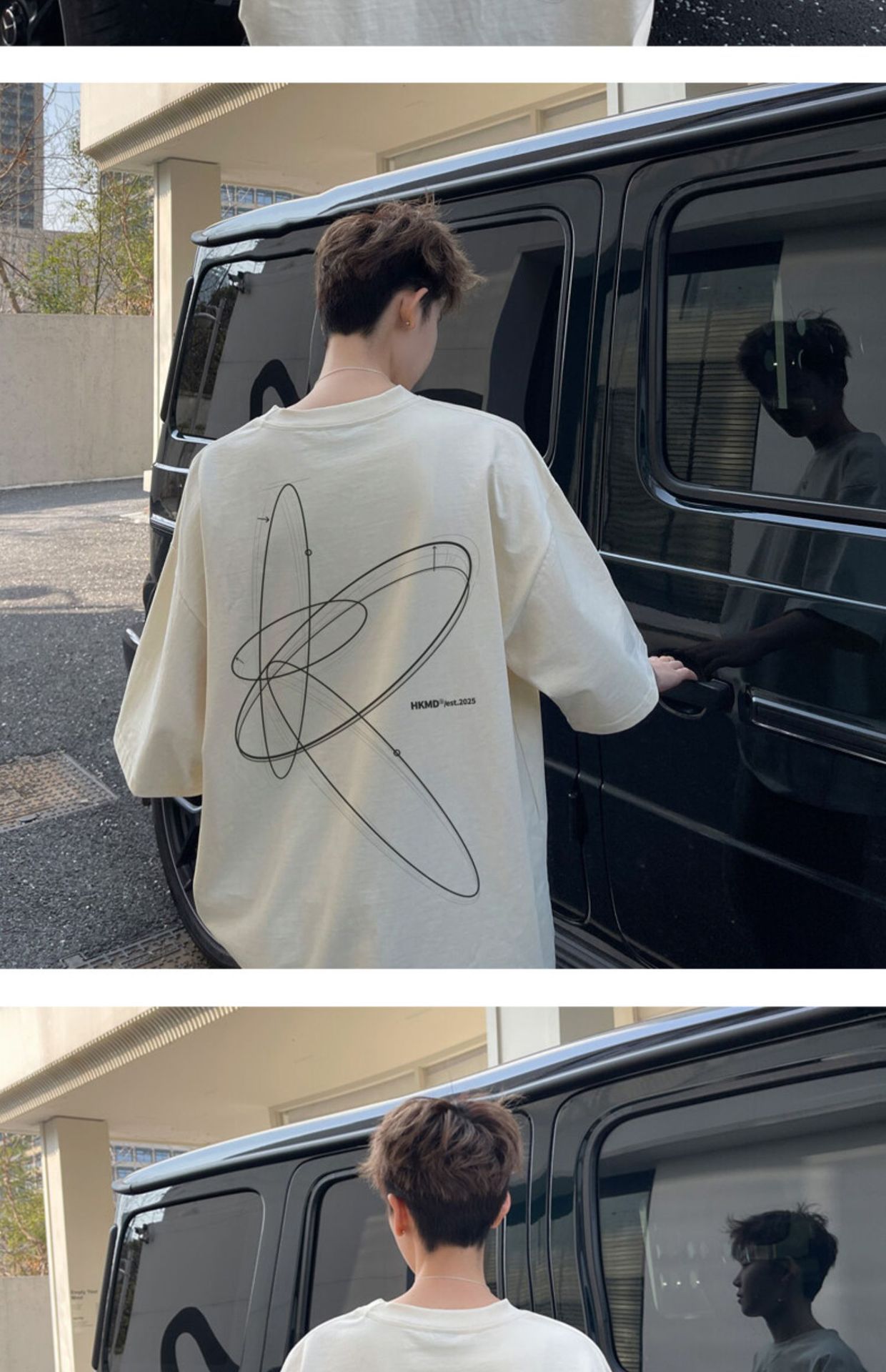 기하학적 패턴 인쇄 라운드 넥 하프 슬리브 티셔츠 남성 2025 여름 OTD는 아메리칸 스타일 헤비 코튼 하프 슬리브를 착용합니다.스토어 가기