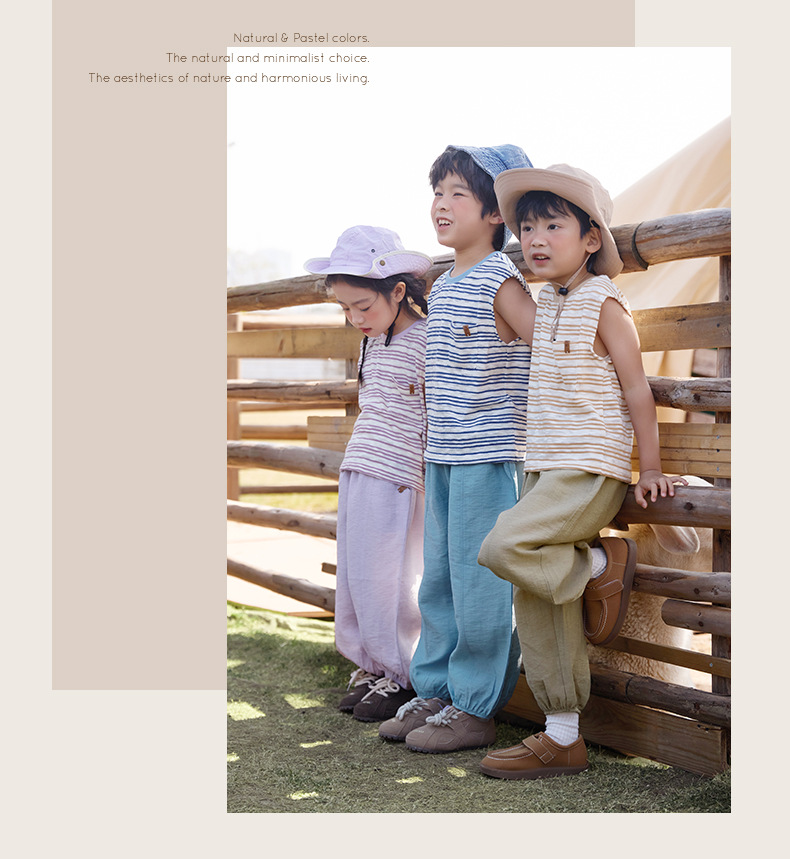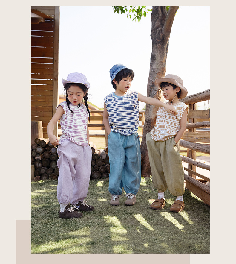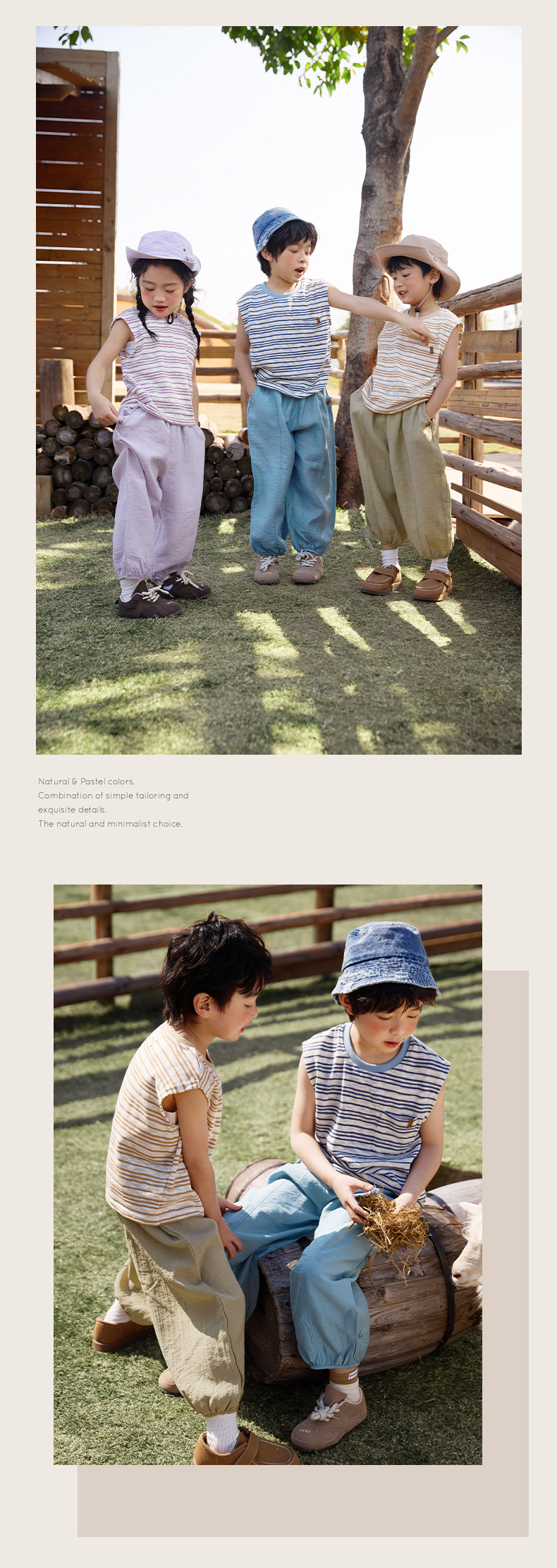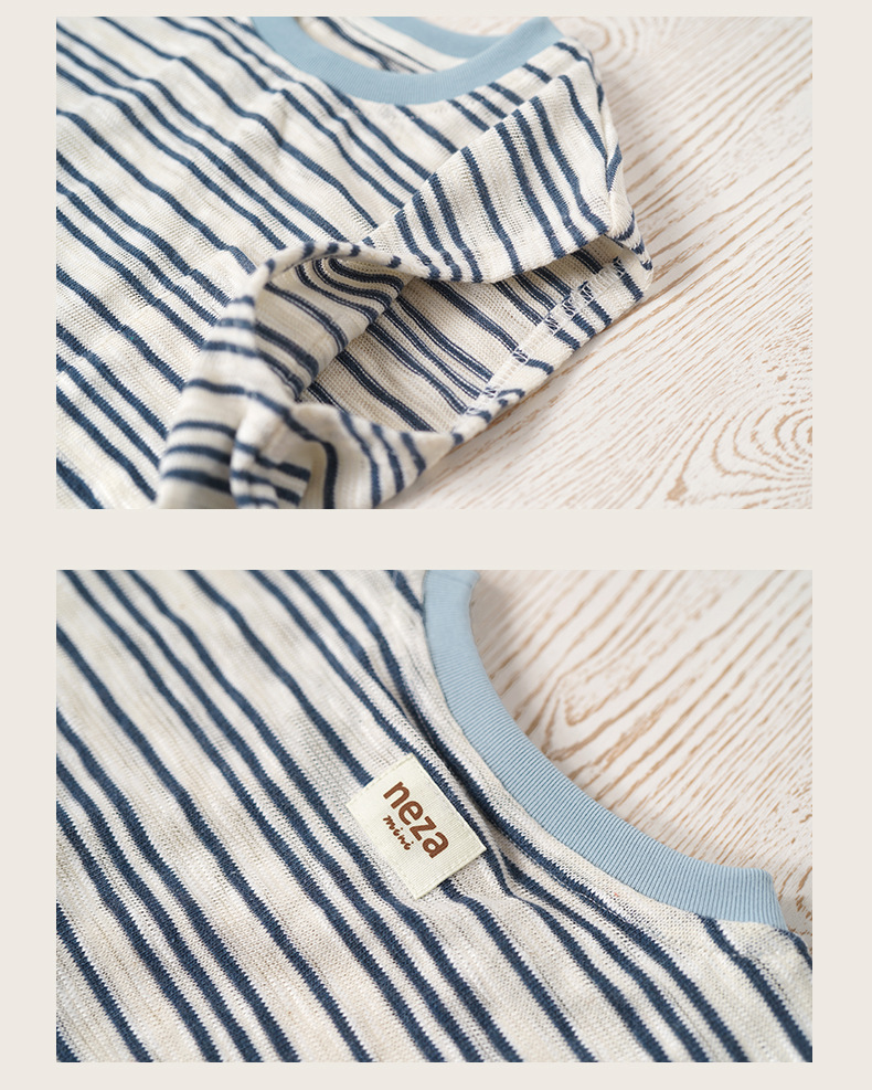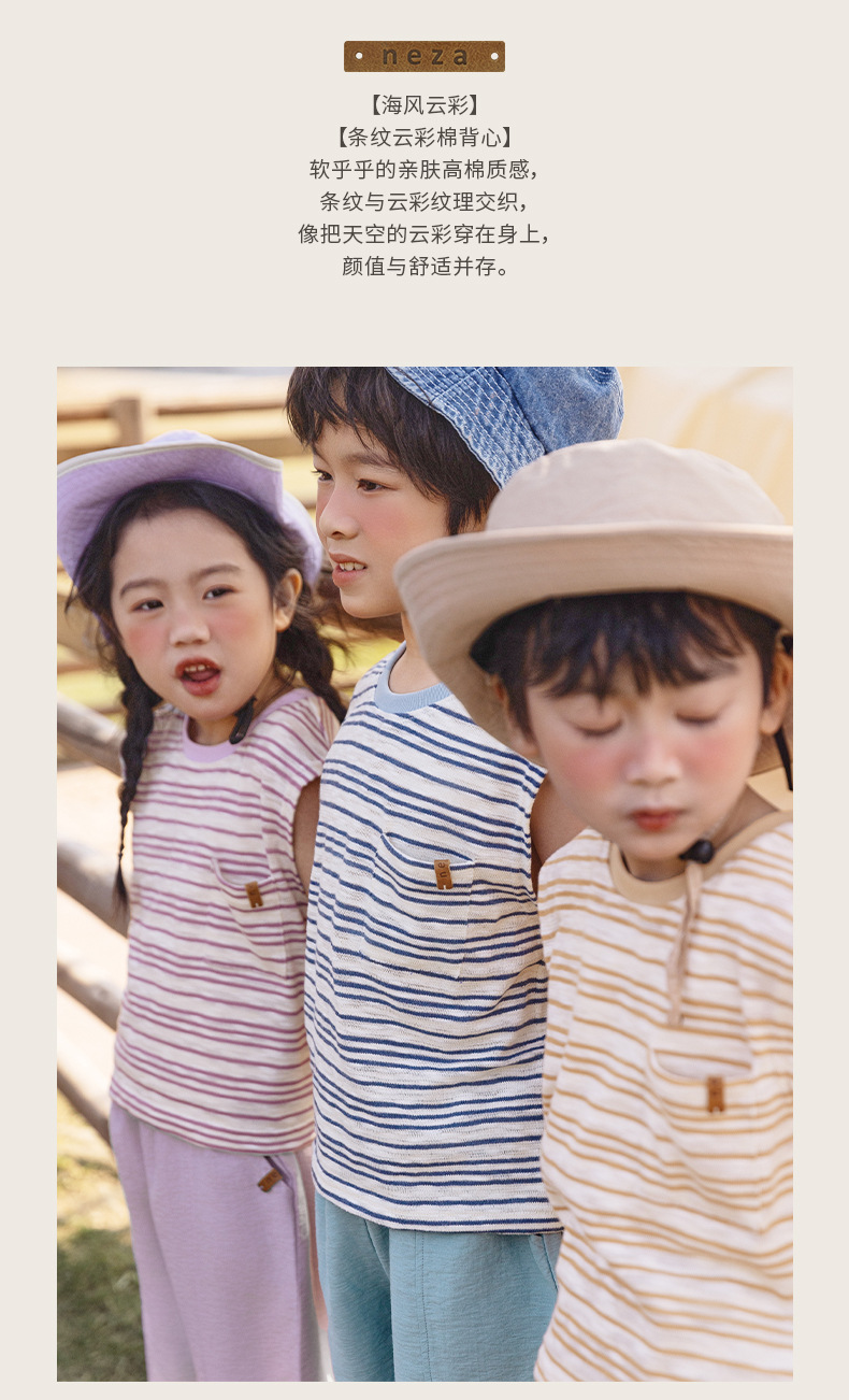 Neza [바다 바람 구름] 어린이 티셔츠 여름 소녀 여름 조끼 줄무늬 티셔츠 얇은 소년 티셔츠 여름