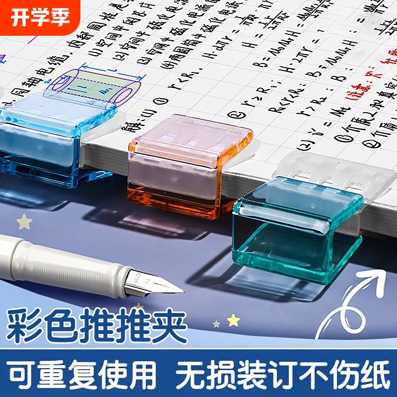 푸시 클립 투명 컬러 소형 클립 사무실 문서 슬라이드 클립 학생 시험지 데이터 저장 고정 푸시 클립