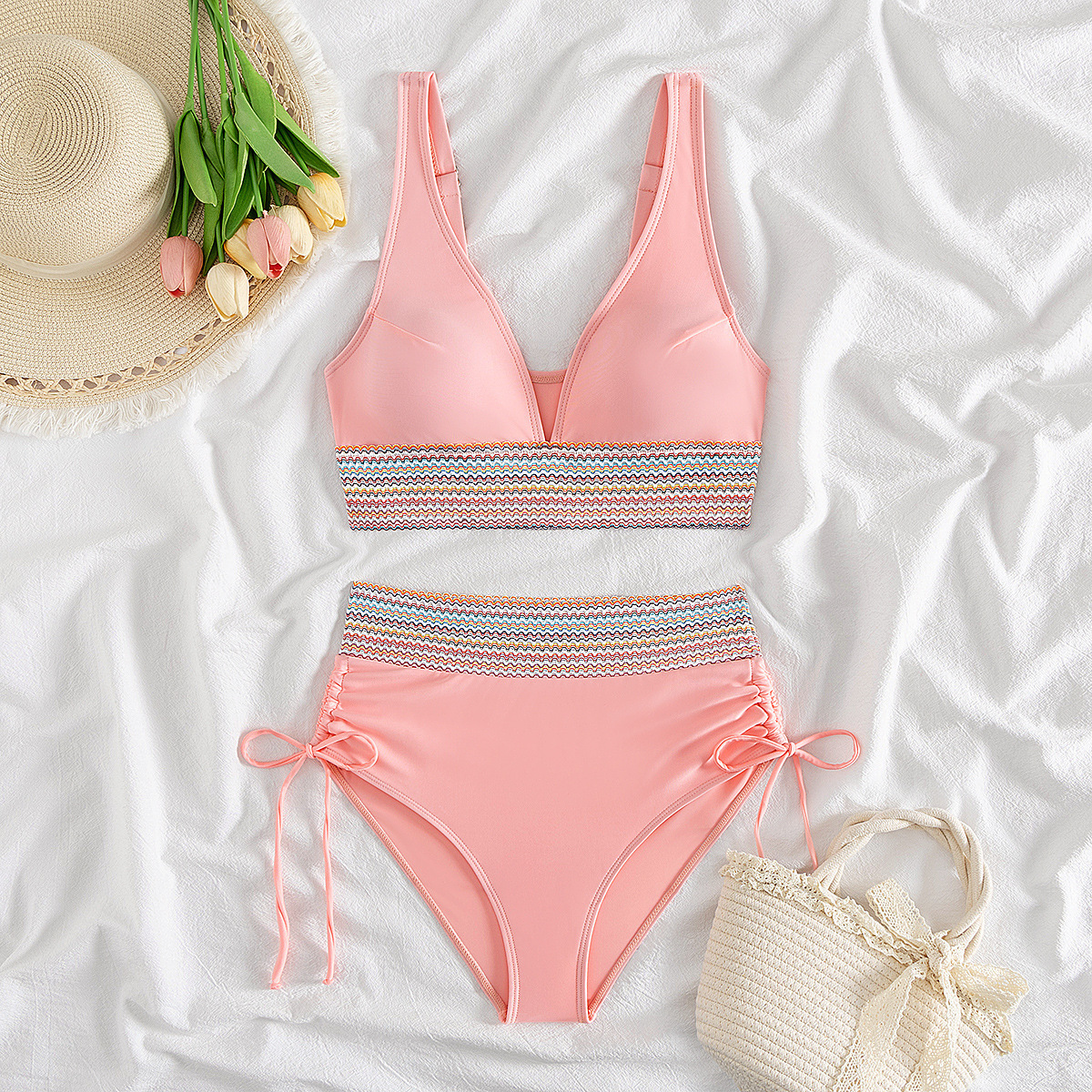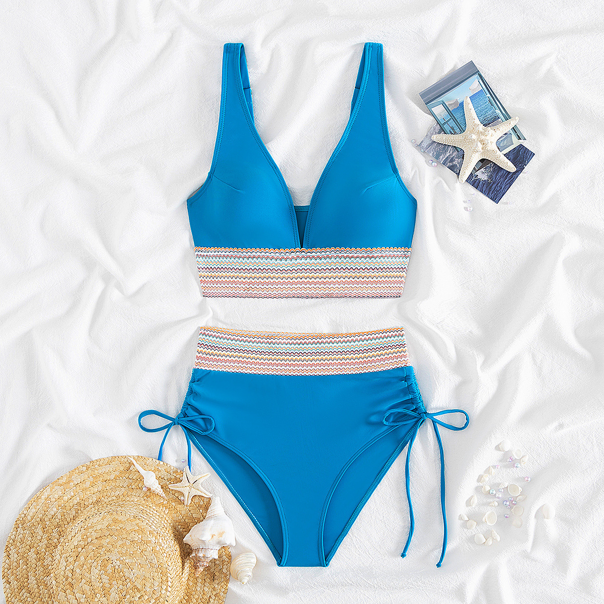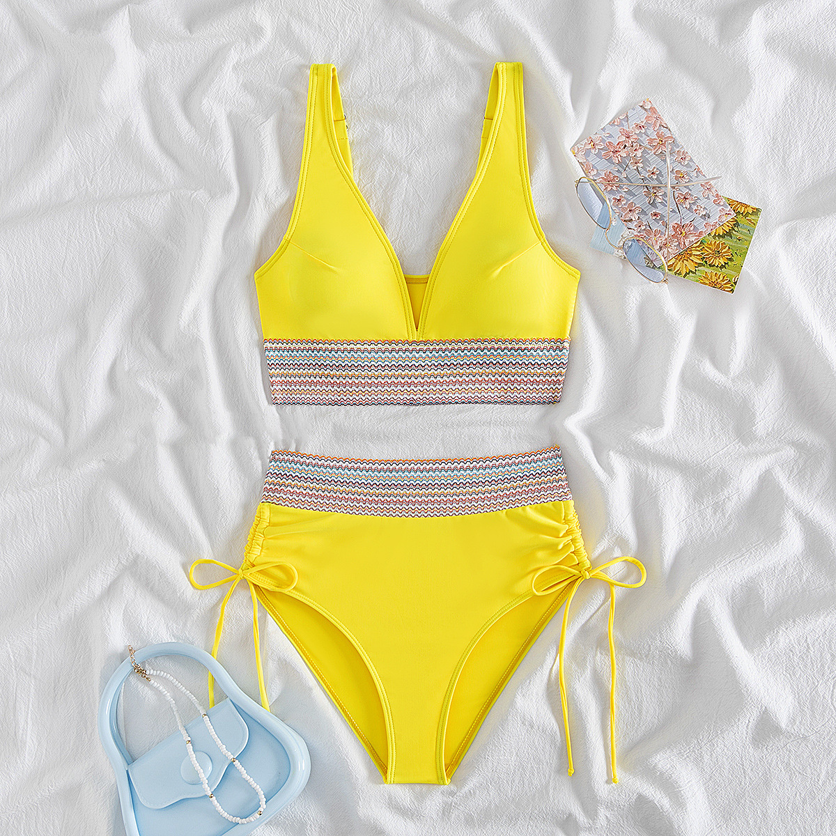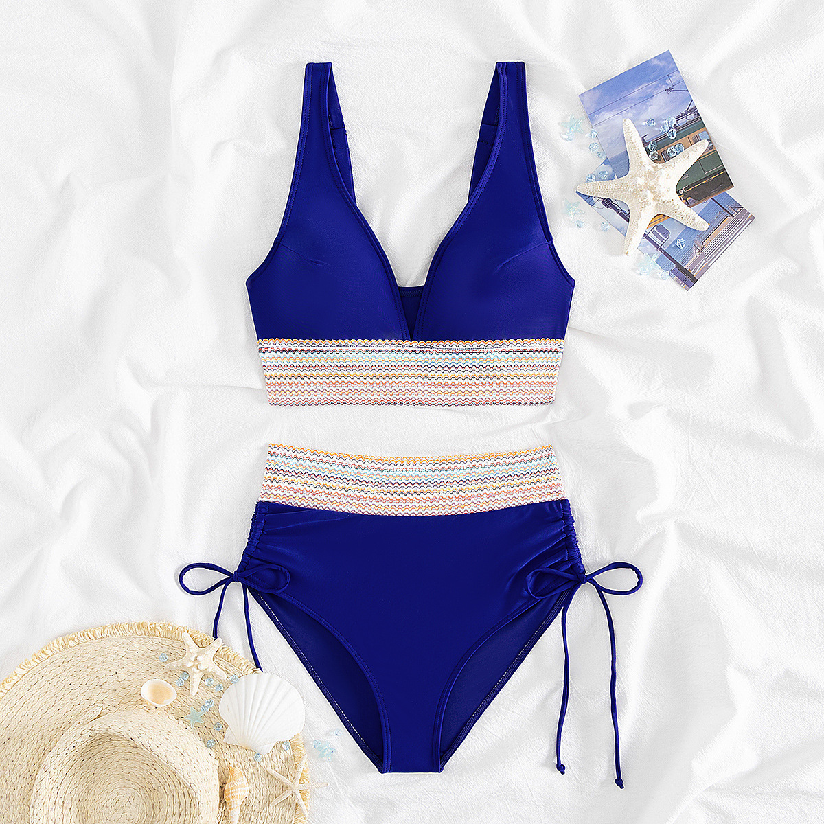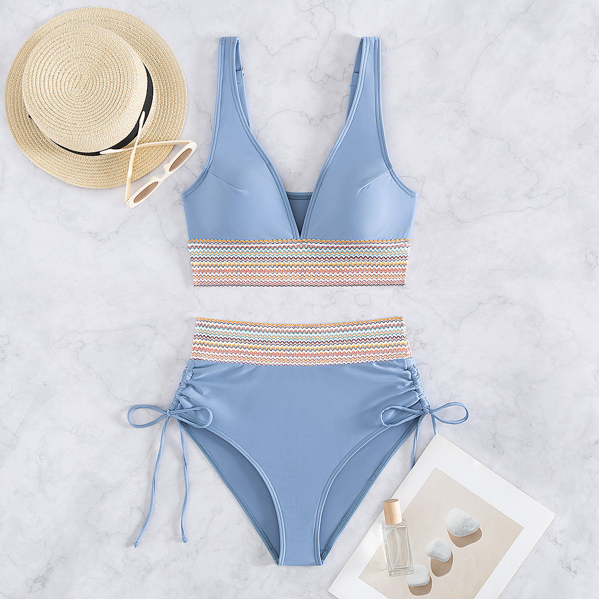 국경을 넘나 드는 유럽과 미국의 대외 무역 수영복 여성용 스플릿 비키니 하이 웨이스트 슬림 섹시한 레이스 업 넥 타이트 아마존스토어 가기