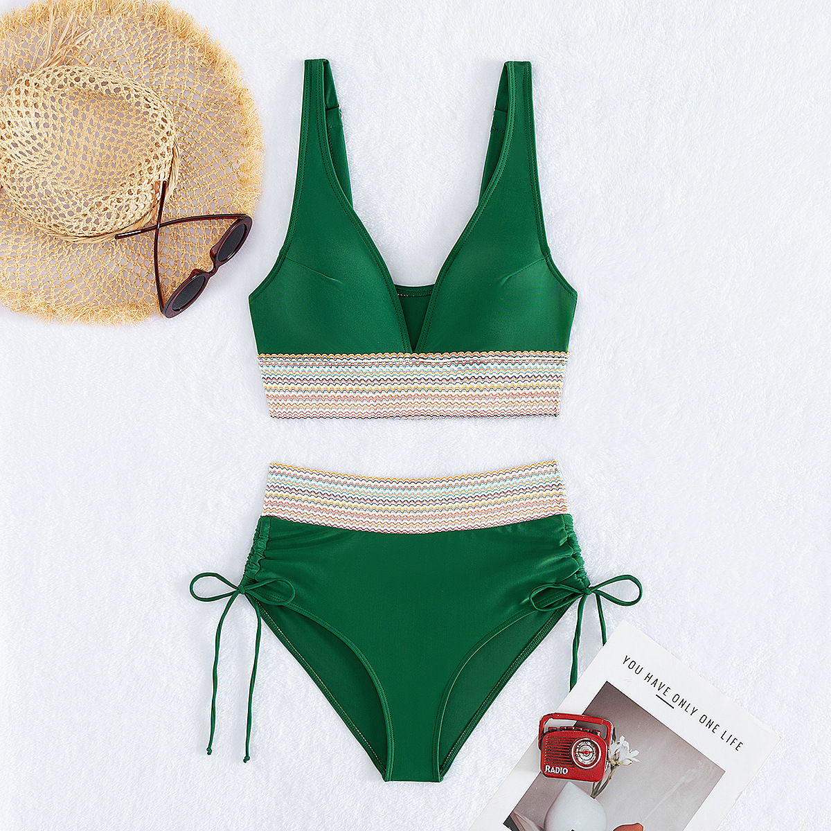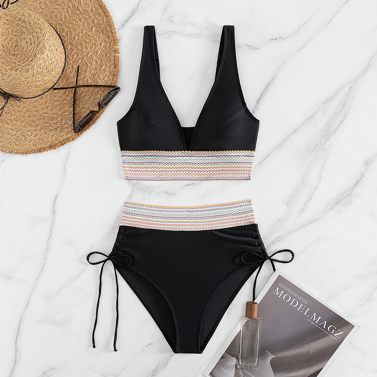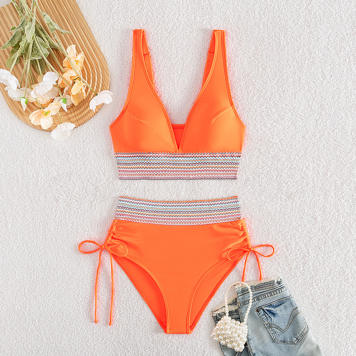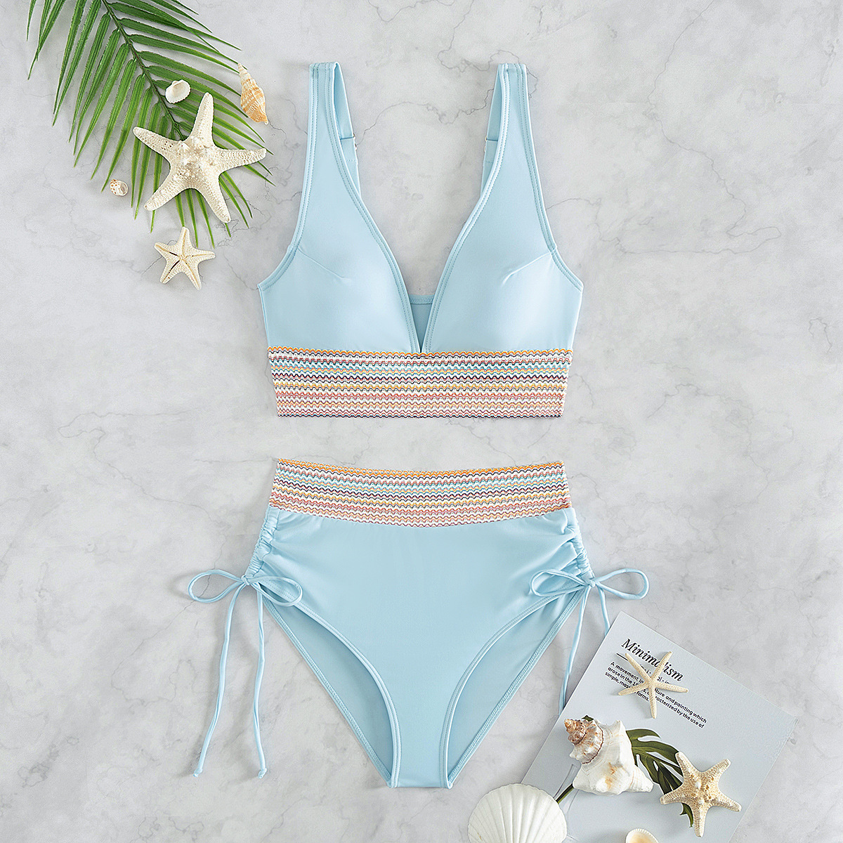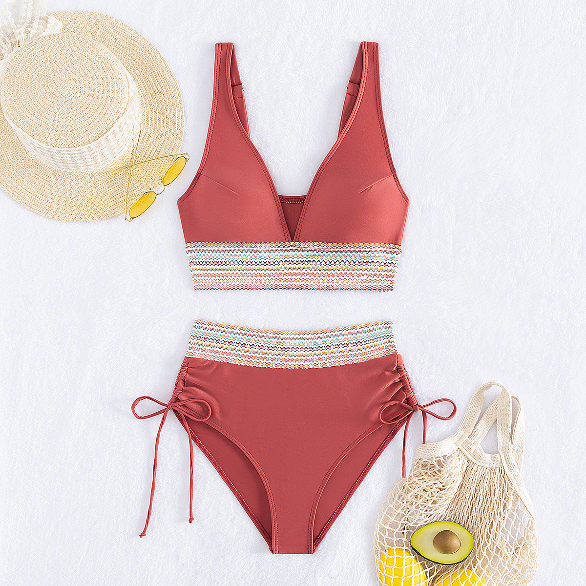 국경을 넘나 드는 유럽과 미국의 대외 무역 수영복 여성용 스플릿 비키니 하이 웨이스트 슬림 섹시한 레이스 업 넥 타이트 아마존스토어 가기