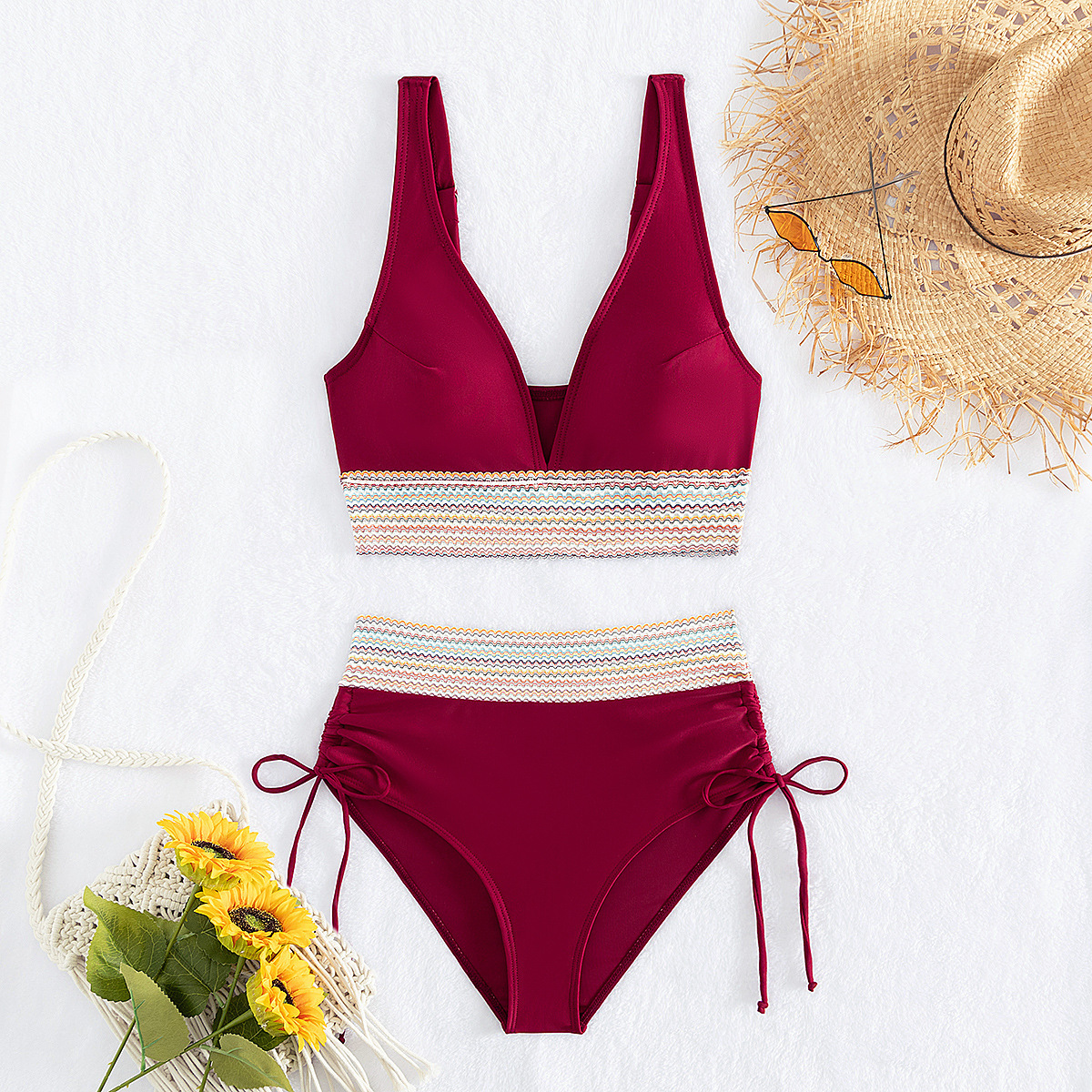 국경을 넘나 드는 유럽과 미국의 대외 무역 수영복 여성용 스플릿 비키니 하이 웨이스트 슬림 섹시한 레이스 업 넥 타이트 아마존