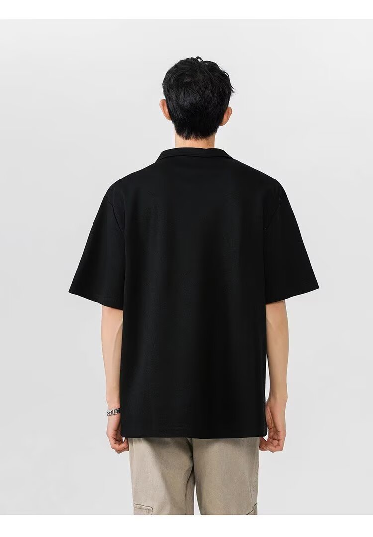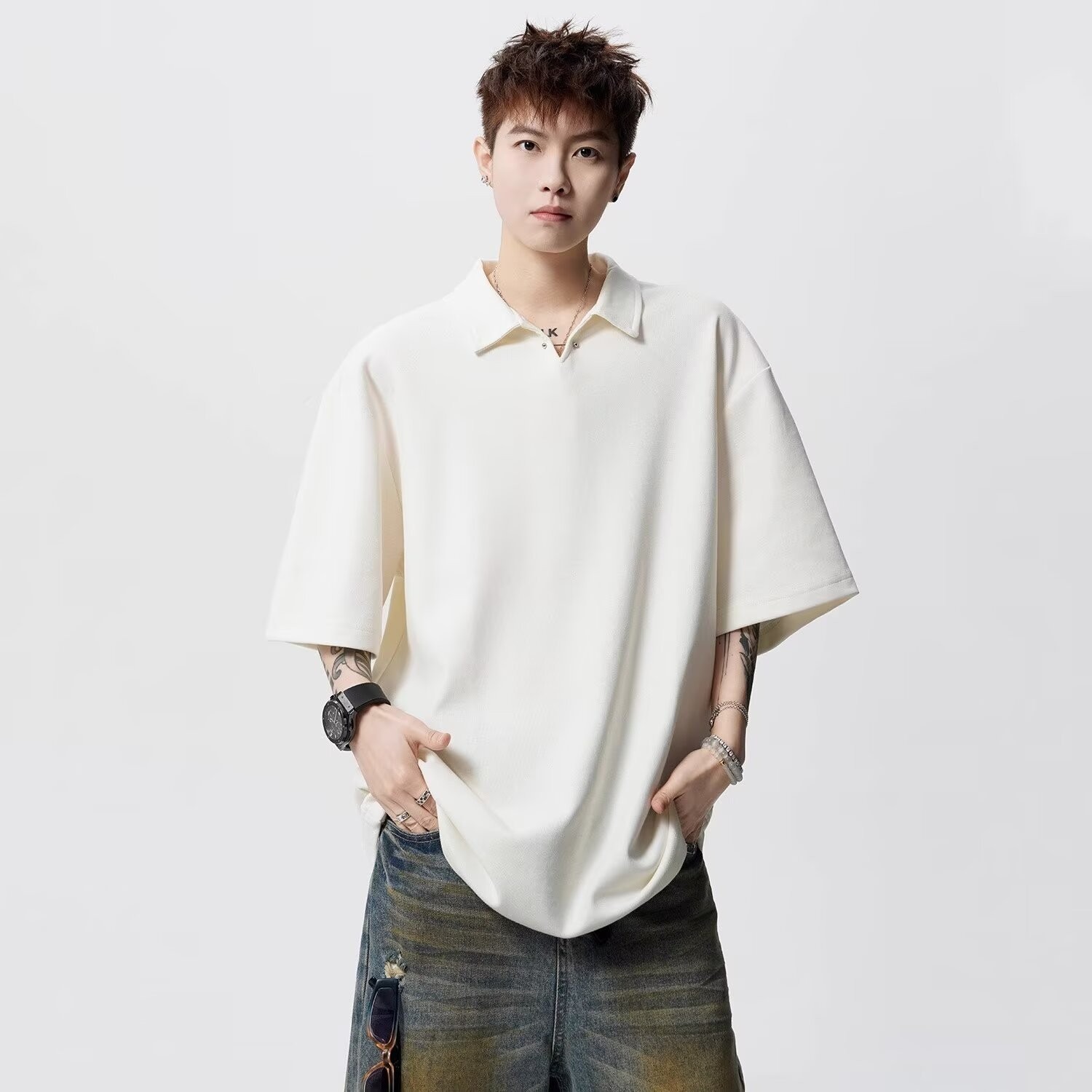 여름 새로운 올드 머니 스타일 남성용 느슨한 캐주얼 폴로 셔츠 반팔 티셔츠 최고 남성용 잘 생긴 하이 엔드 반팔 T