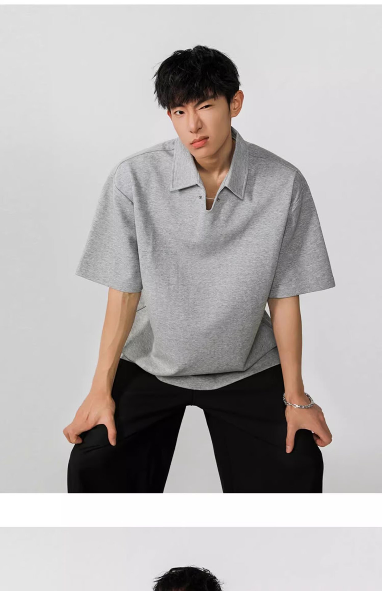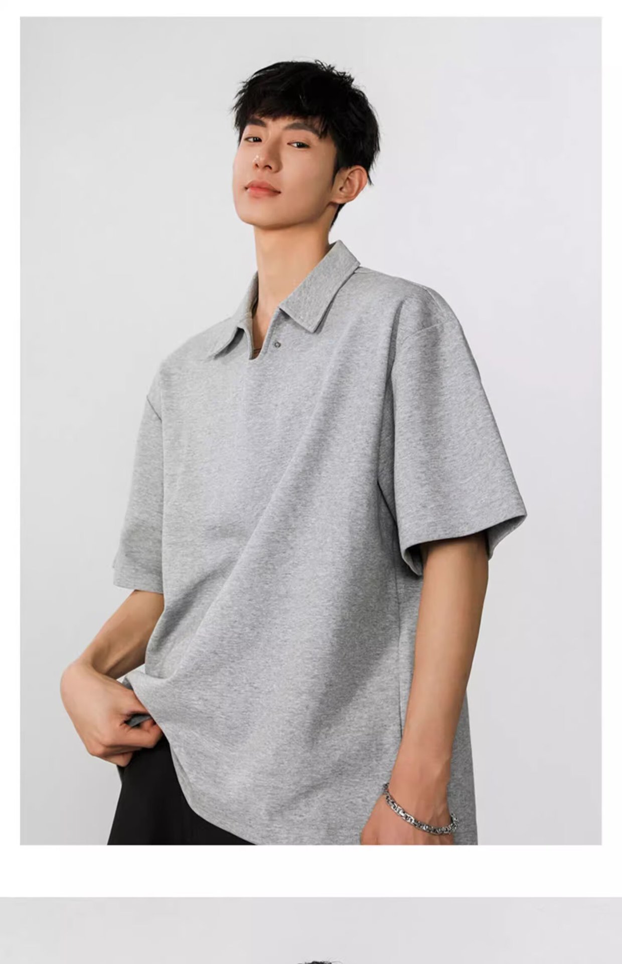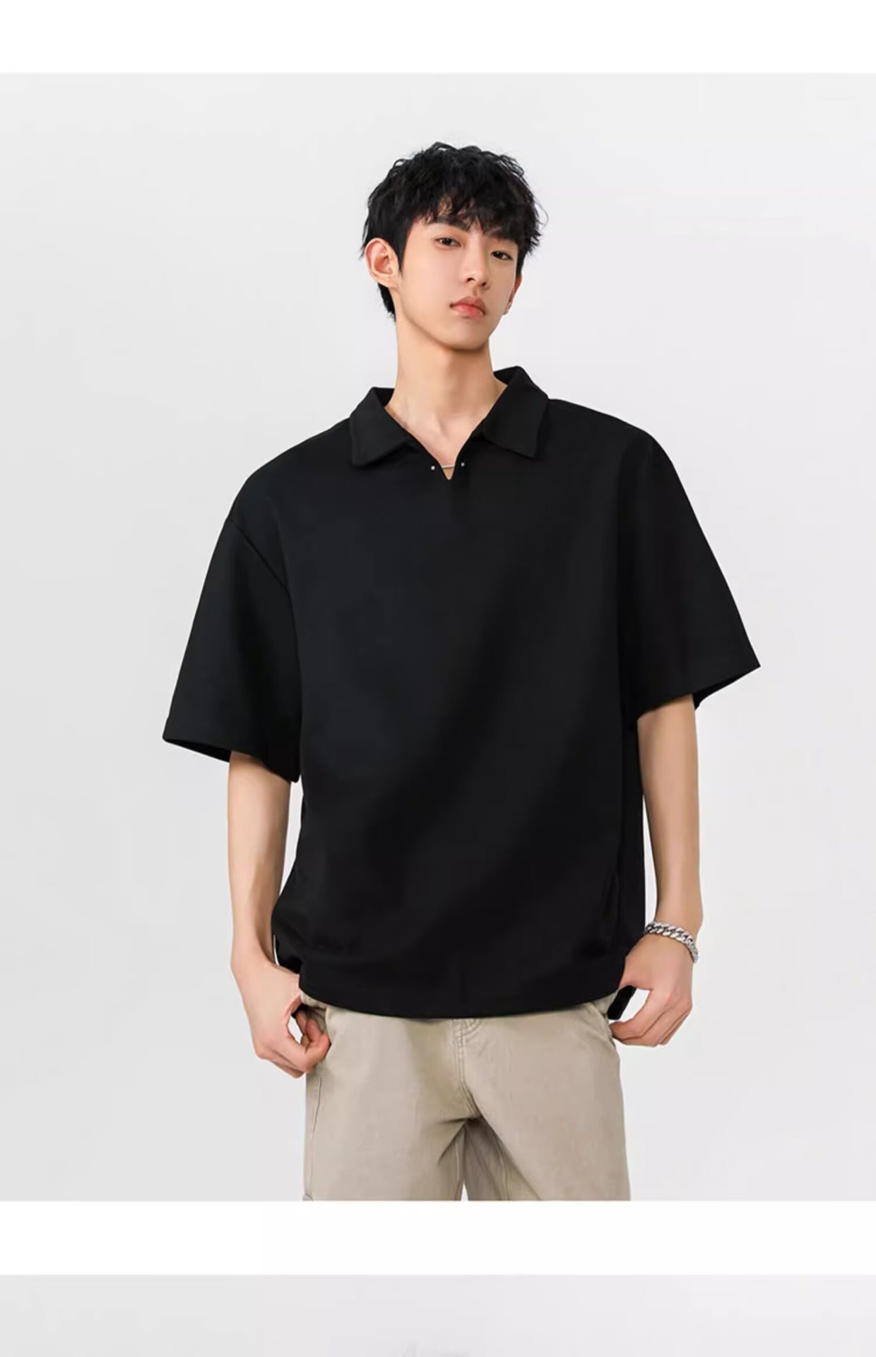 여름 새로운 올드 머니 스타일 남성용 느슨한 캐주얼 폴로 셔츠 반팔 티셔츠 최고 남성용 잘 생긴 하이 엔드 반팔 T스토어 가기