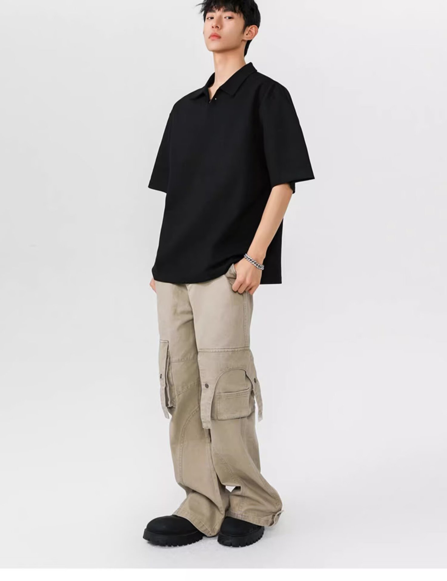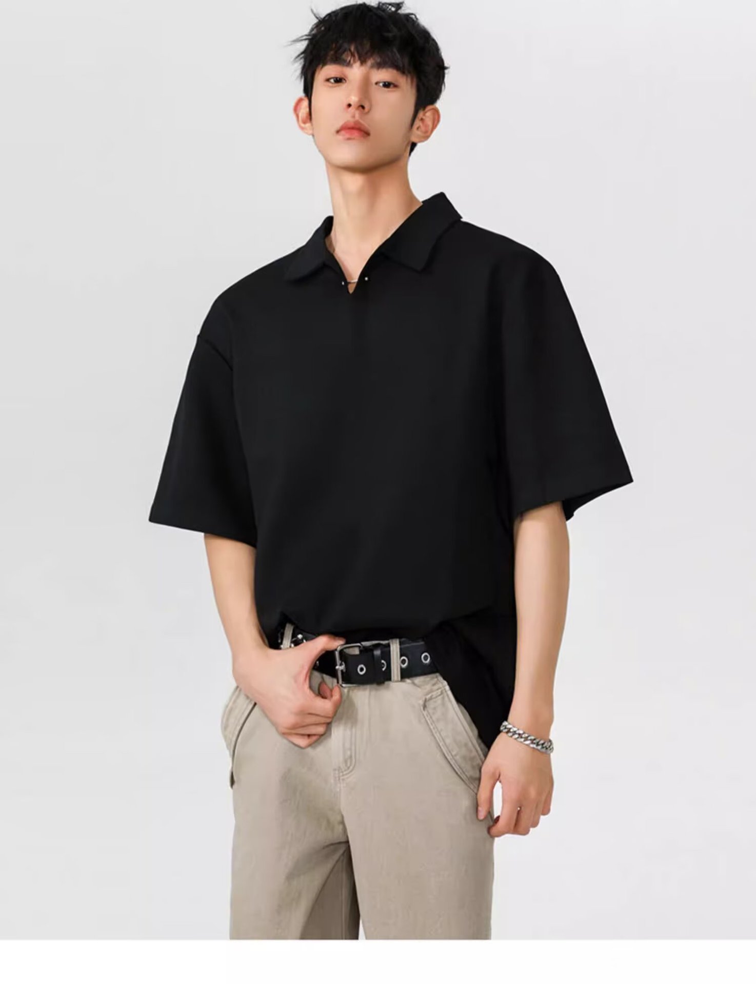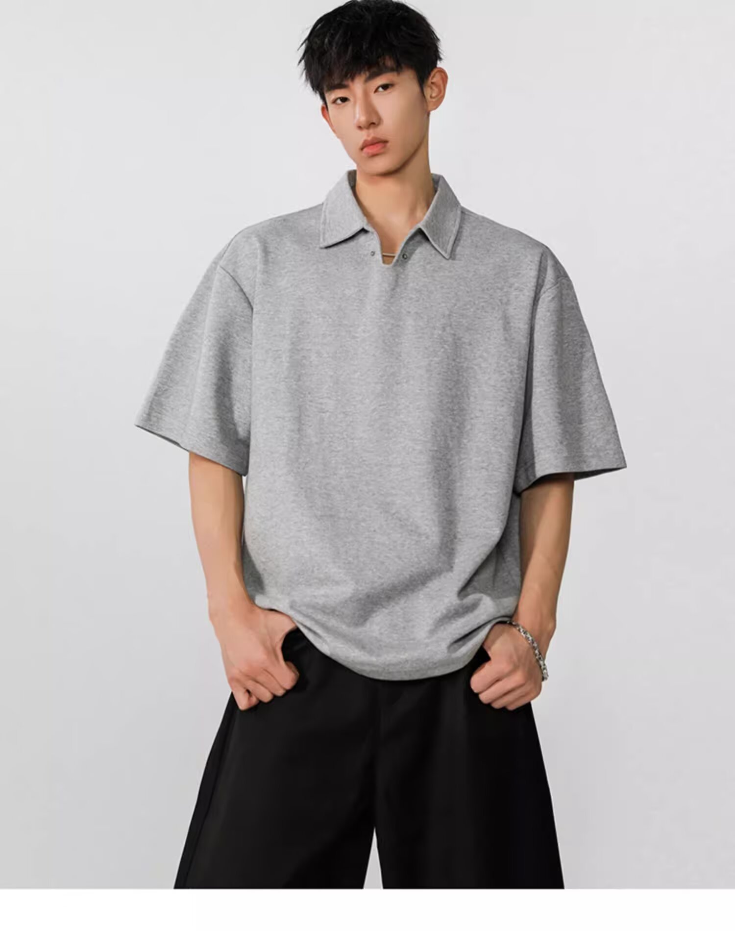 여름 새로운 올드 머니 스타일 남성용 느슨한 캐주얼 폴로 셔츠 반팔 티셔츠 최고 남성용 잘 생긴 하이 엔드 반팔 T스토어 가기
