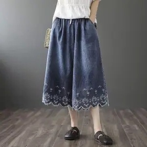 자수 신축성 있는 허리 와이드 팬츠 자수 신축성 있는 허리 캐주얼 와이드 팬츠스토어 가기