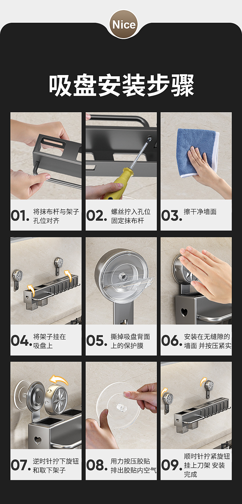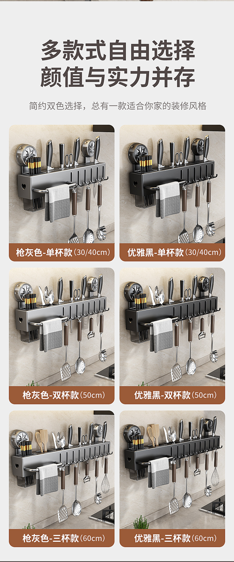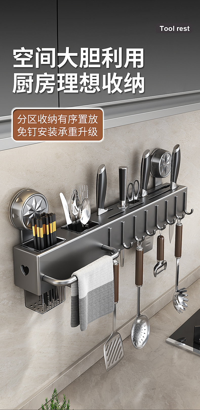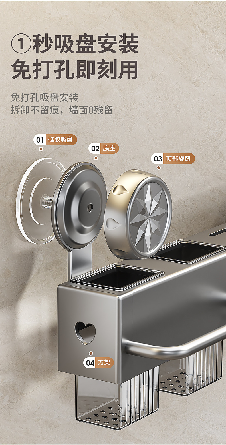 펀치 프리 흡입 컵 주방 보관 랙 벽걸이 형 다기능 젓가락 나이프 홀터 가정용 스토리지 랙
