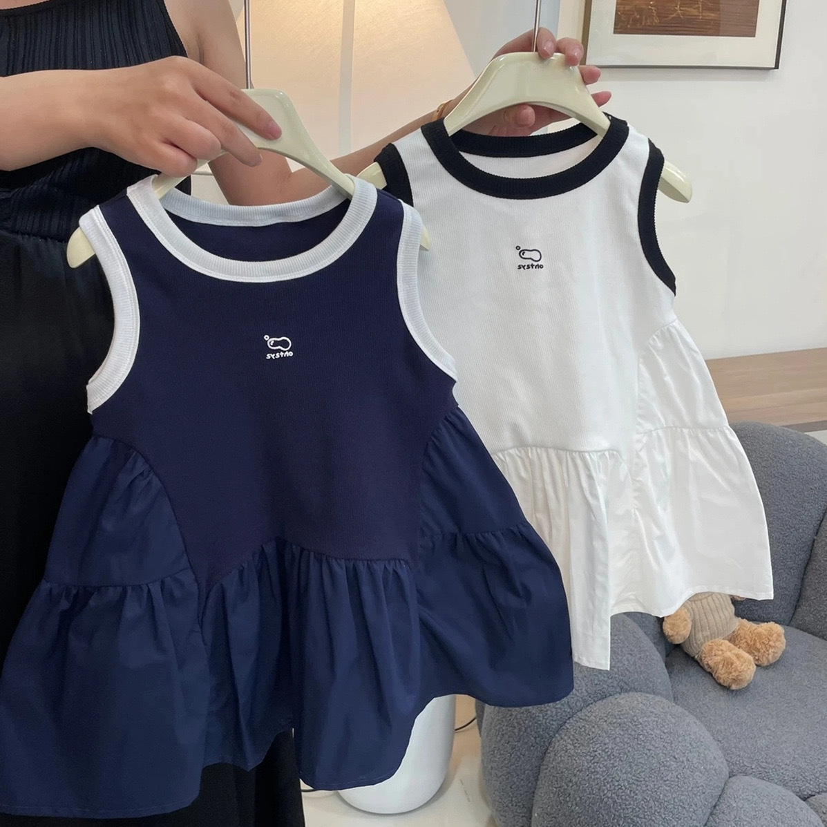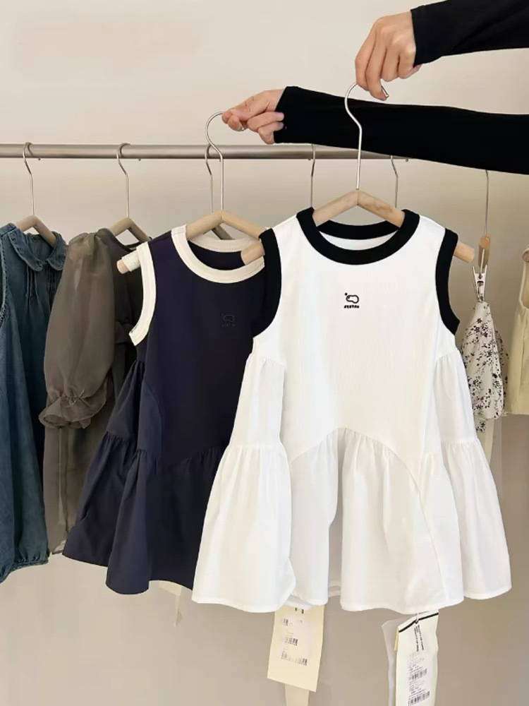 여자 쉬폰 민소매 조끼 드레스 여름 2025 새로운 어린이 아기 얇은 주름 스플 라이스 서스펜더 스커트스토어 가기