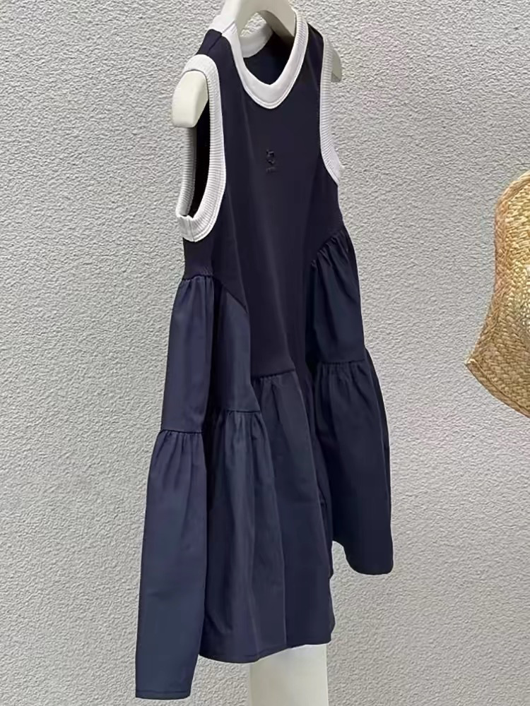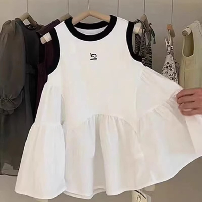 여자 쉬폰 민소매 조끼 드레스 여름 2025 새로운 어린이 아기 얇은 주름 스플 라이스 서스펜더 스커트