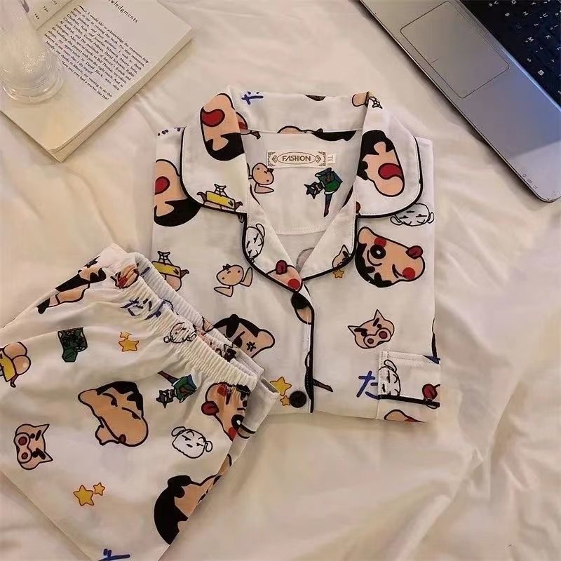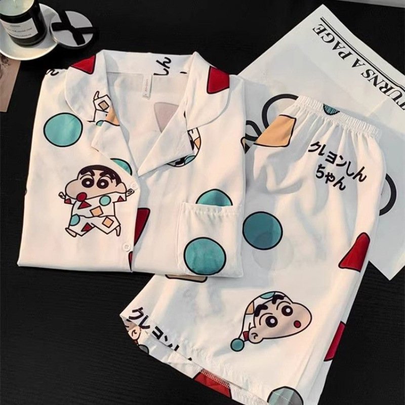 여름 새 소년 잠옷 어린이 크레용 신짱 반팔 양복 소년 아기 가정 의류 투피스 양복 여름스토어 가기