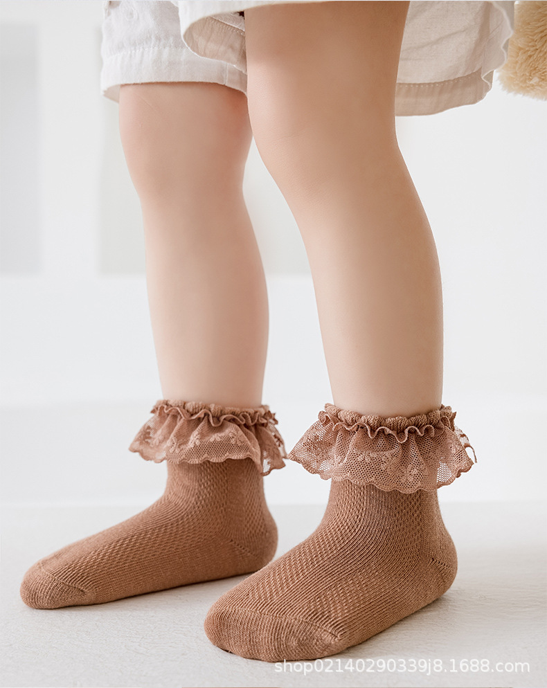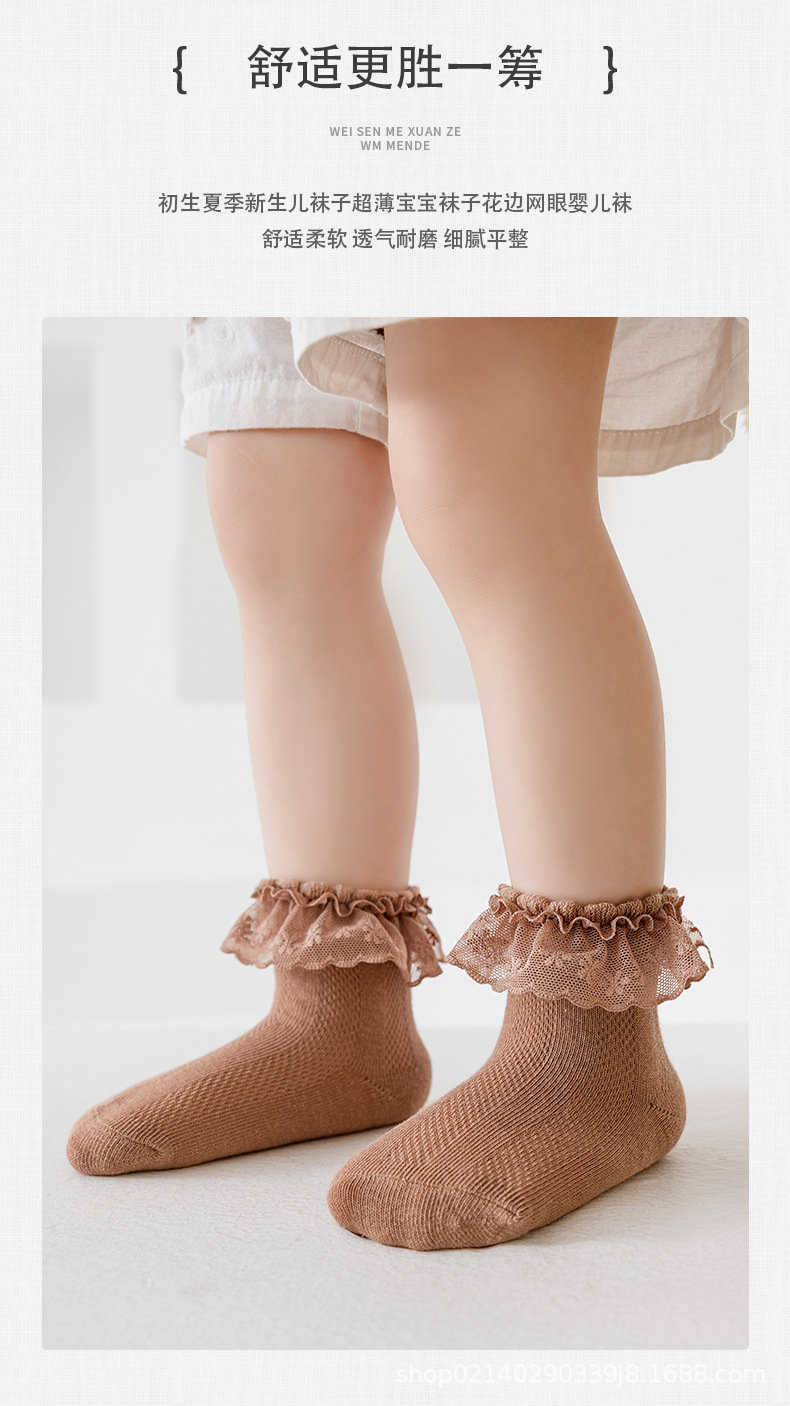 아기 봄, 여름 얇은 어린이면 양말 가을 소녀의 편안한 통기성 레이스 공주 로리타 중반 송아지 양말
